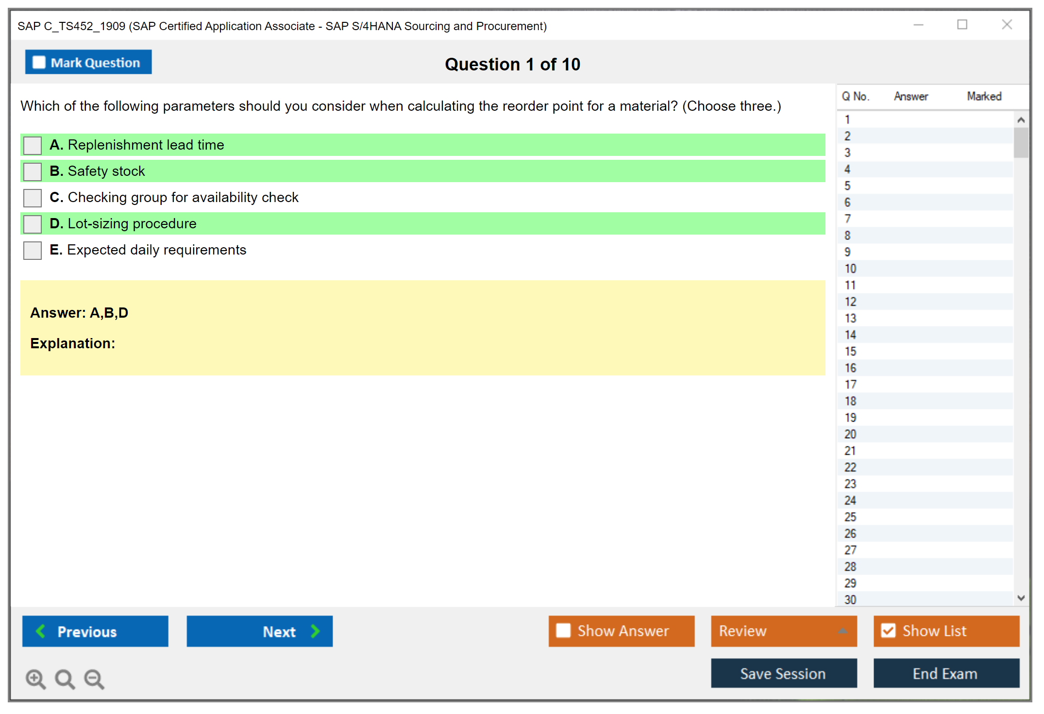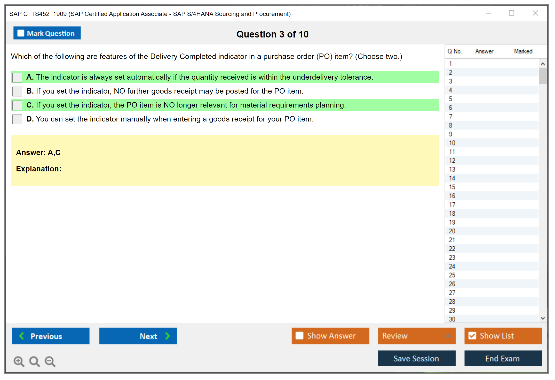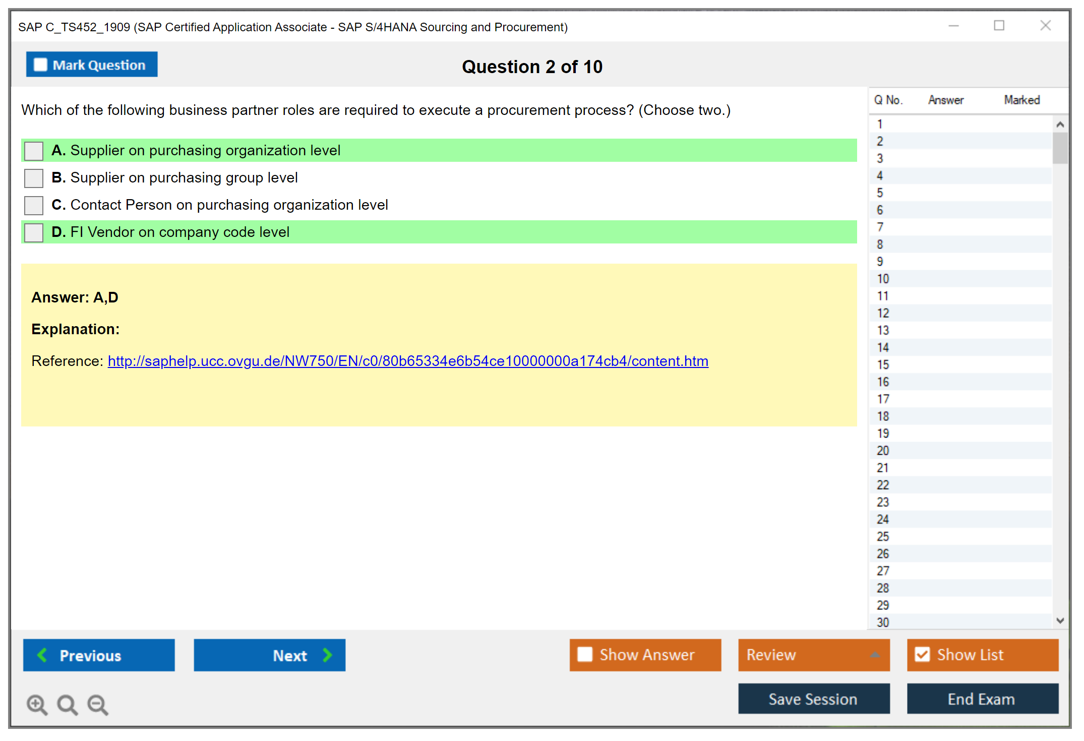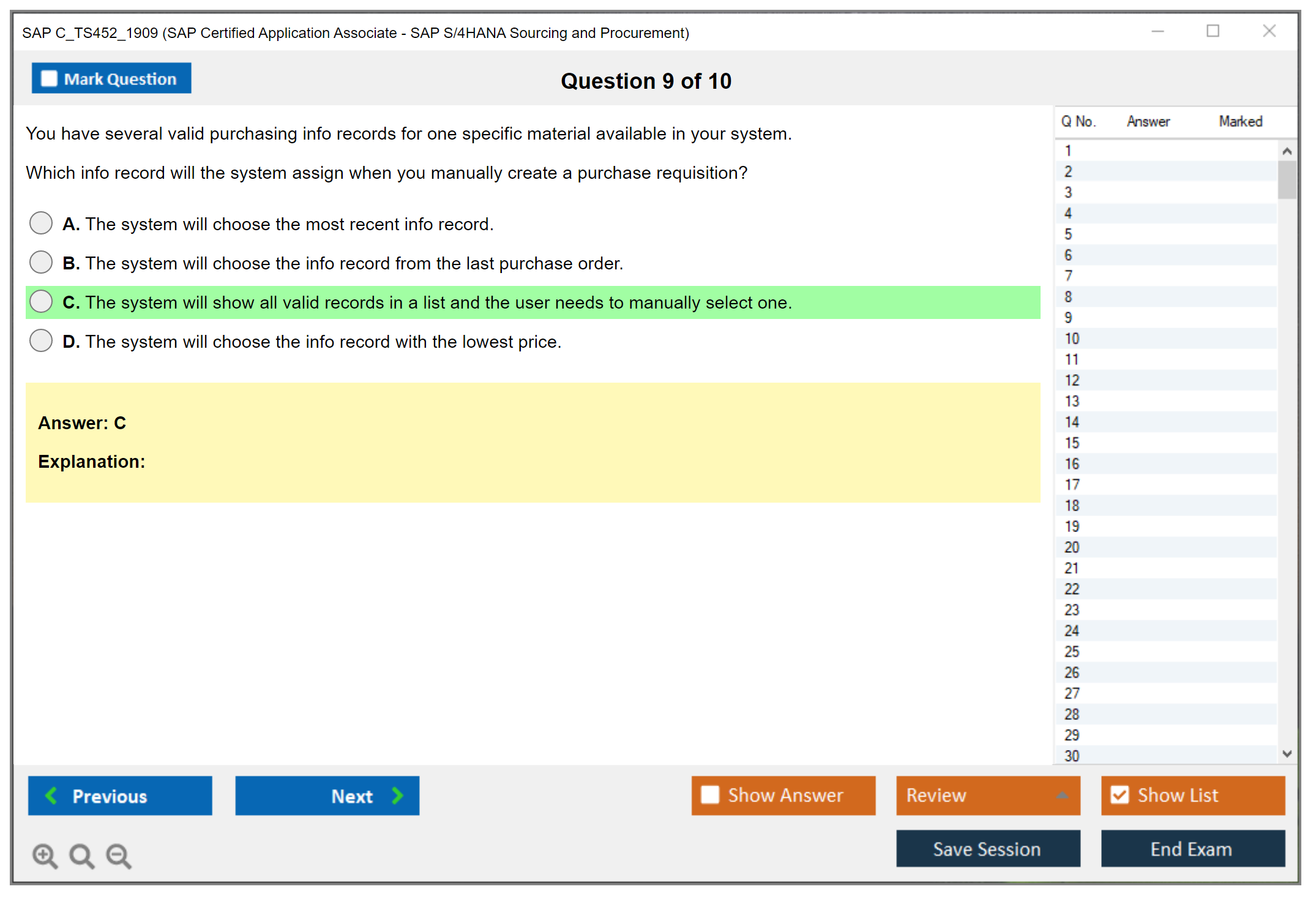 Note: SAP C_TS452_1909 (SAP Certified Application Associate - SAP S/4HANA Sourcing and Procurement) will not receive any new updates.