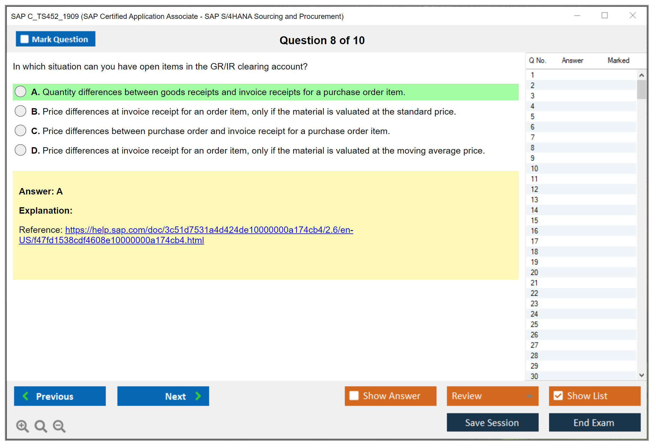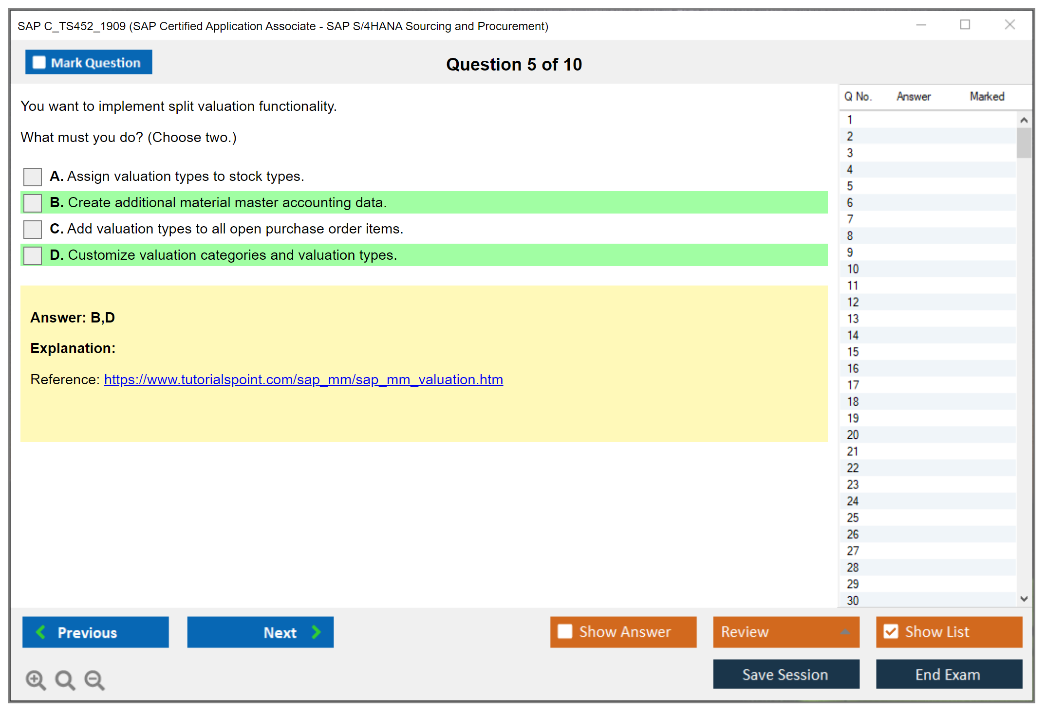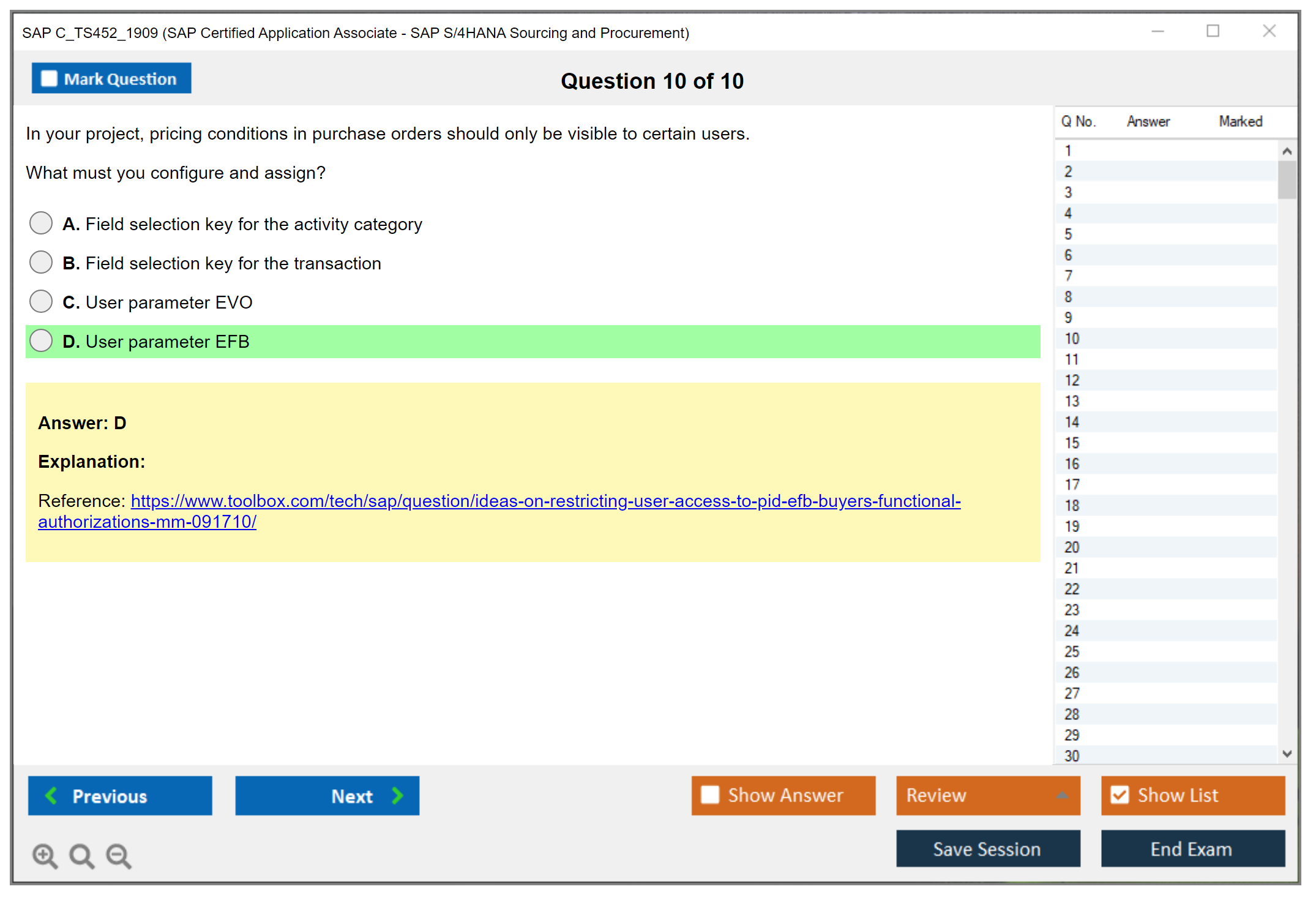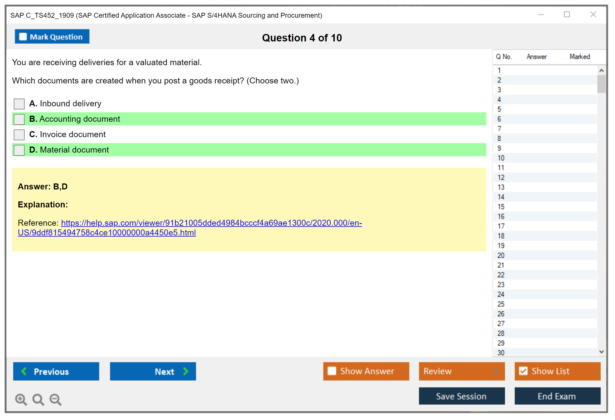 Note: SAP C_TS452_1909 (SAP Certified Application Associate - SAP S/4HANA Sourcing and Procurement) will not receive any new updates.