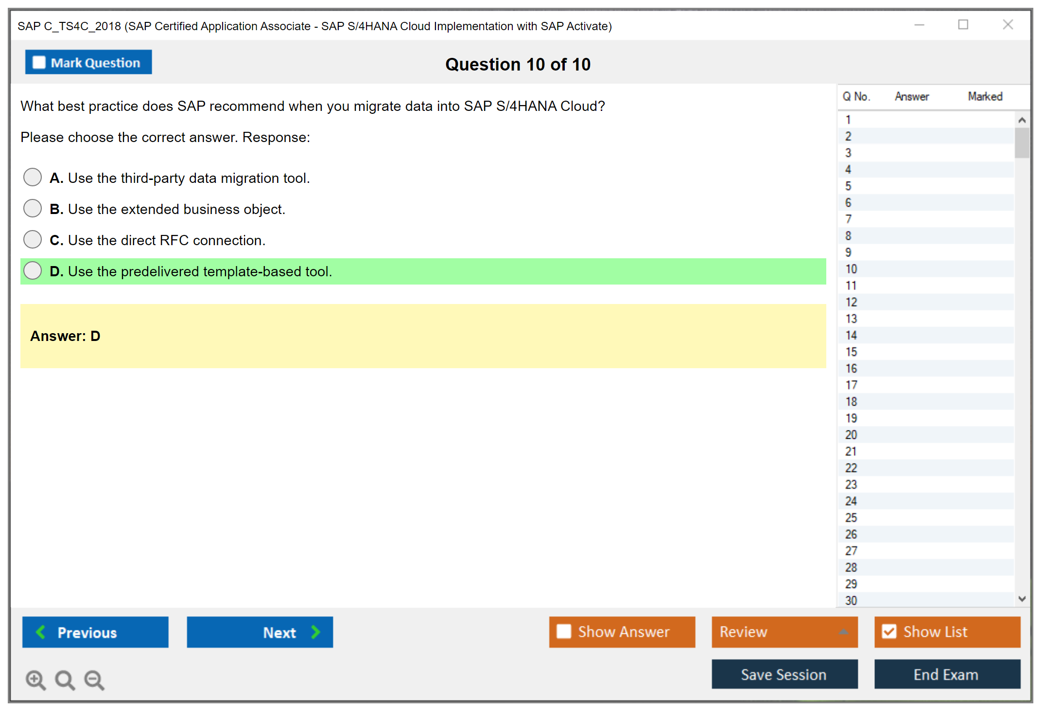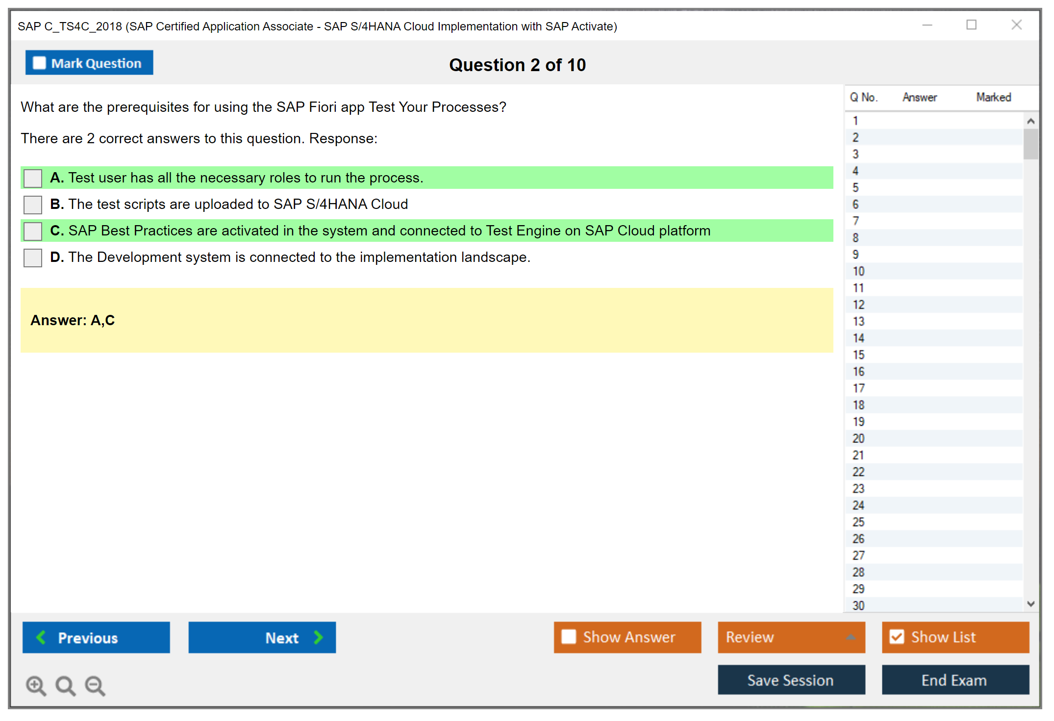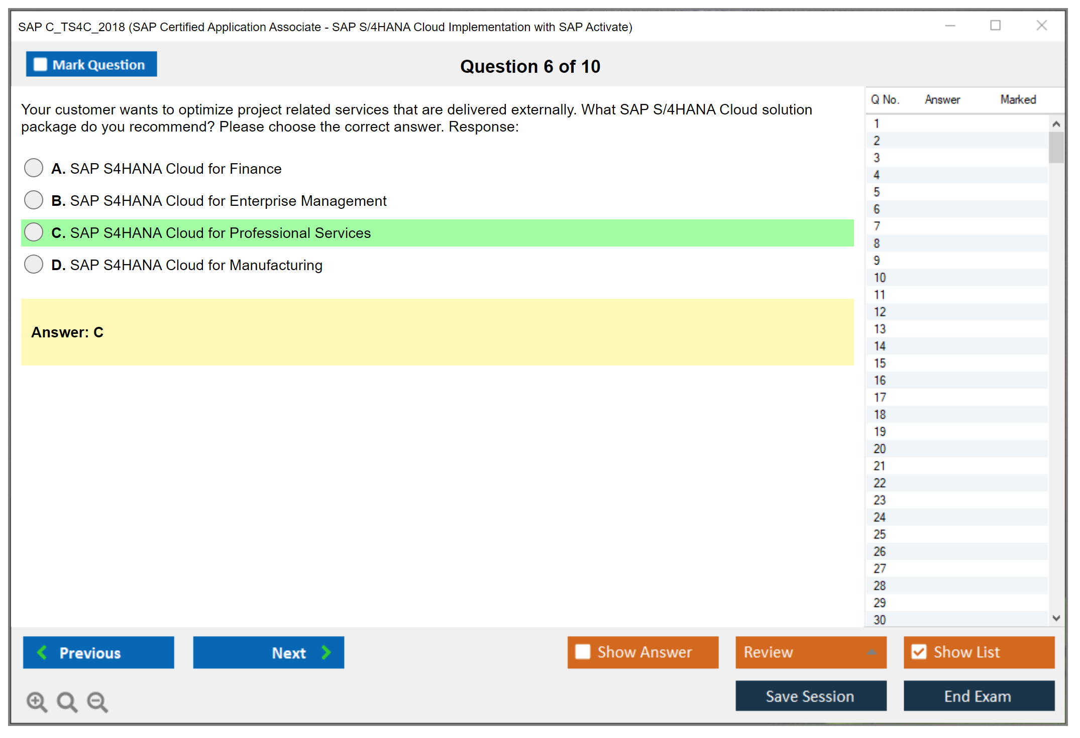 The SAP C_TS4C_2018 exam, also known as the SAP Certified Application Associate - SAP S/4HANA Cloud Implementation with SAP Activate, is designed to validate that the candidate possesses the fundamental and core knowledge required for the SAP S/4HANA Cloud Implementation profile. This certification proves that the candidate has an overall understanding and in-depth technical skills to participate as a member of an SAP S/4HANA Cloud implementation project team with a focus on SAP Activate onboarding, solution adoption, and deployment methodologies.
