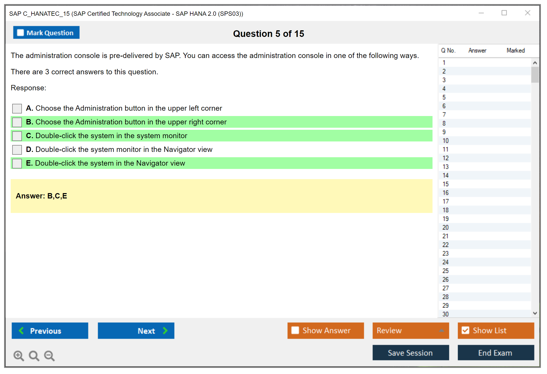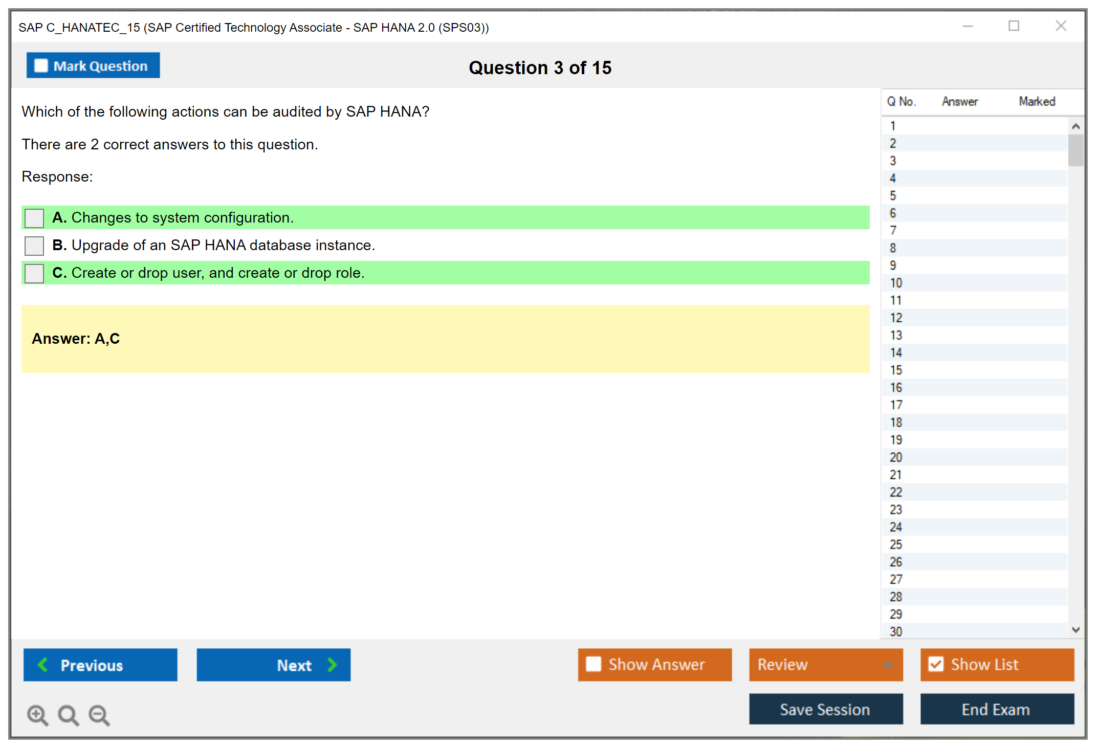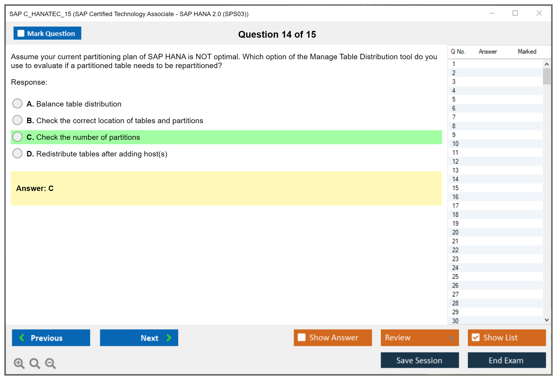 The SAP C_HANATEC_15 exam is a certification test for technology associates to prove their expertise in SAP HANA 2.0 (SPS03). The exam assesses the candidate's ability to perform administrative tasks, manage SAP HANA database, and ensure its optimal performance.