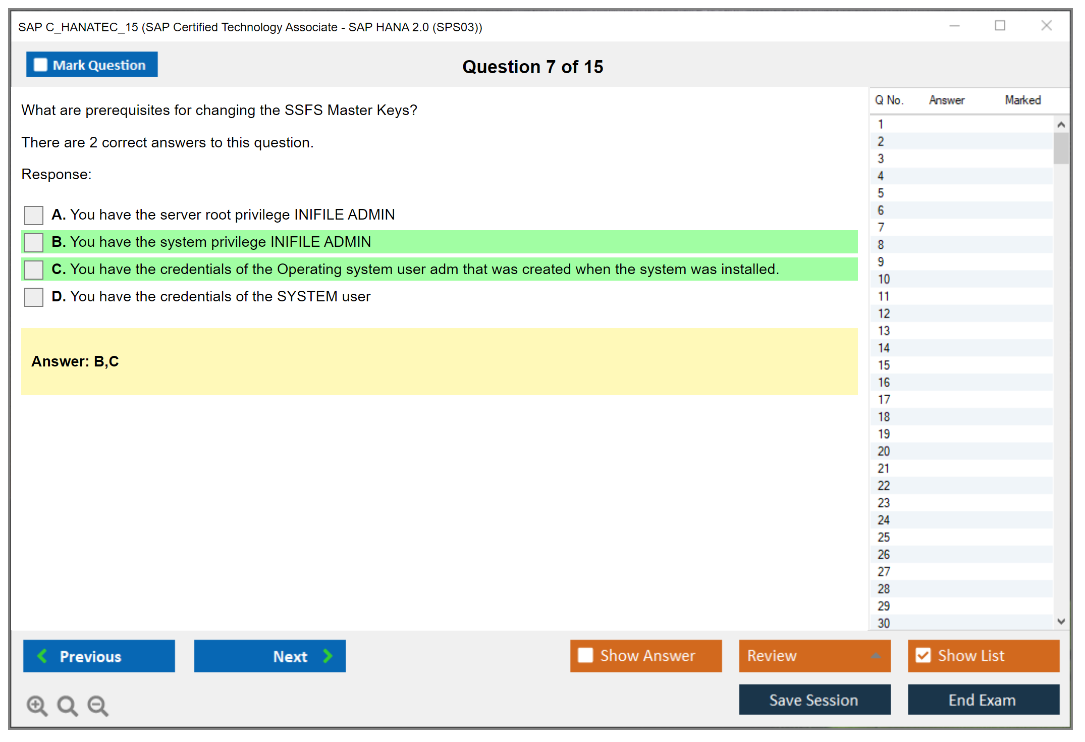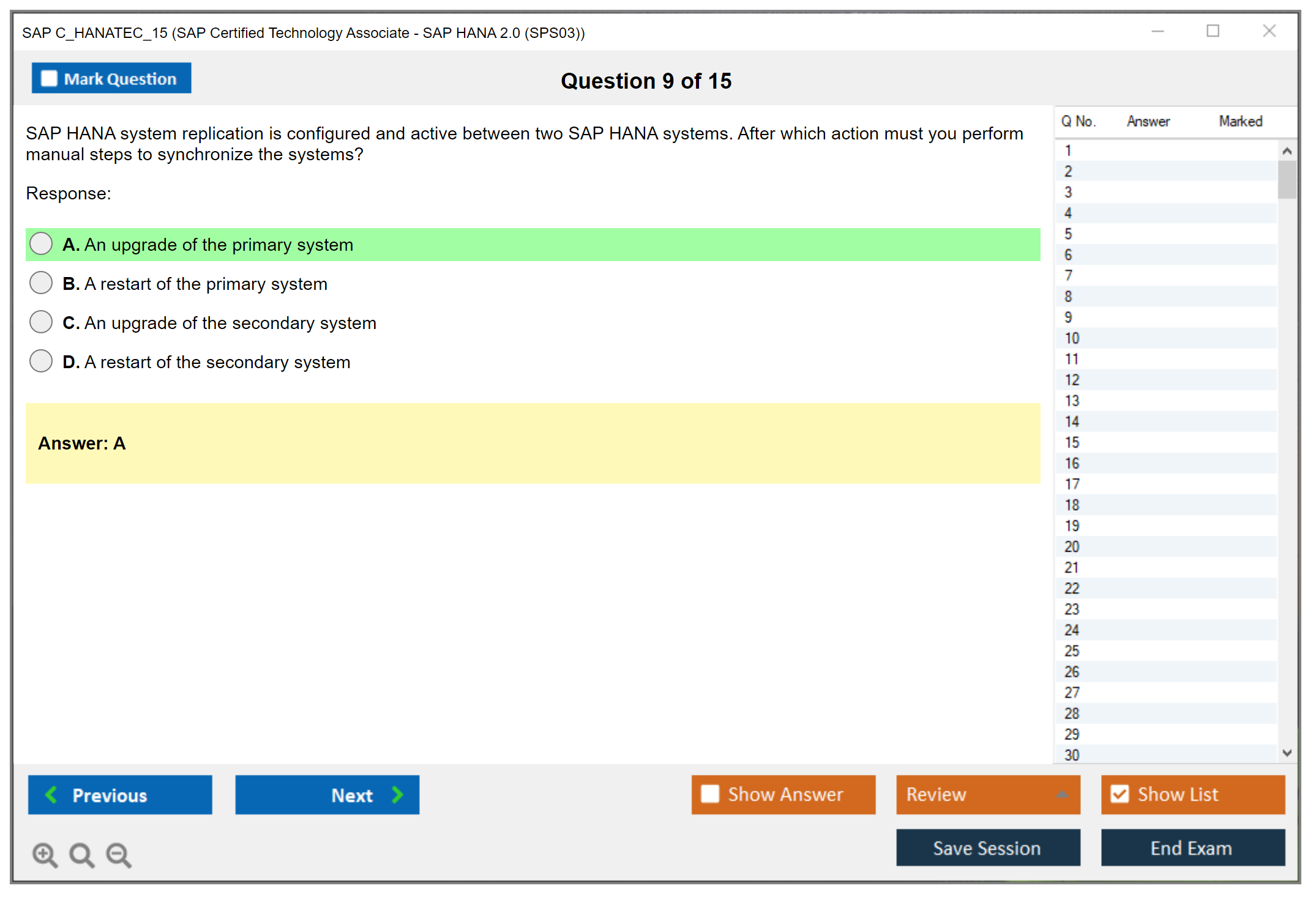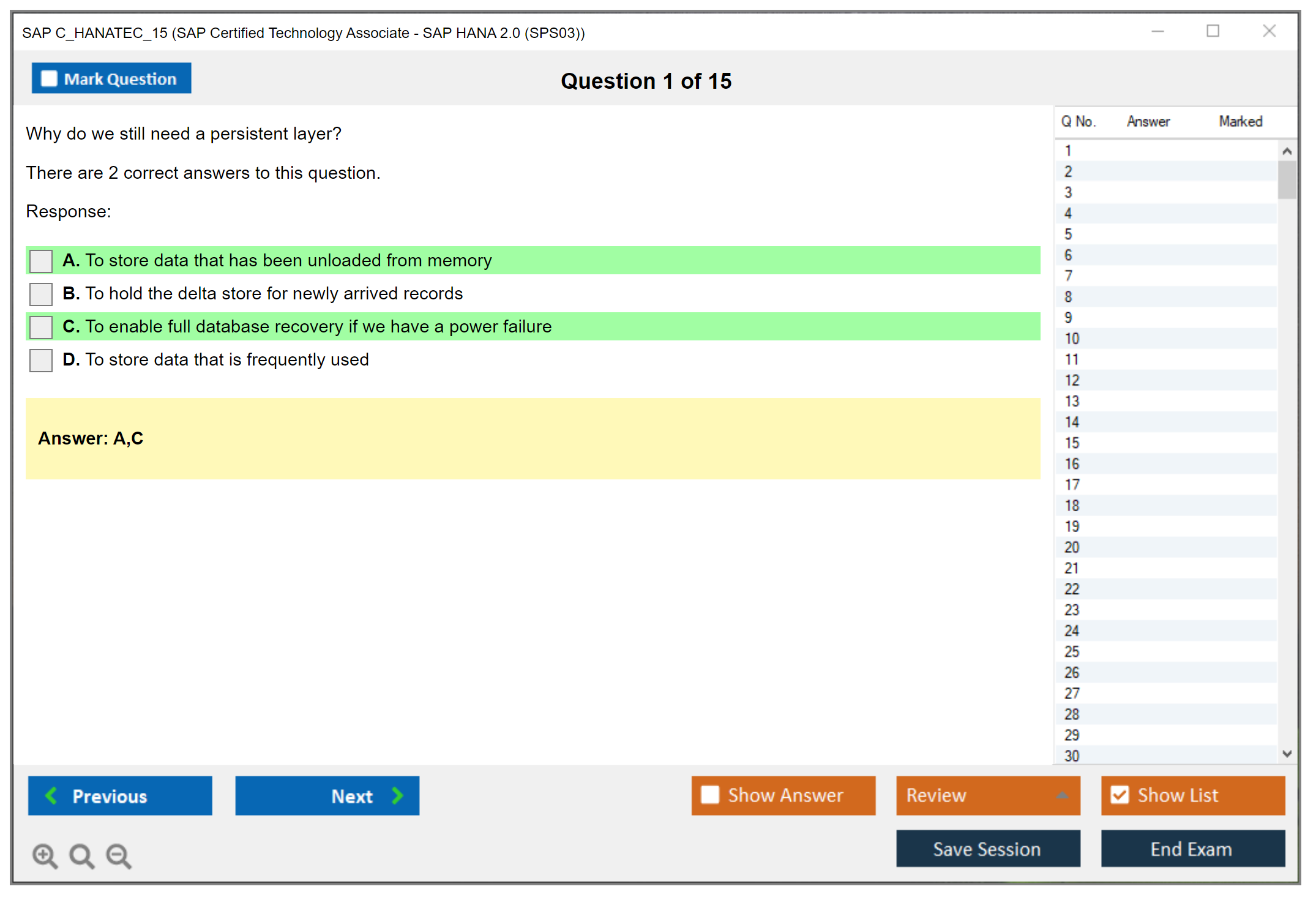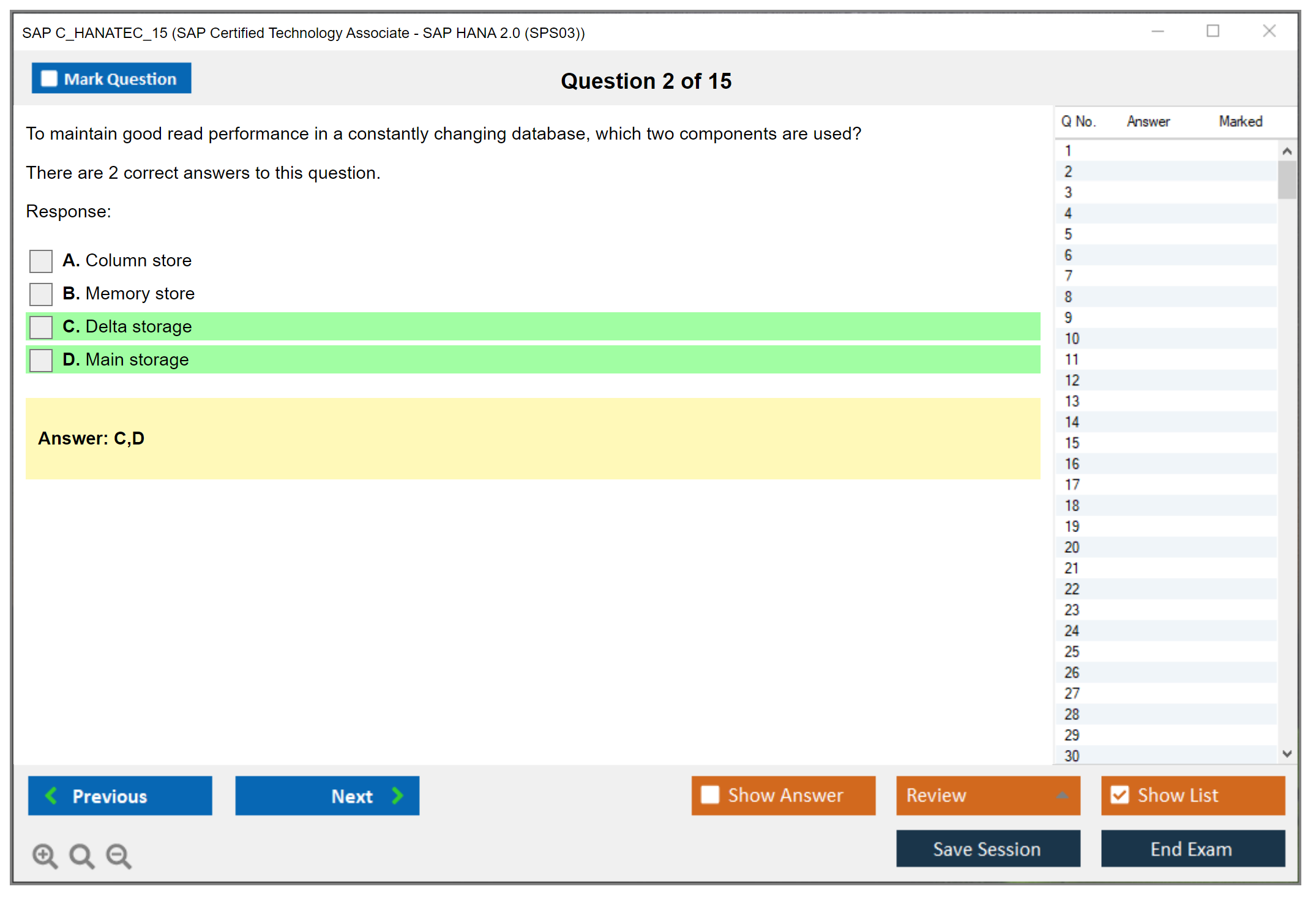 The SAP C_HANATEC_15 exam is a certification test for technology associates to prove their expertise in SAP HANA 2.0 (SPS03). The exam assesses the candidate's ability to perform administrative tasks, manage SAP HANA database, and ensure its optimal performance.