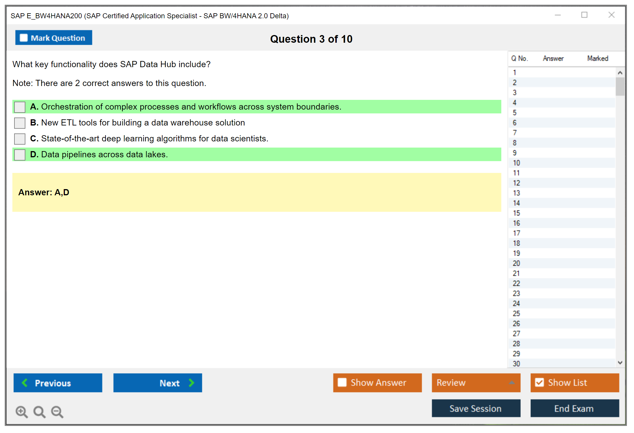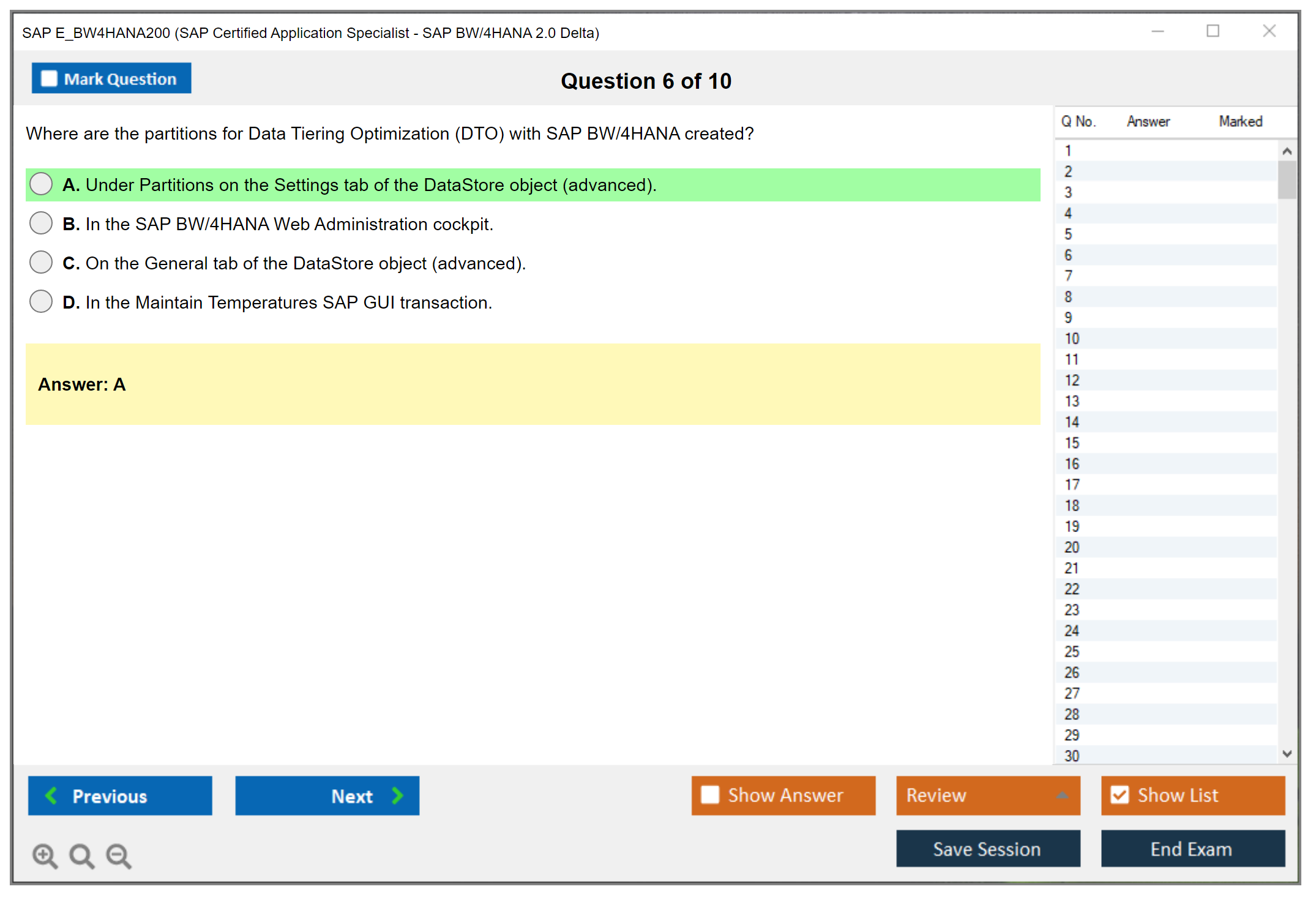 The SAP E_BW4HANA200 (SAP Certified Application Specialist - SAP BW/4HANA 2.0 Delta) exam is designed to validate that the candidate possesses the knowledge required to implement and configure SAP BW/4HANA 2.0. This certification proves that the candidate has an overall understanding and in-depth technical skills to participate as a member of a project team in a mentoring role.