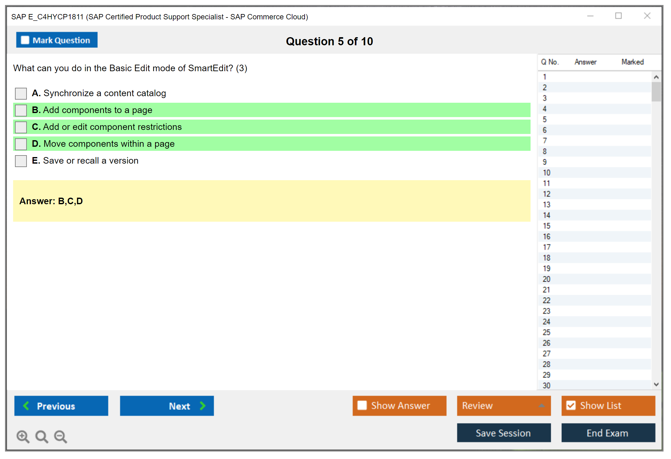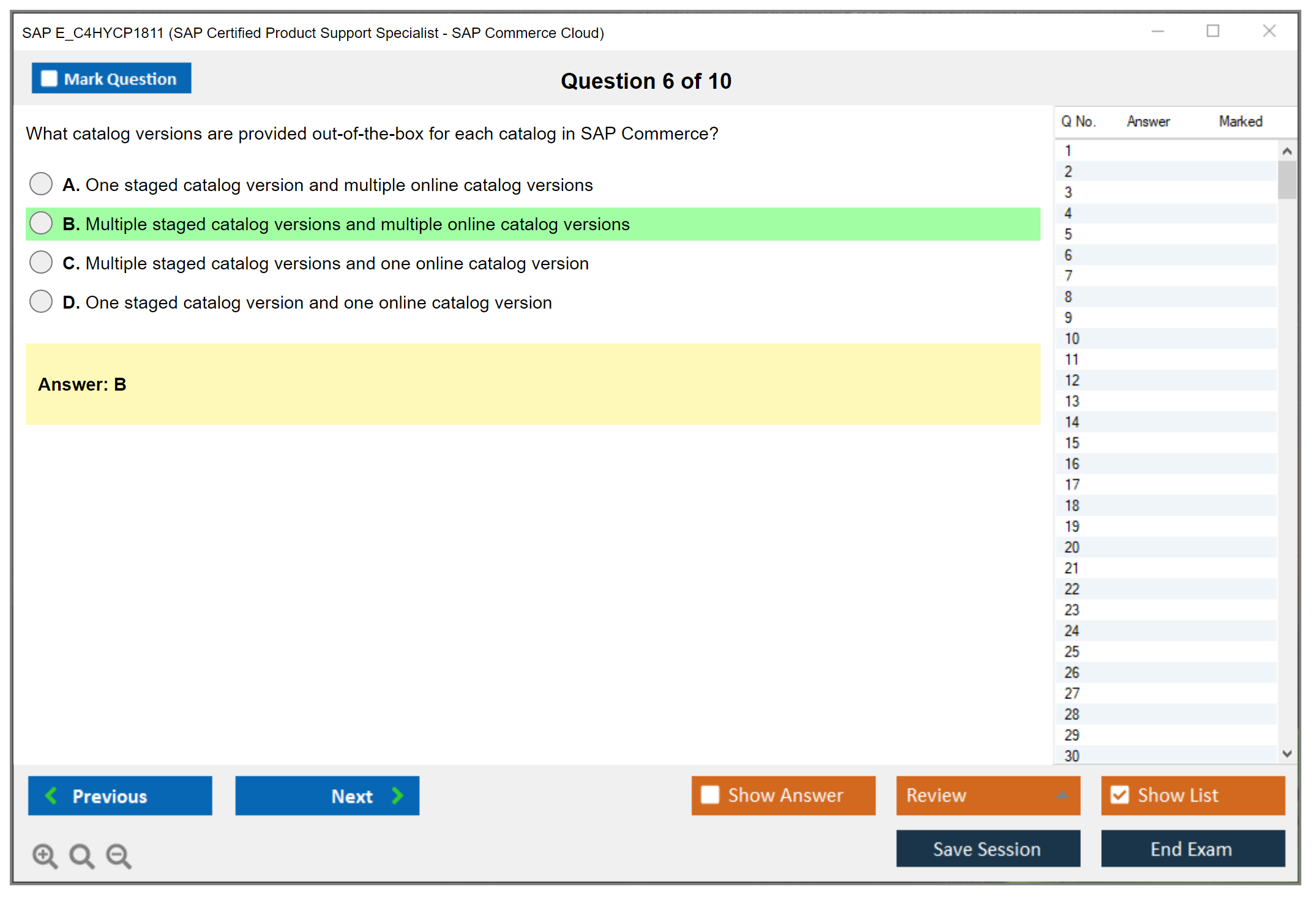 The question format of the SAP E_C4HYCP1811 exam includes multiple-choice and multiple-response questions.