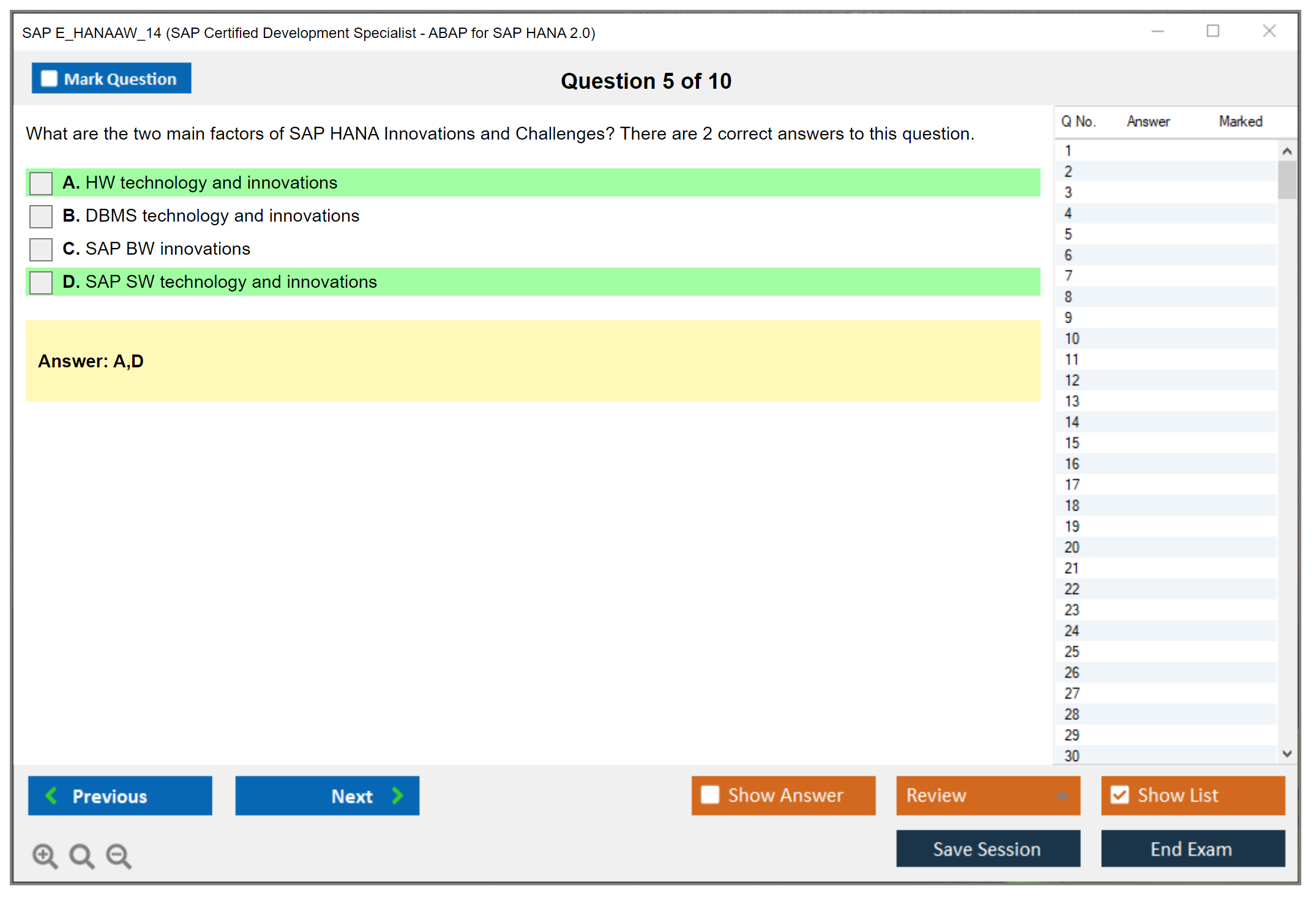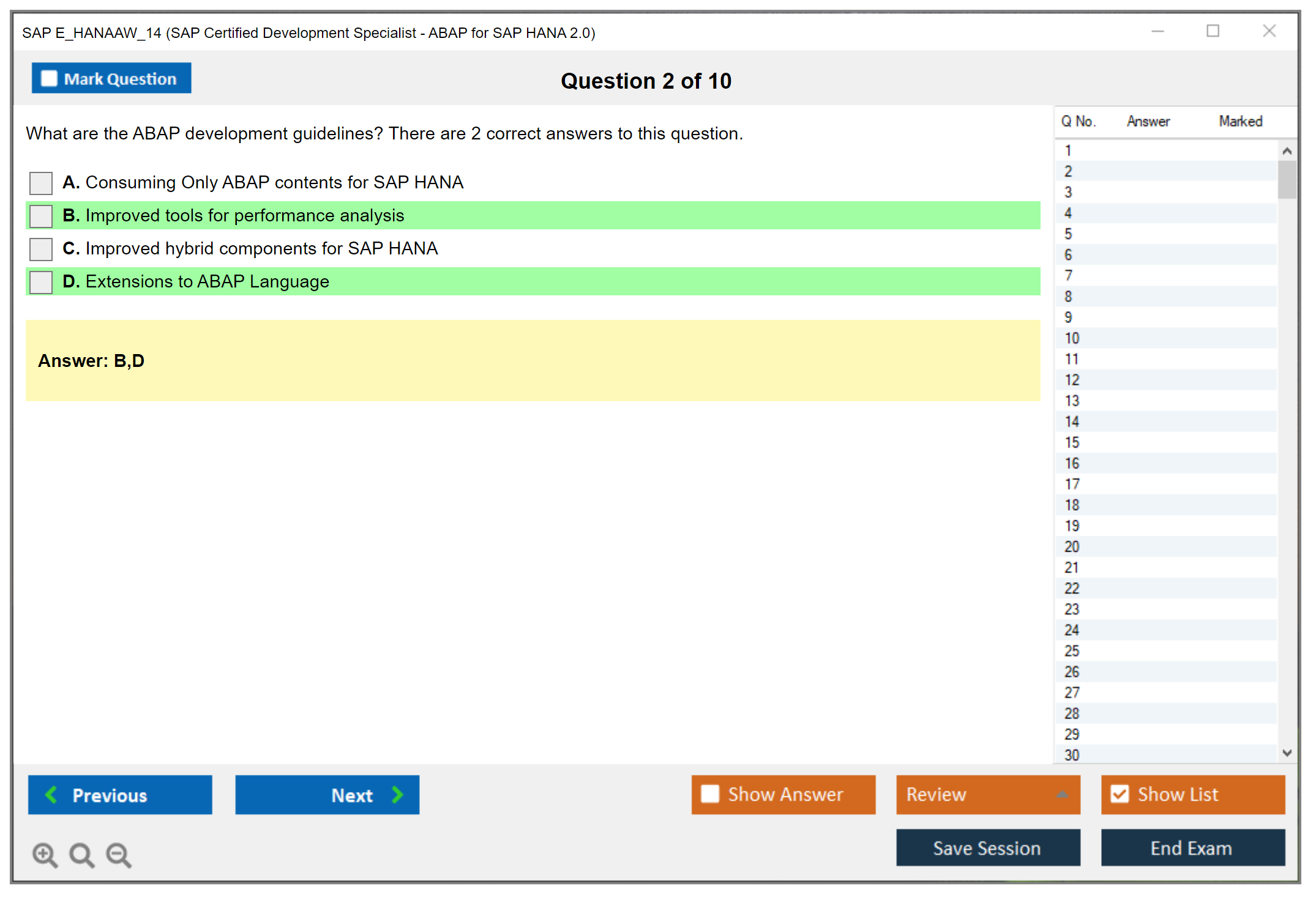 The SAP E_HANAAW_14 (SAP Certified Development Specialist - ABAP for SAP HANA 2.0) exam is designed to validate the candidate's knowledge and skills in ABAP development for the SAP HANA platform. It covers advanced topics and ensures that the candidate can leverage the capabilities of SAP HANA effectively in ABAP programming.