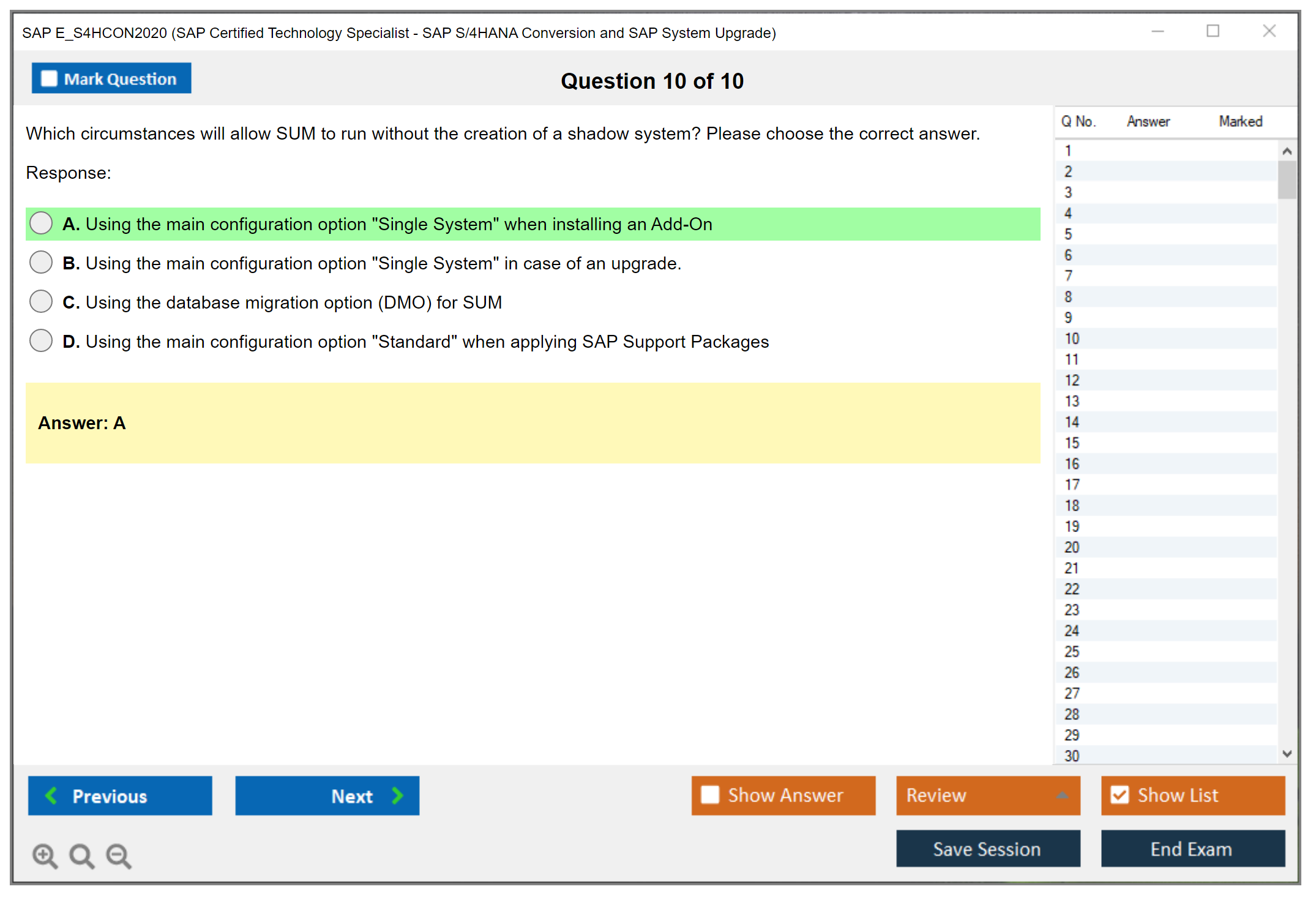 Note: SAP E_S4HCON2020 (SAP Certified Technology Specialist - SAP S/4HANA Conversion and SAP System Upgrade) will not receive any new updates.