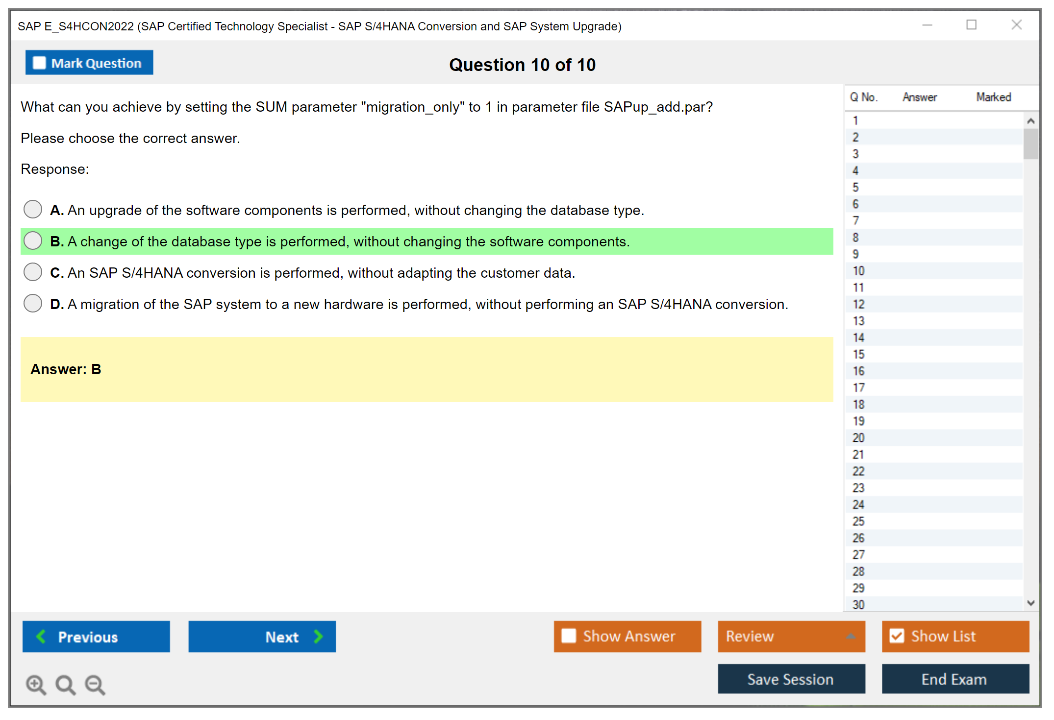 Note: SAP E_S4HCON2022 (SAP Certified Technology Specialist - SAP S/4HANA Conversion and SAP System Upgrade) will not receive any new updates.
