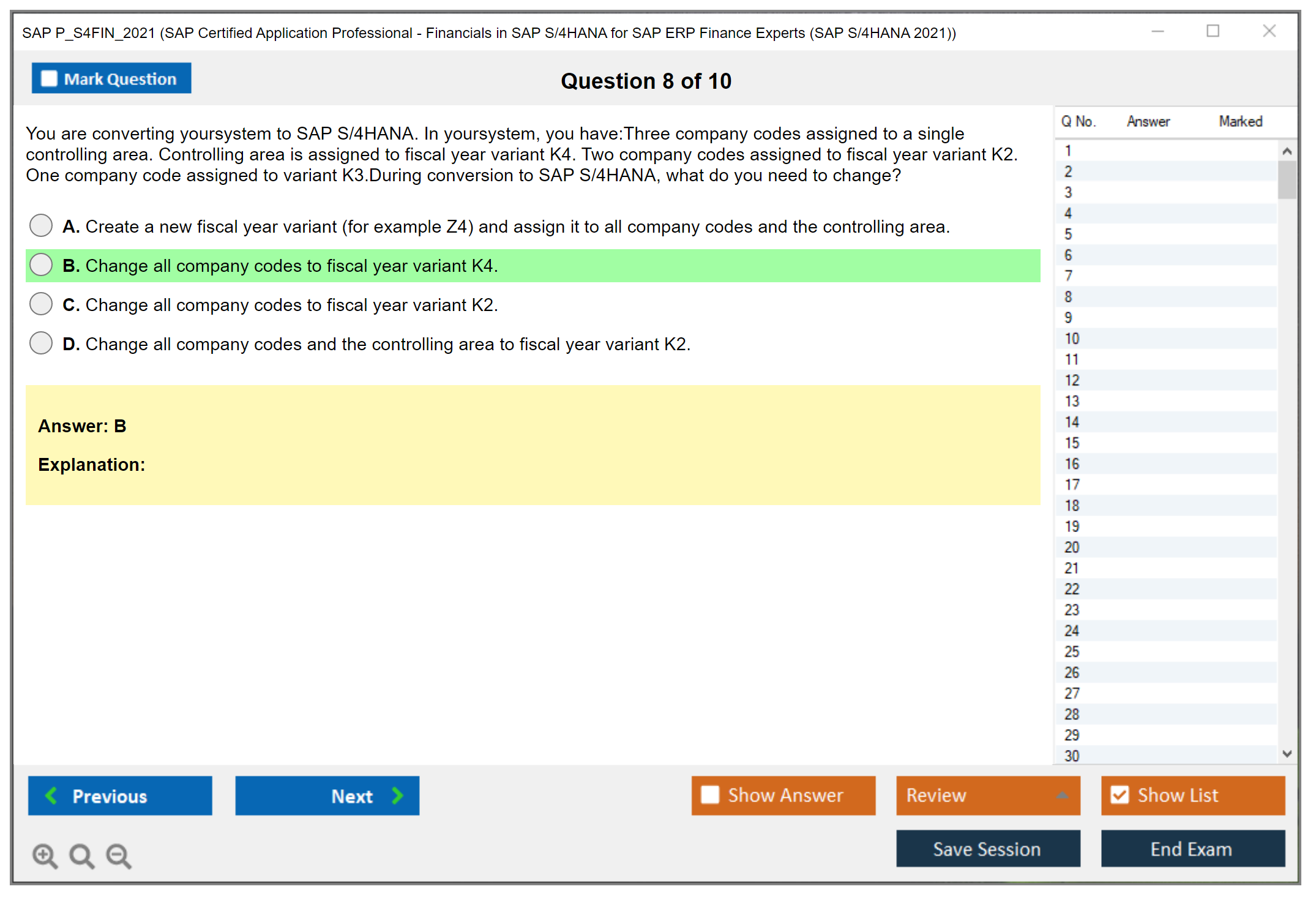 The SAP P_S4FIN_2021 exam consists of 80 questions.