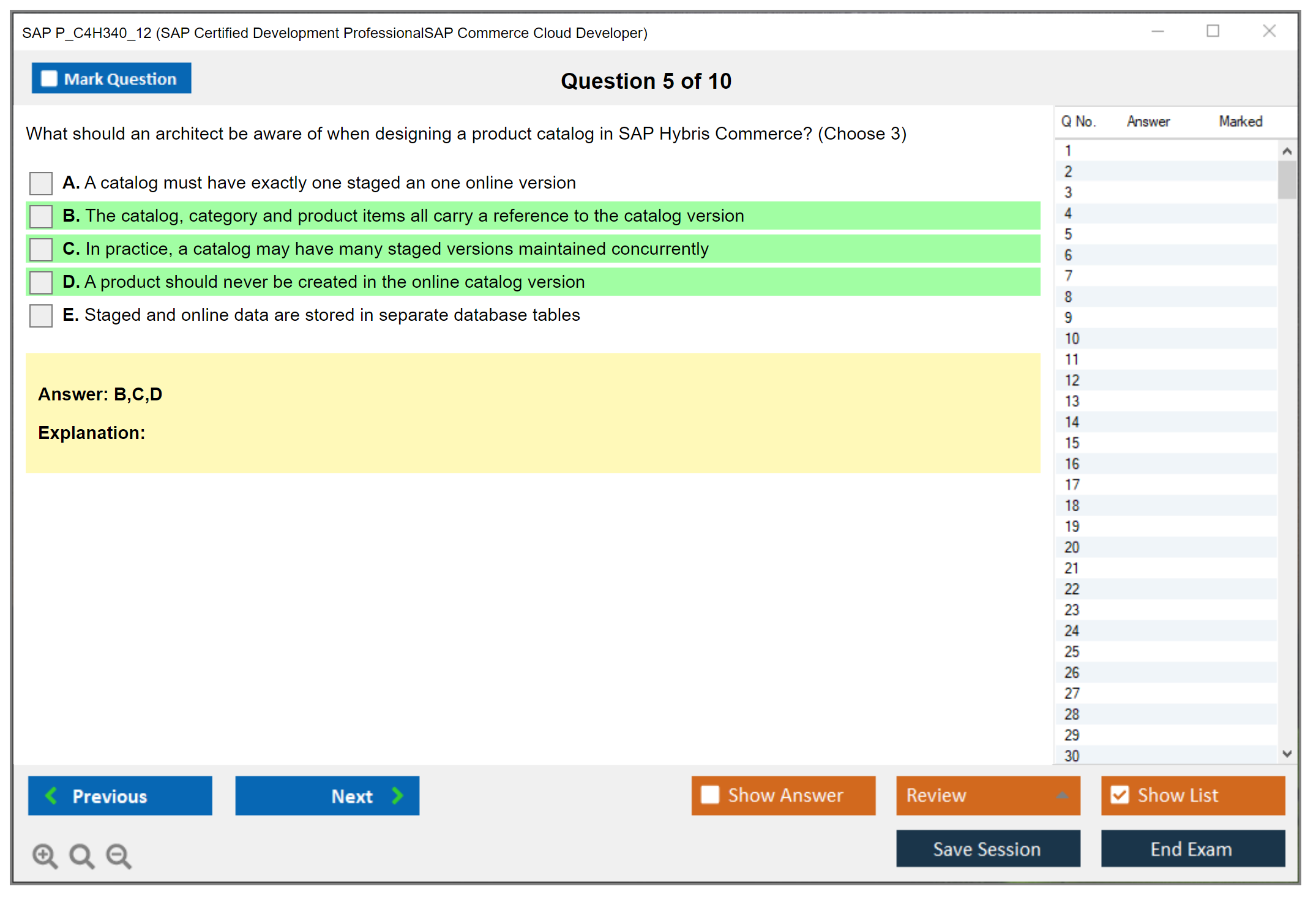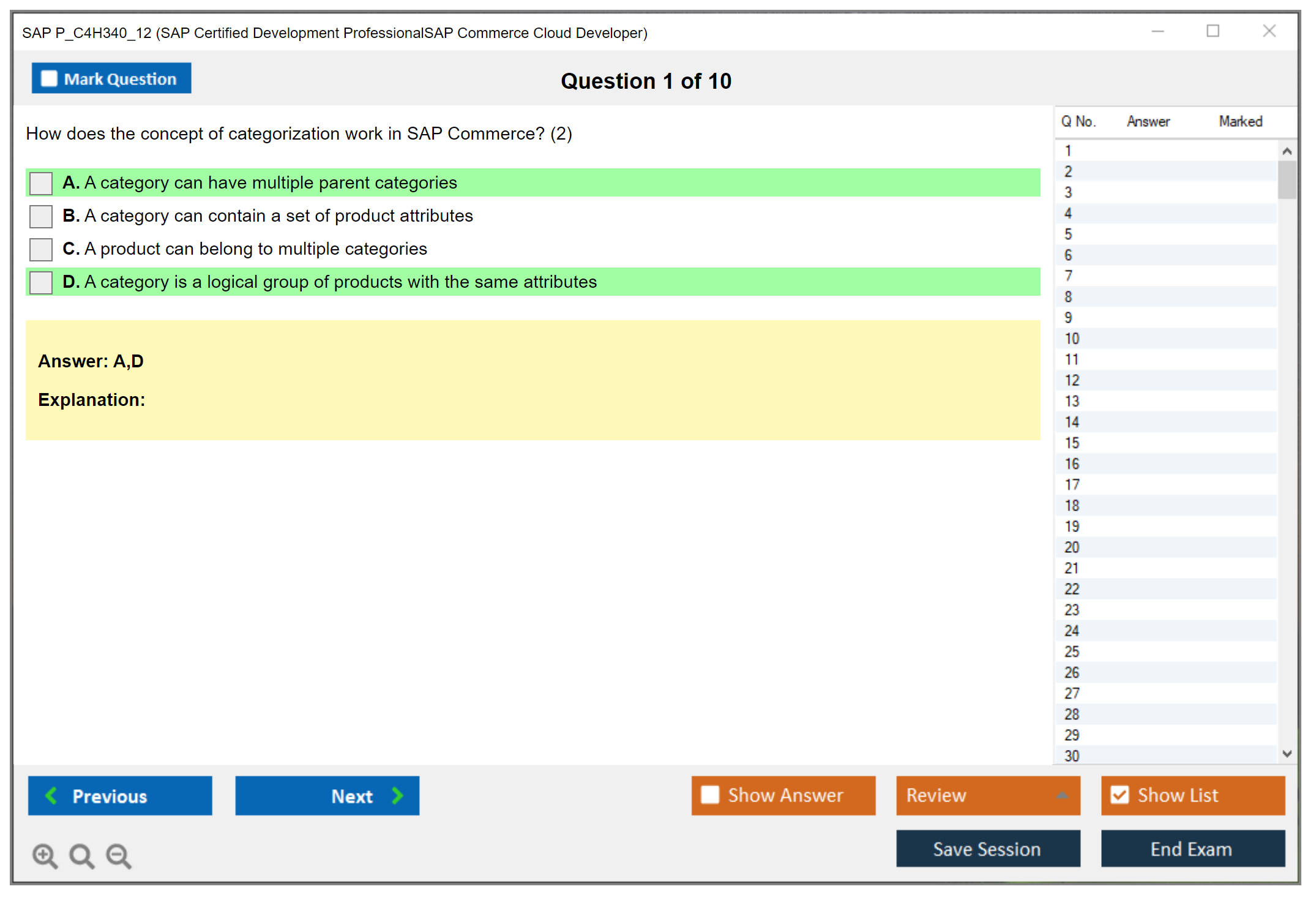 Note: SAP P_C4H340_12 (SAP Certified Development ProfessionalSAP Commerce Cloud Developer) will not receive any new updates.