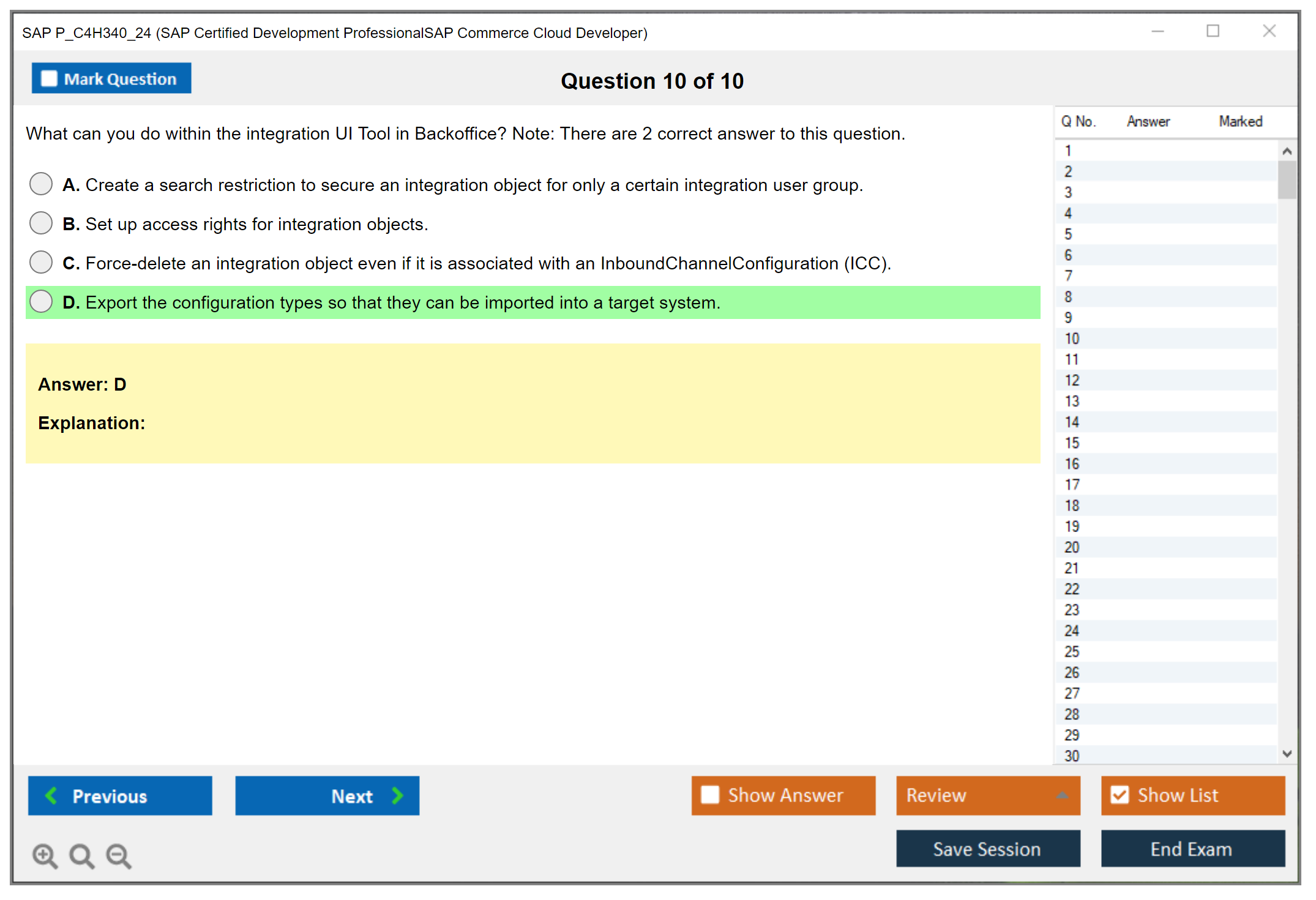 The SAP P_C4H340_24 (SAP Certified Development Professional - SAP Commerce Cloud Developer) exam is designed to validate the skills and knowledge of candidates in the area of SAP Commerce Cloud development. It focuses on the ability to develop and customize applications using SAP Commerce Cloud tools and technologies.
