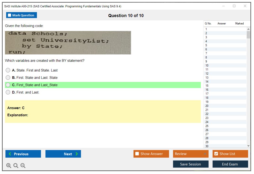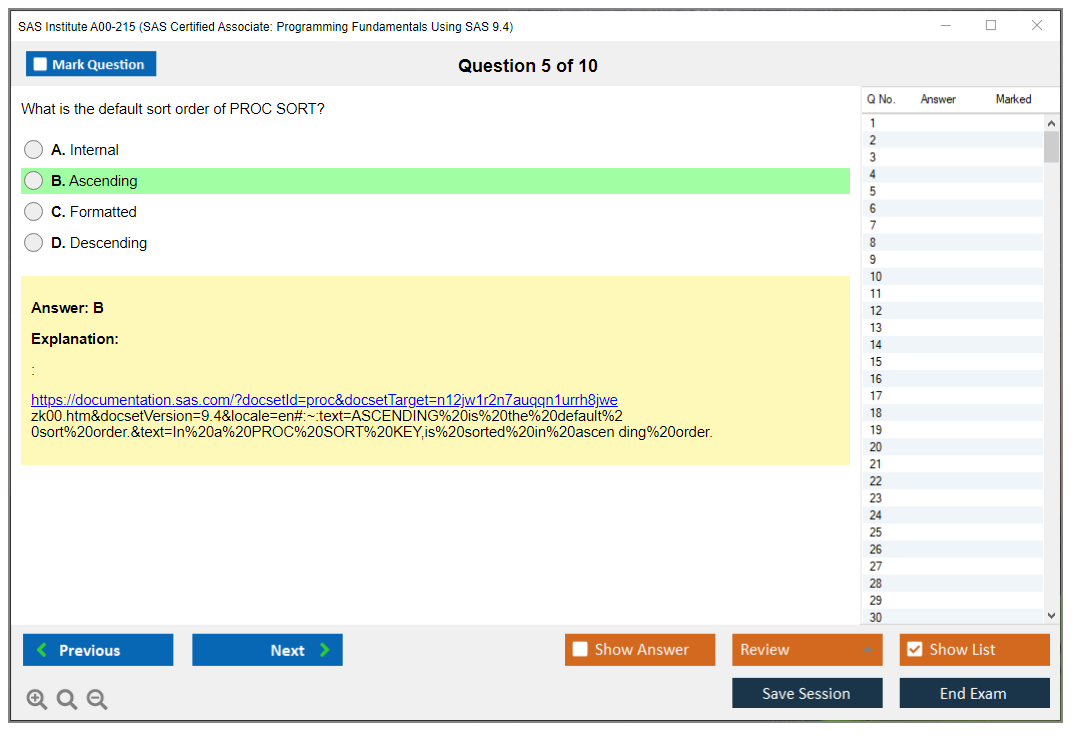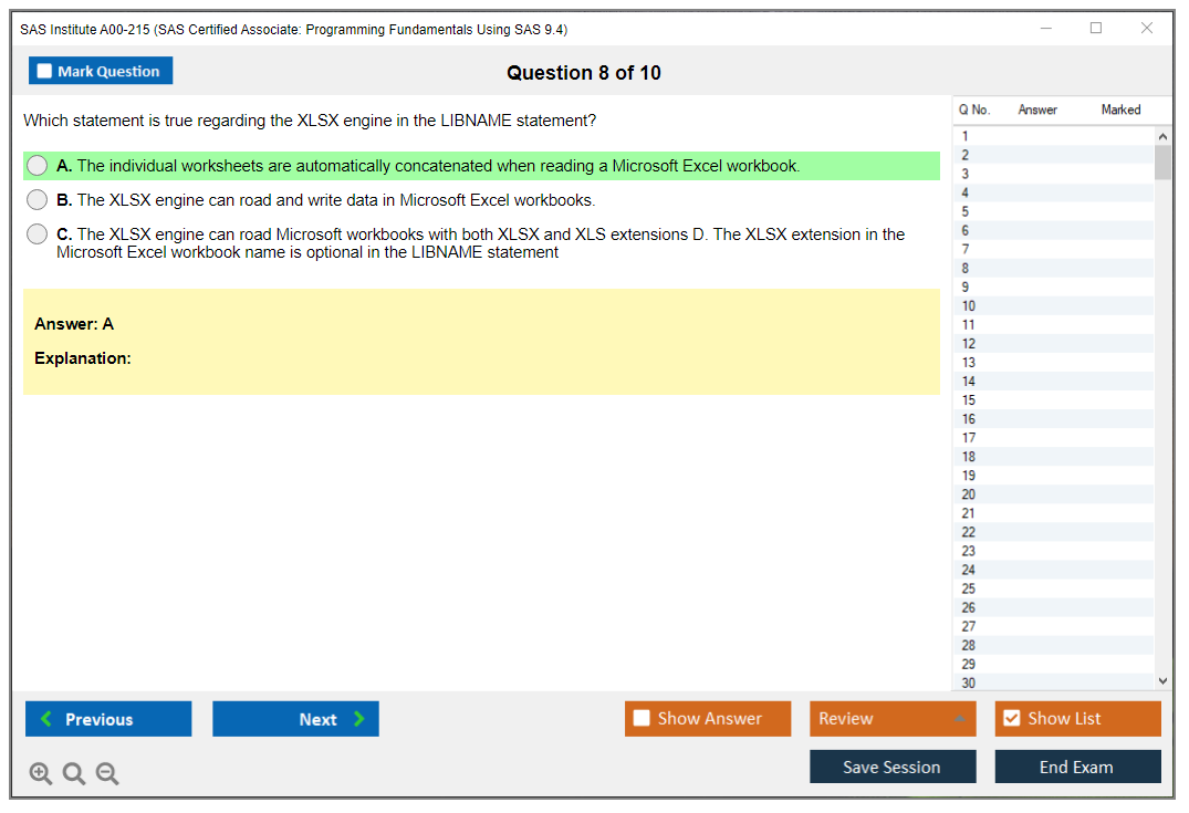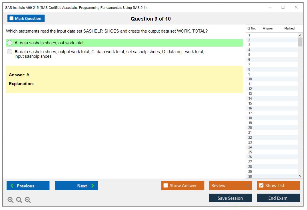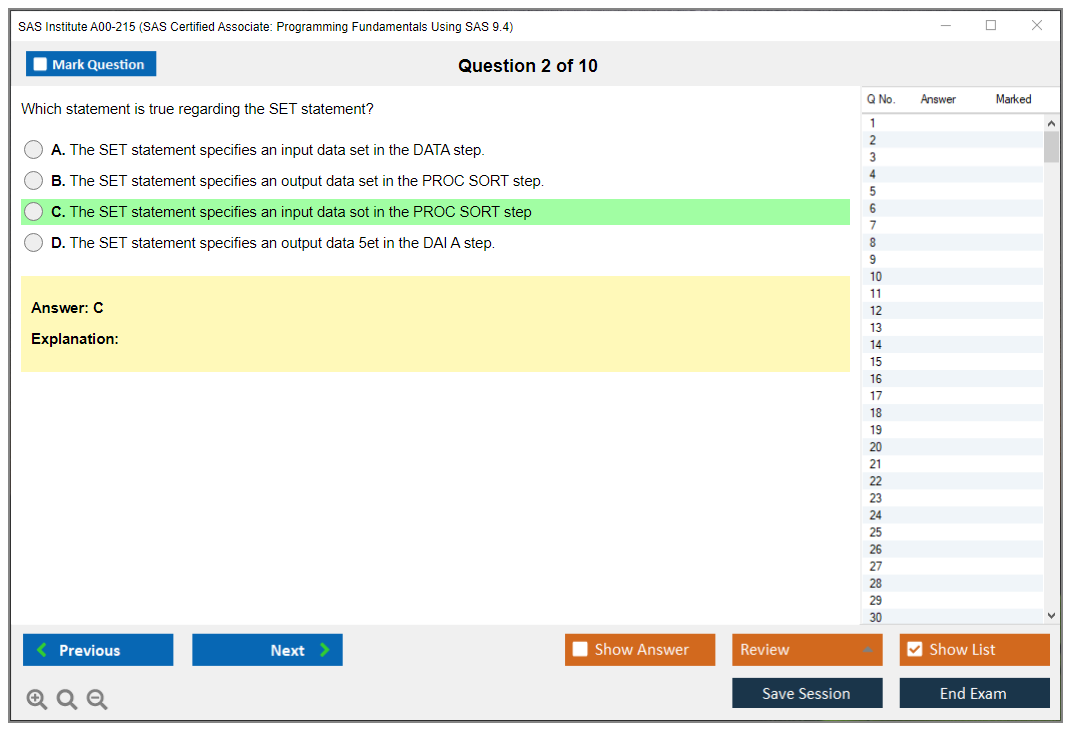 The SAS Institute A00-215 exam is part of the SAS certification track and can be followed by more advanced certifications such as the SAS Certified Specialist or SAS Certified Professional.