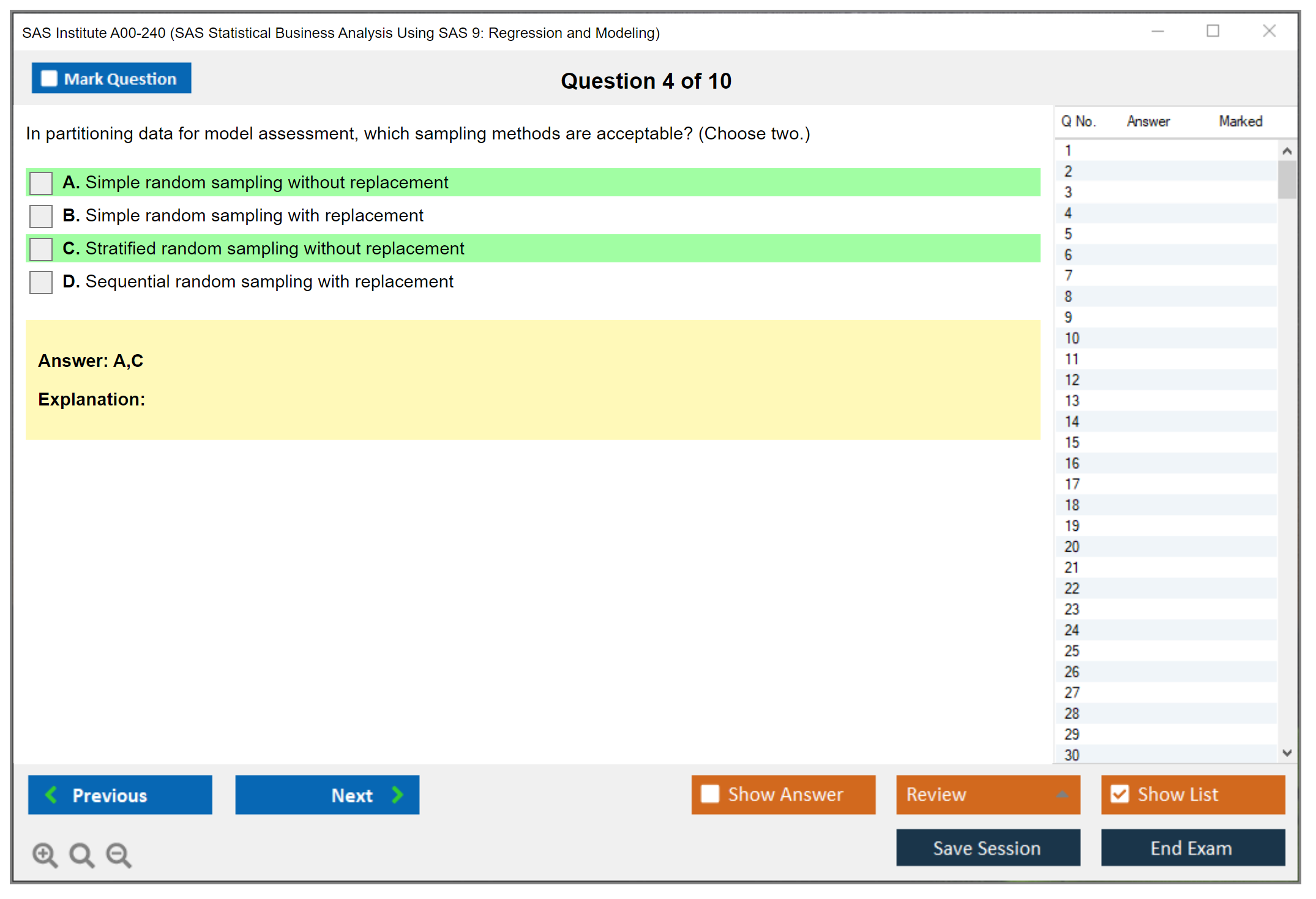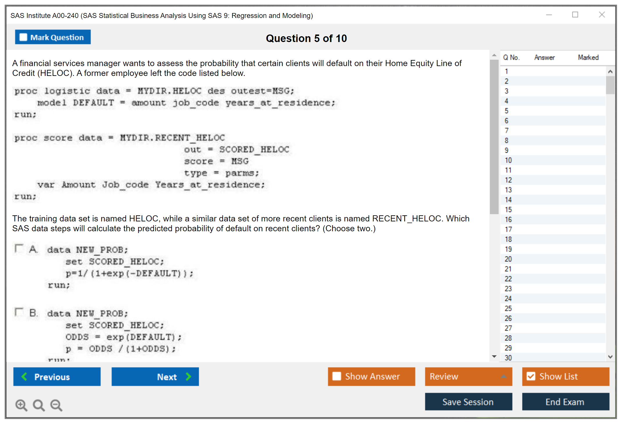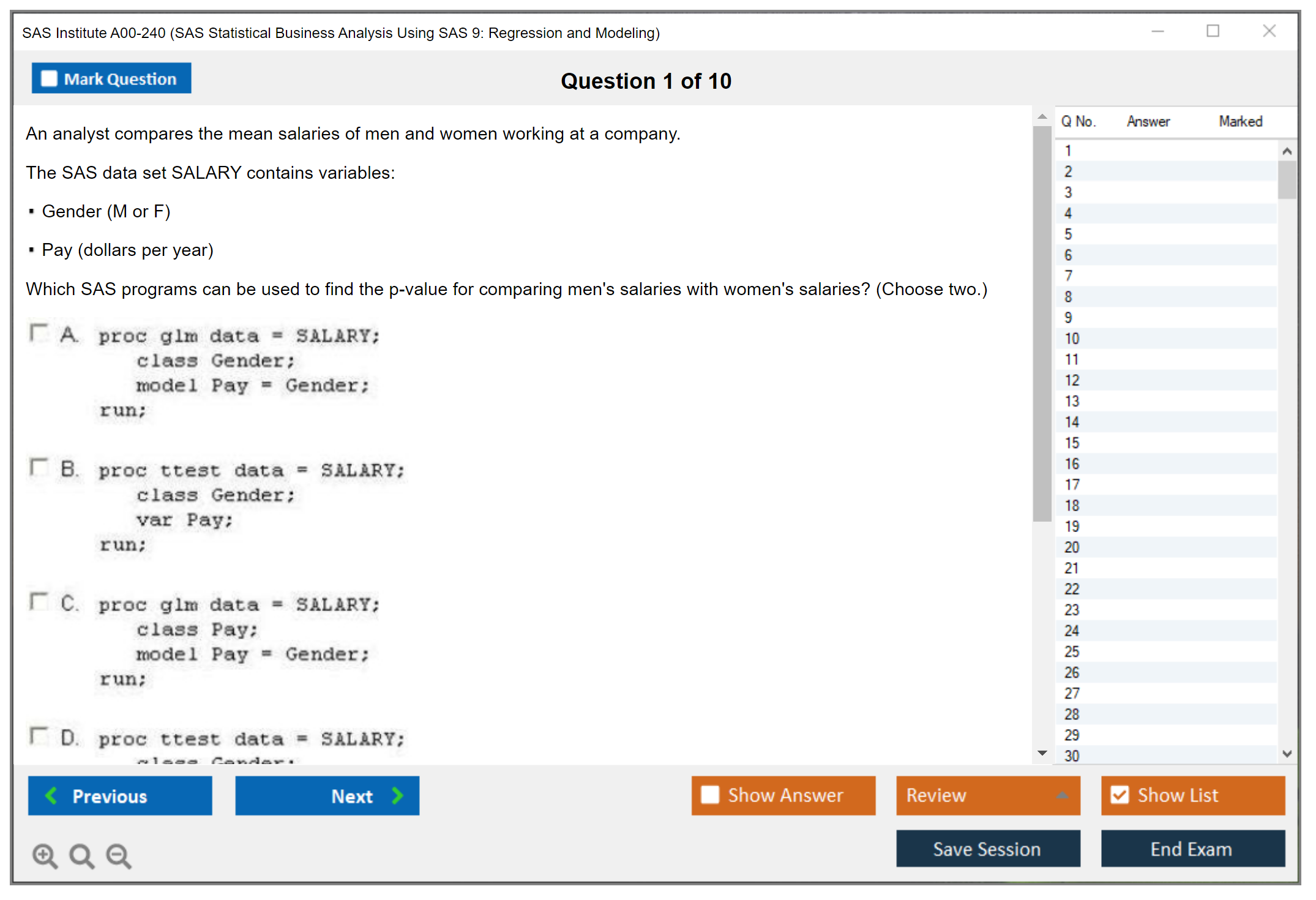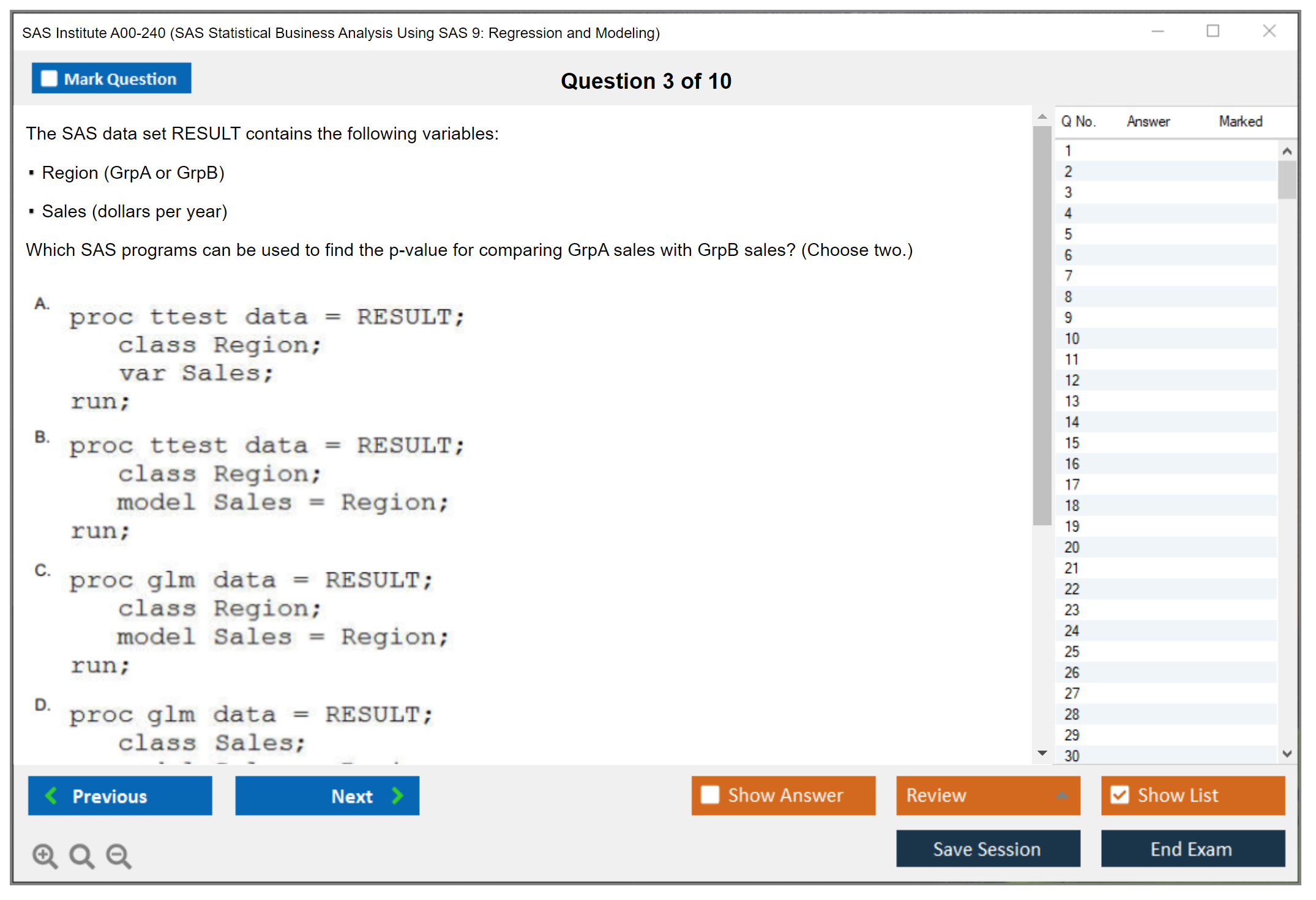 What are the Sample Questions of SAS Institute A00-240 Exam?