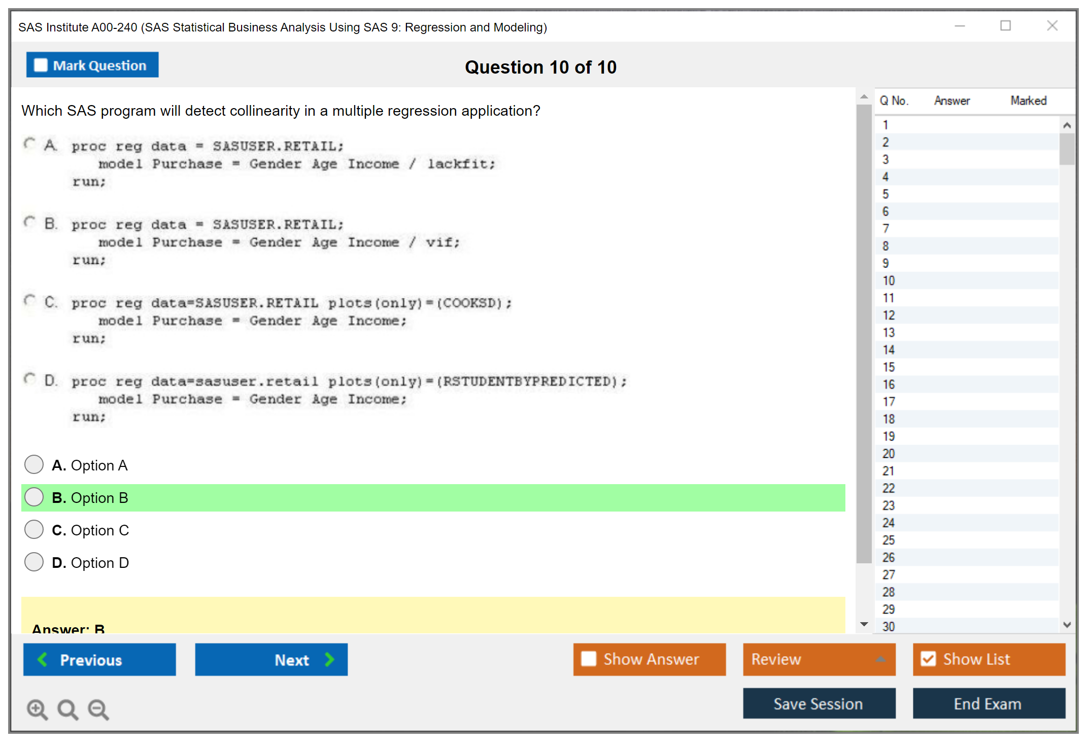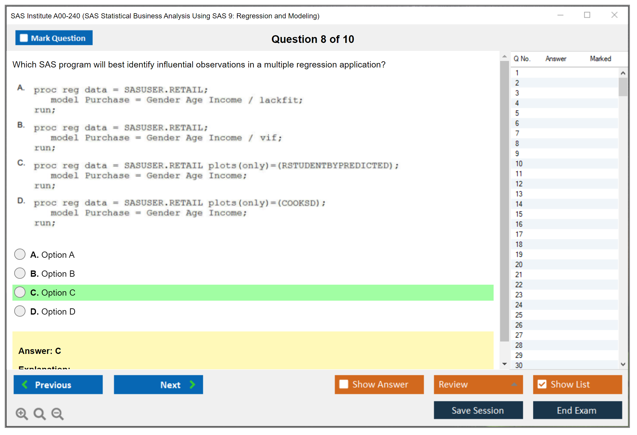 The SAS Institute A00-240 (SAS Statistical Business Analysis SAS9: Regression and Model) exam is designed to test the candidate's ability to apply statistical techniques using SAS software. It focuses on regression and modeling techniques that are essential for business analysis.