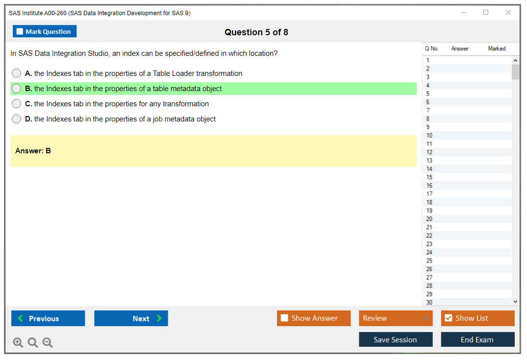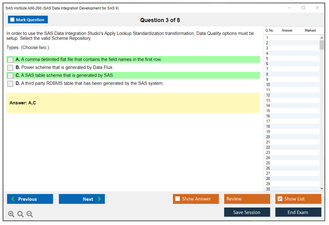 The SAS Institute A00-260 (SAS Data Integration Development) Exam is a certification exam designed to validate the skills and knowledge required to perform data integration tasks using SAS Data Integration Studio. It focuses on data management, data warehousing, and ETL (Extract, Transform, Load) processes.