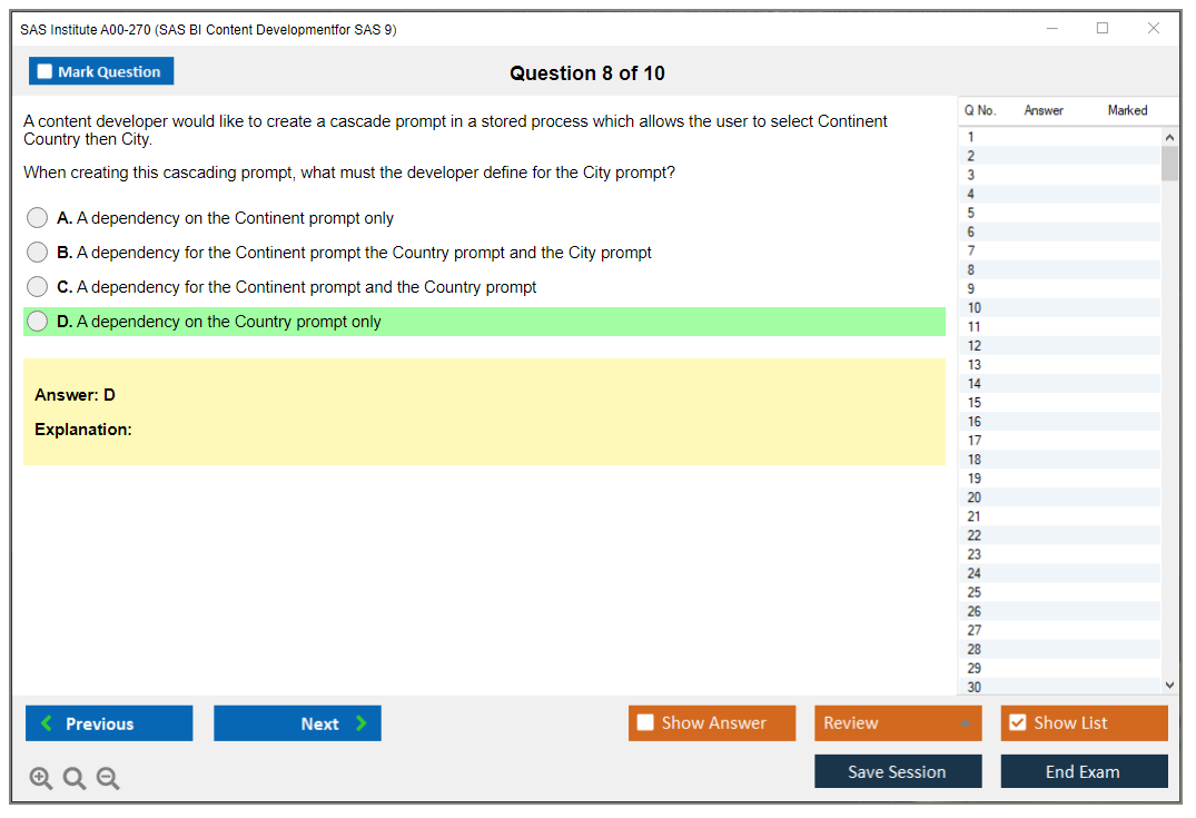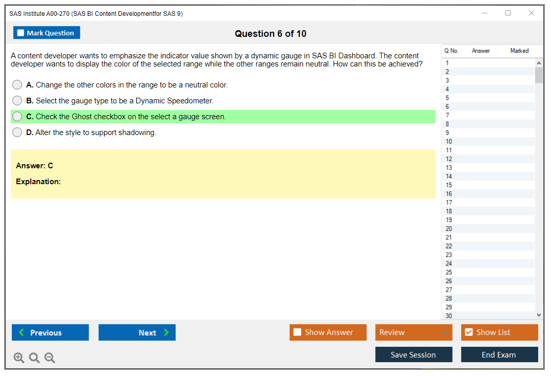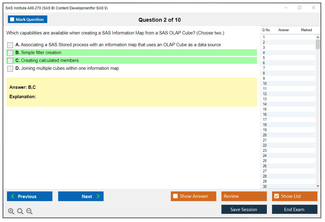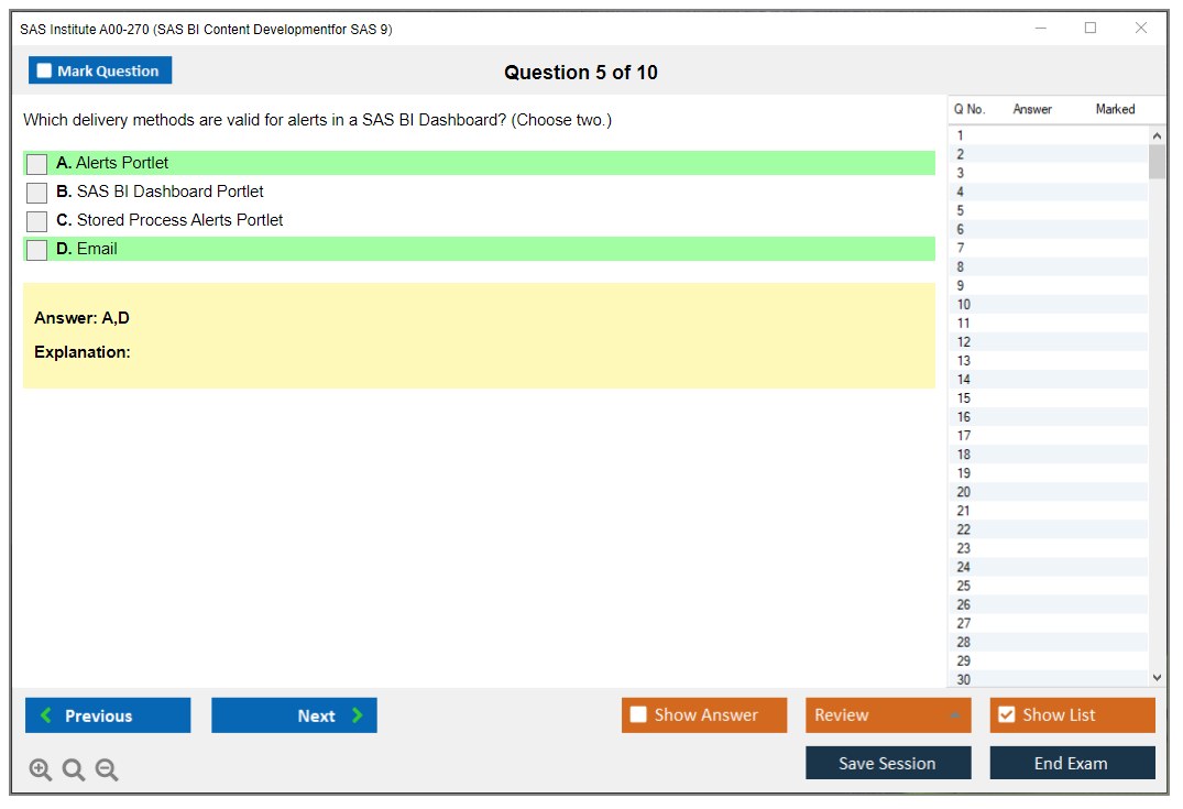 The question format of the SAS Institute A00-270 Exam includes multiple-choice questions, short-answer questions, and scenario-based questions.