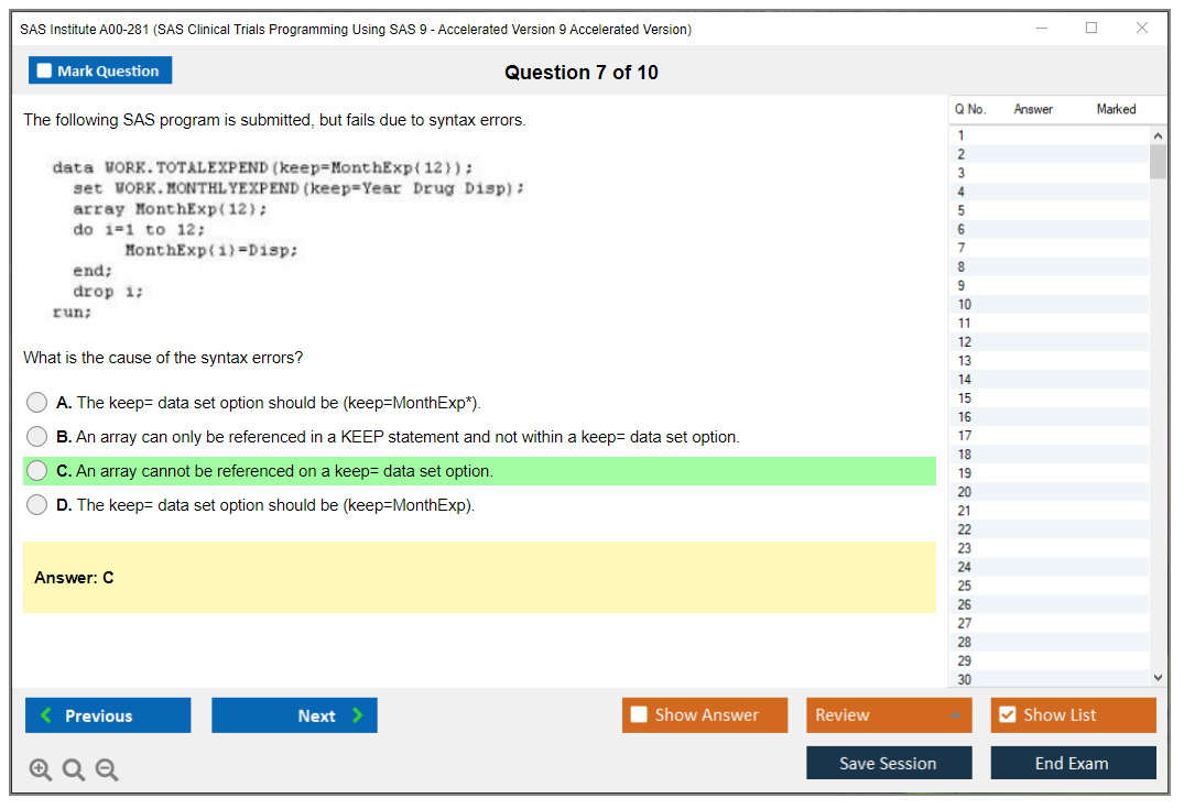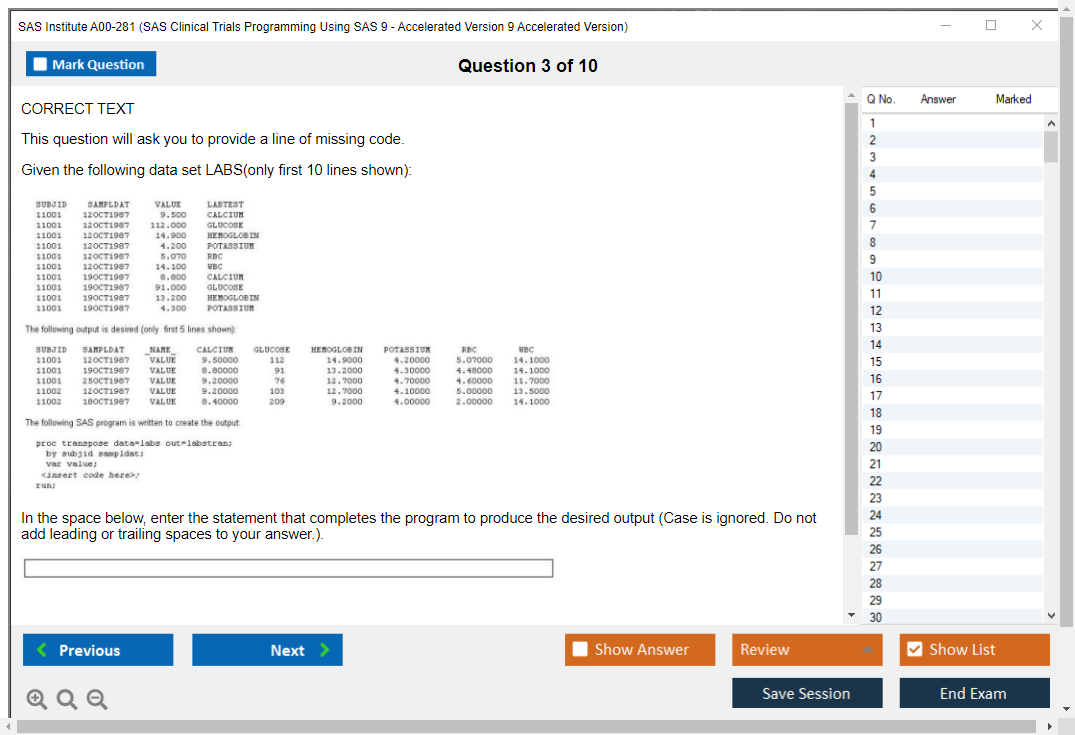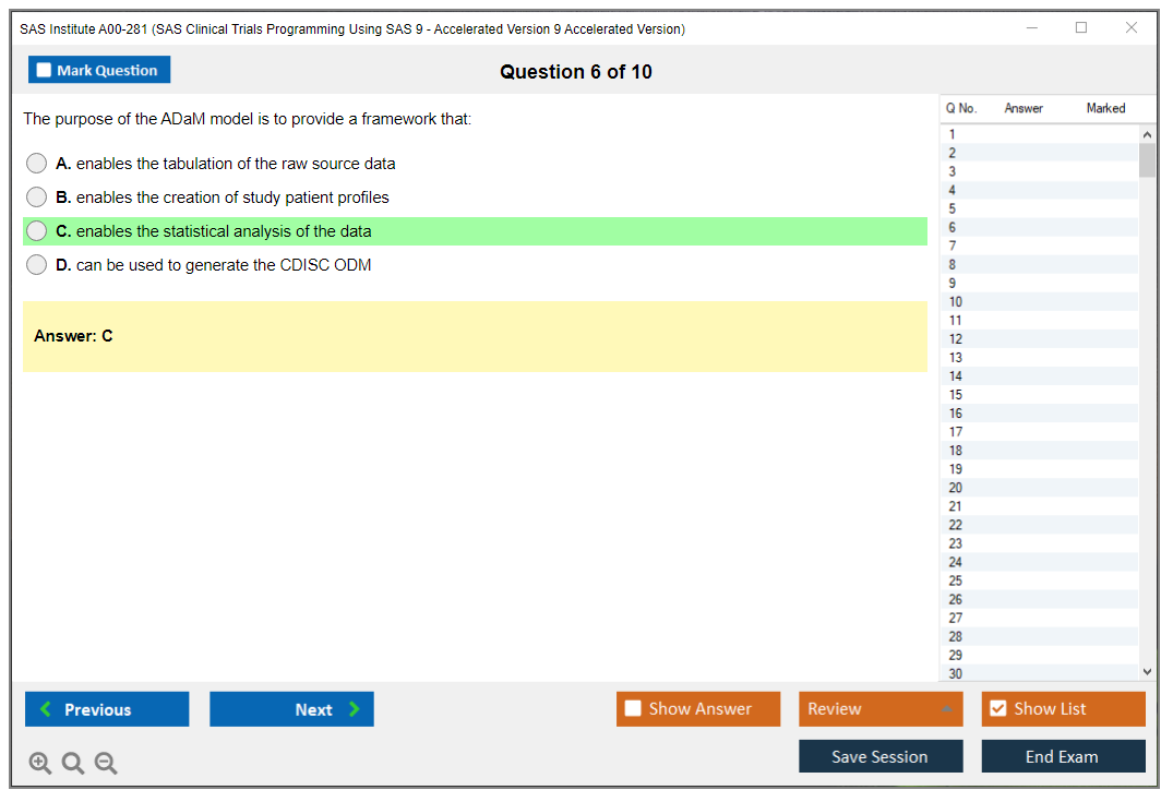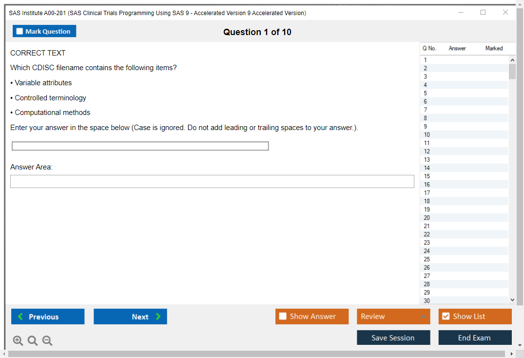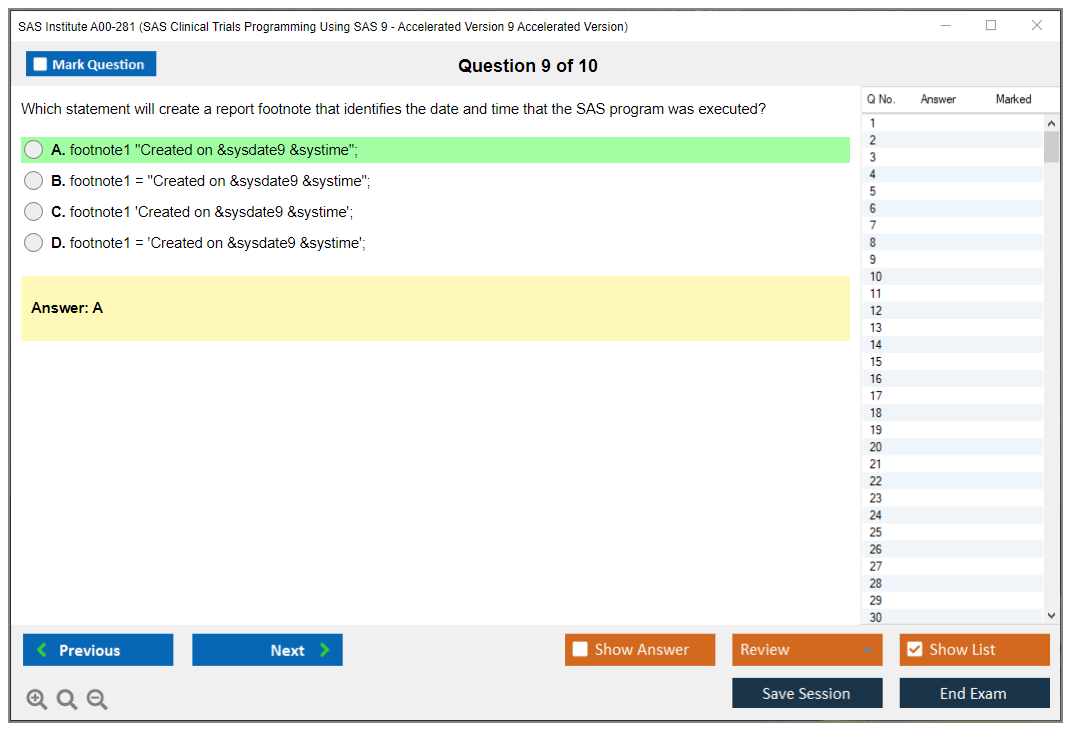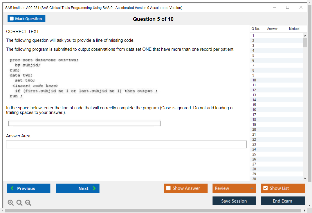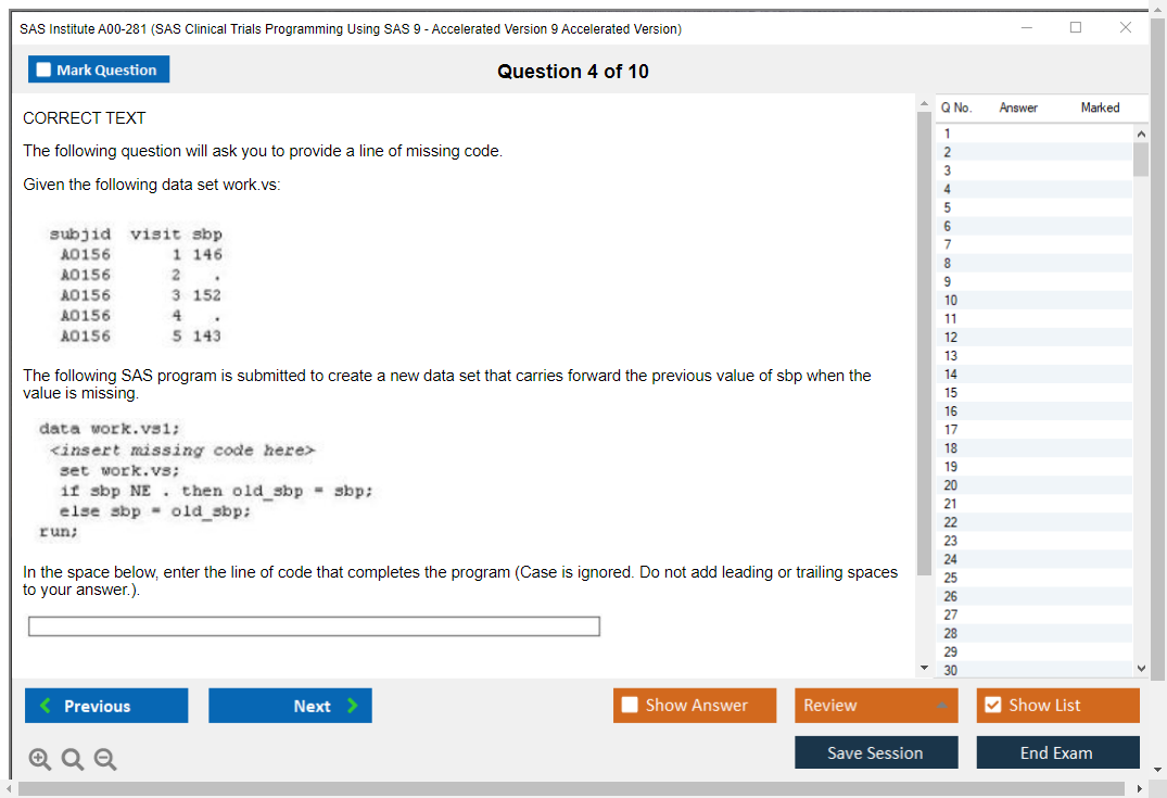 The question format of the SAS Institute A00-281 Exam includes multiple-choice questions, short answer questions, and scenario-based questions.