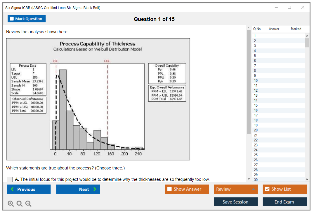 What are the Number of Questions Asked in Six Sigma ICBB Exam?