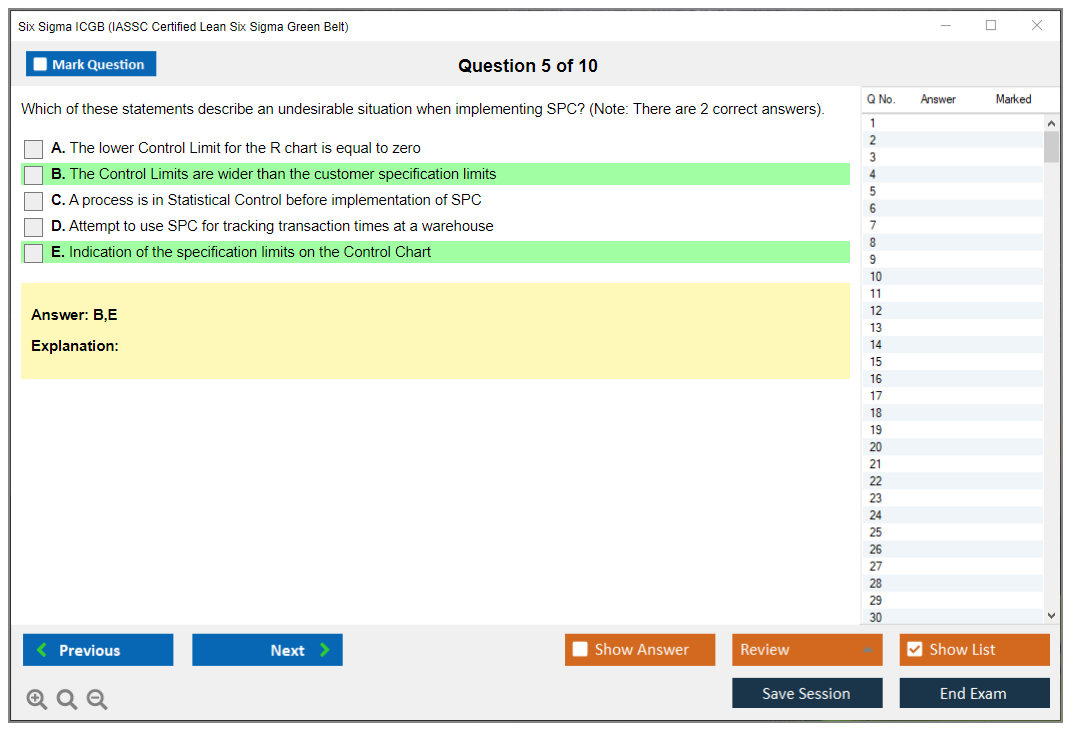 The Six Sigma ICGB (IASSC Certified Lean Six Sigma Green Belt) Exam is a professional certification exam designed to measure a candidate's knowledge and understanding of the Lean Six Sigma methodology and its application. It focuses on the DMAIC (Define, Measure, Analyze, Improve, Control) process improvement cycle.