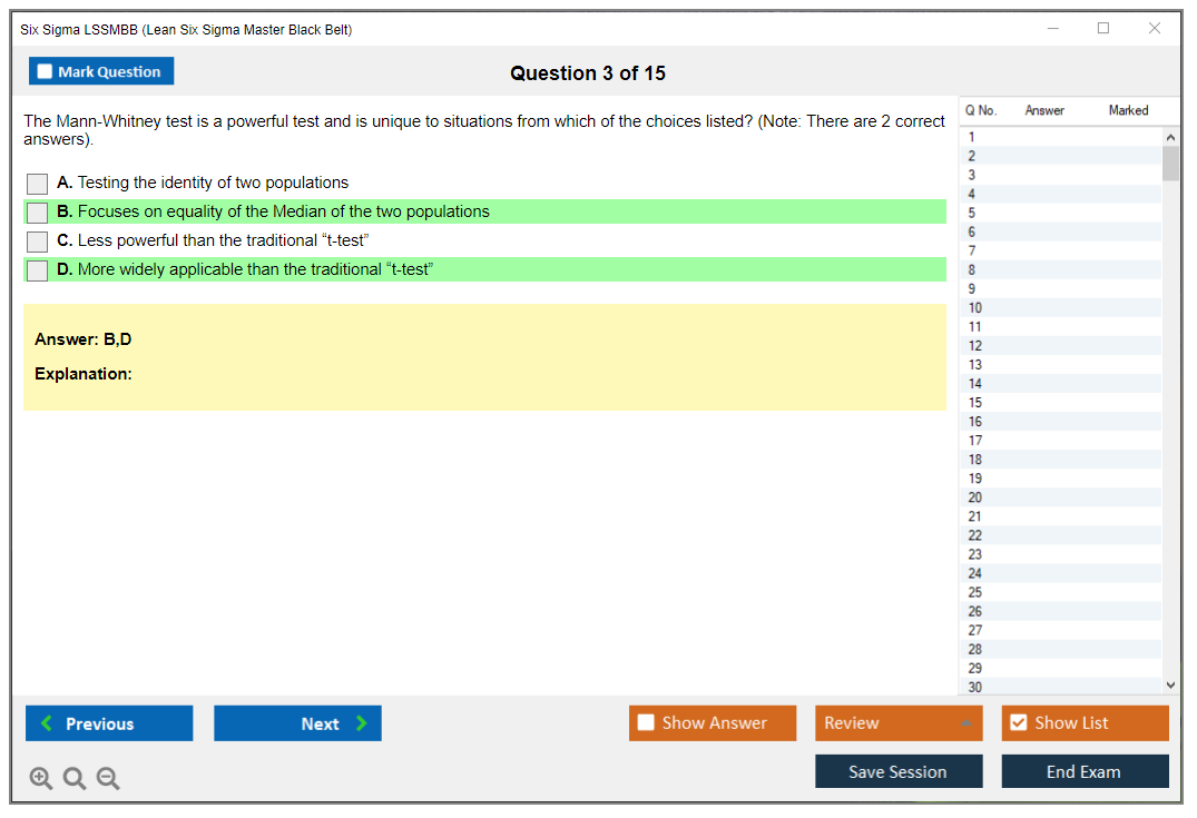 What are the Sample Questions of Six Sigma LSSMBB Exam?