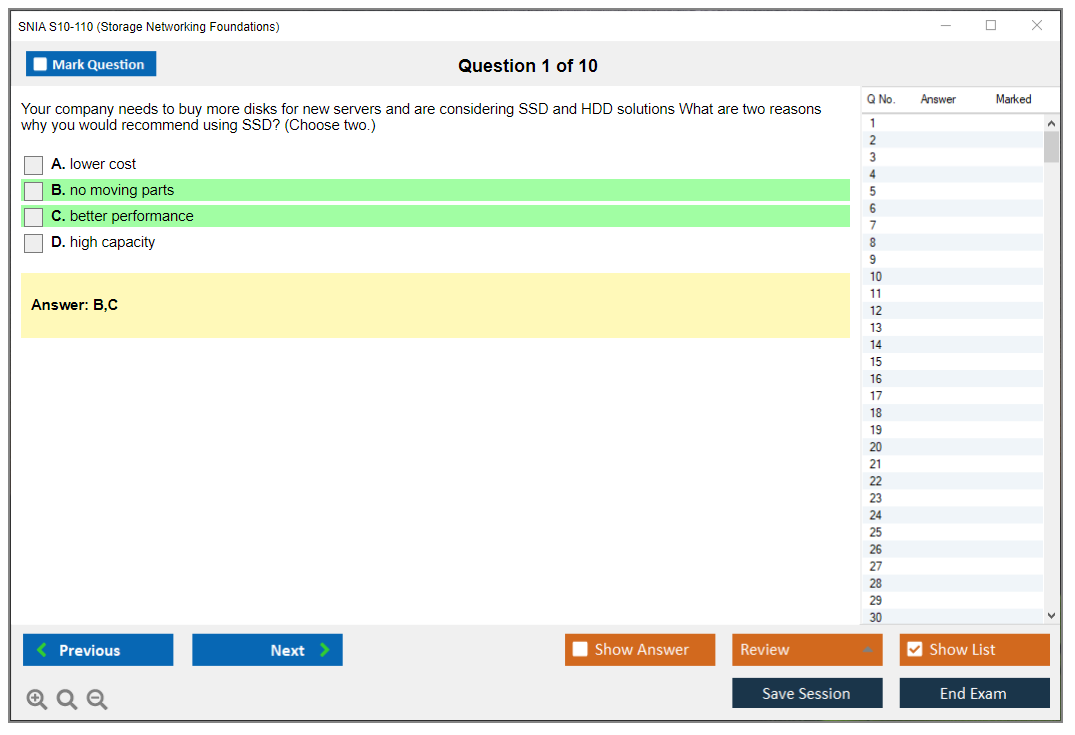 The SNIA S10-110 Exam consists of multiple-choice and multiple-response questions.