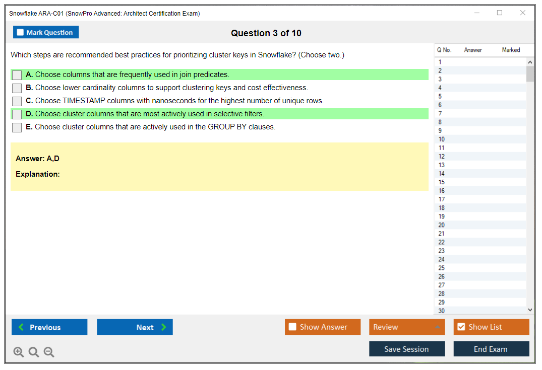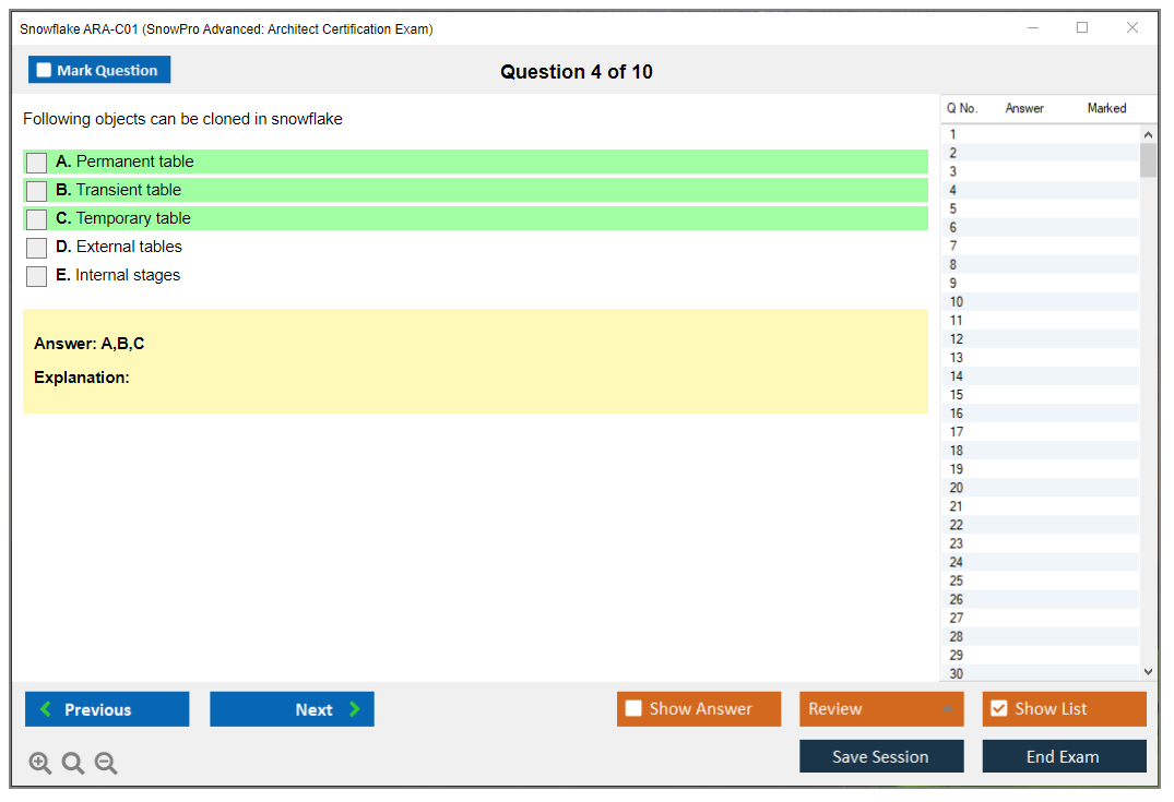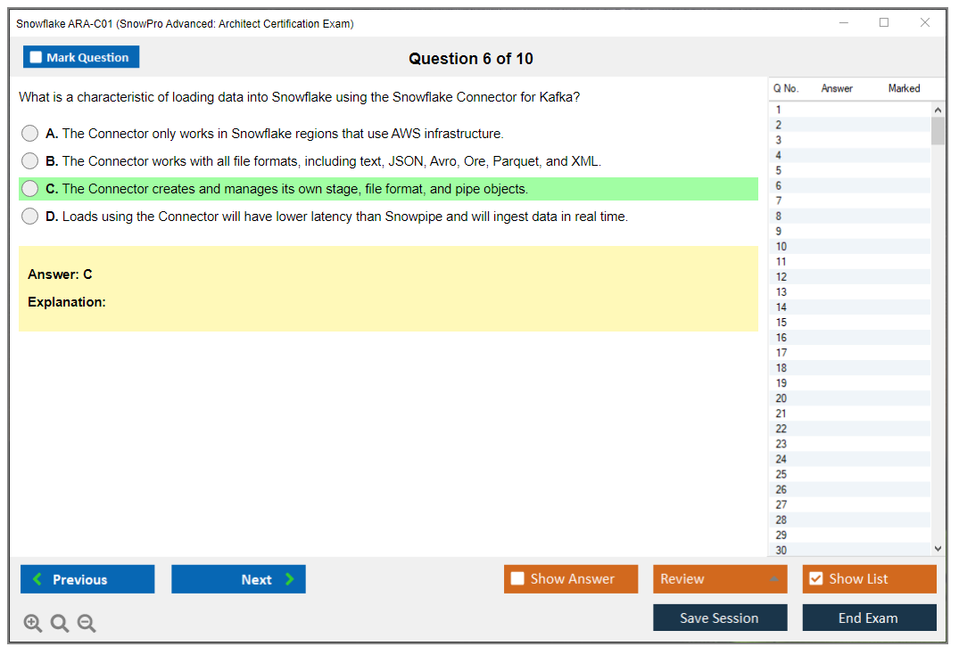 The question format of the Snowflake ARA-C01 Exam includes multiple-choice and multiple-select questions.
