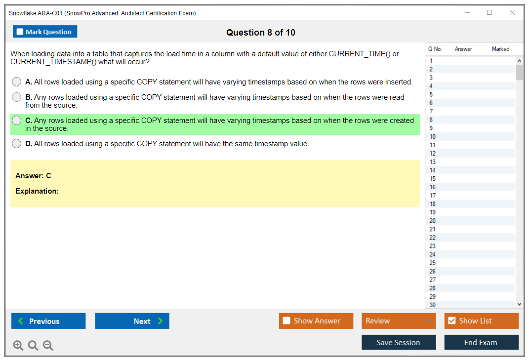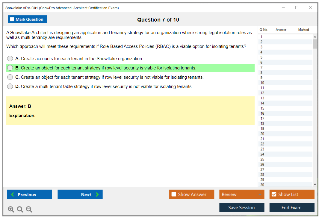 The Snowflake ARA-C01 (SnowPro Advanced: Architect Certification Exam) is designed to test advanced knowledge and skills in Snowflake's cloud data platform. It validates the expertise of individuals in designing, building, and managing secure, scalable Snowflake solutions.