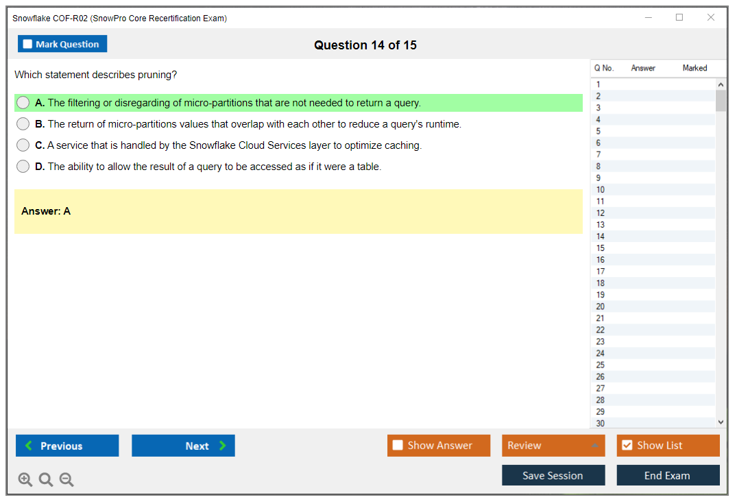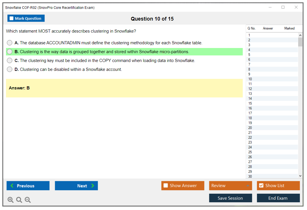The Snowflake COF-R02 Exam is a recertification exam for the SnowPro Core Certification. It aims to validate the candidate's continued expertise in Snowflake's core features, architecture, and best practices.