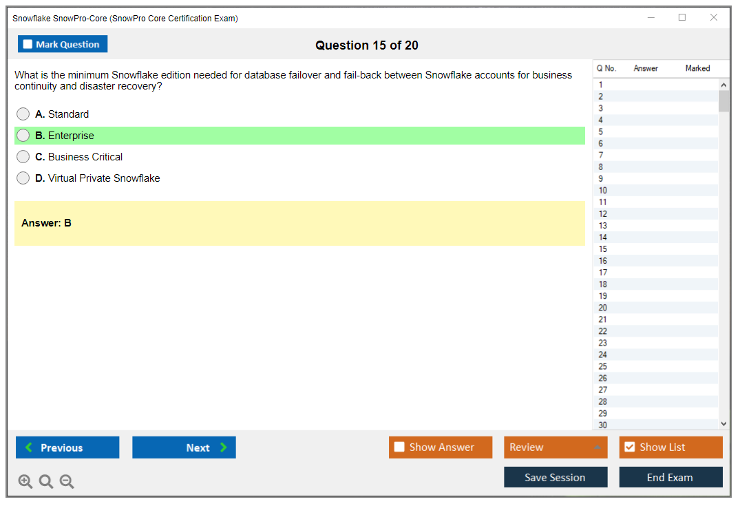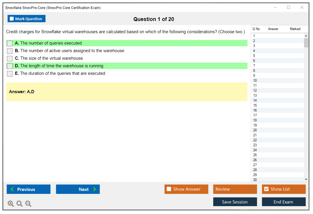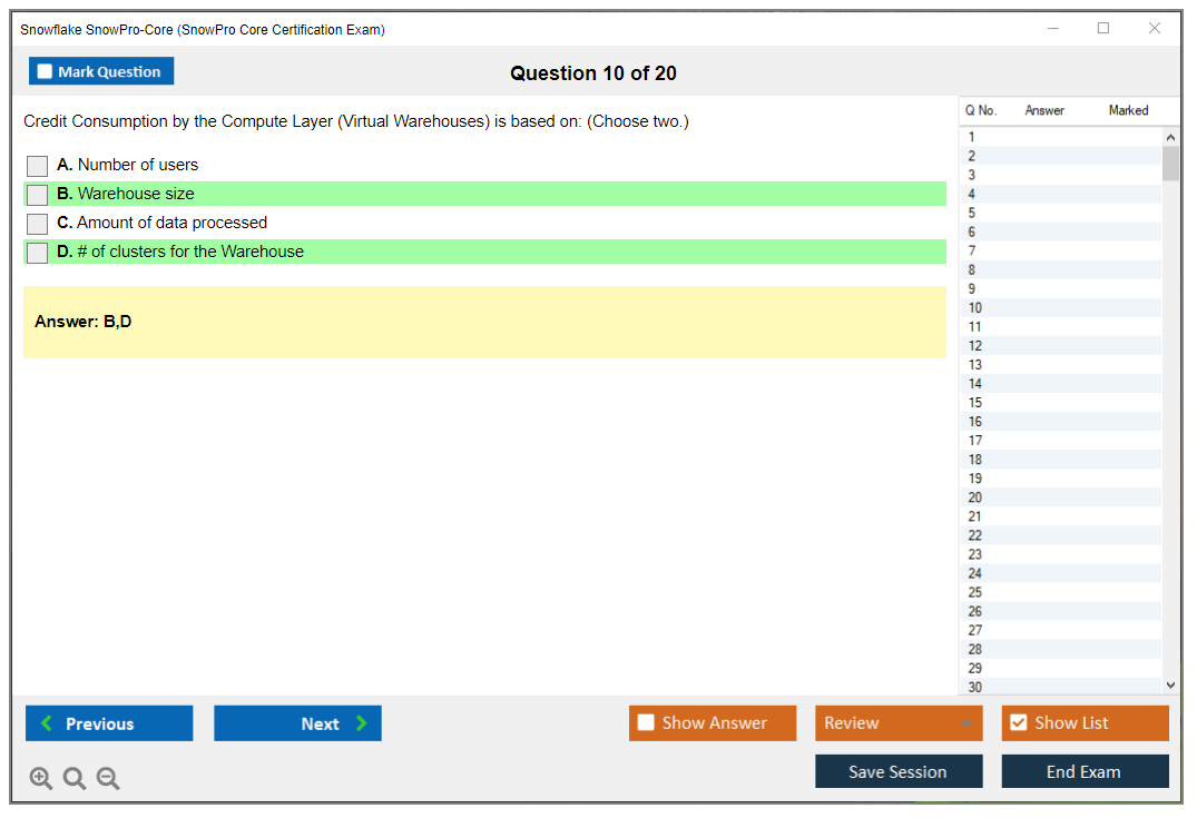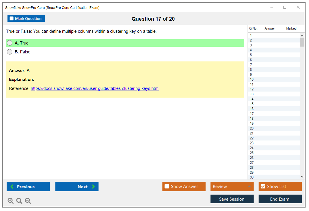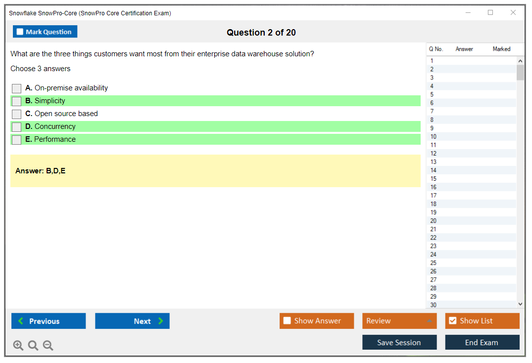 The Snowflake SnowPro-Core Exam is a certification test for individuals who want to demonstrate their expertise in using the Snowflake cloud data platform. The exam assesses knowledge of Snowflake's architecture, features, and best practices.