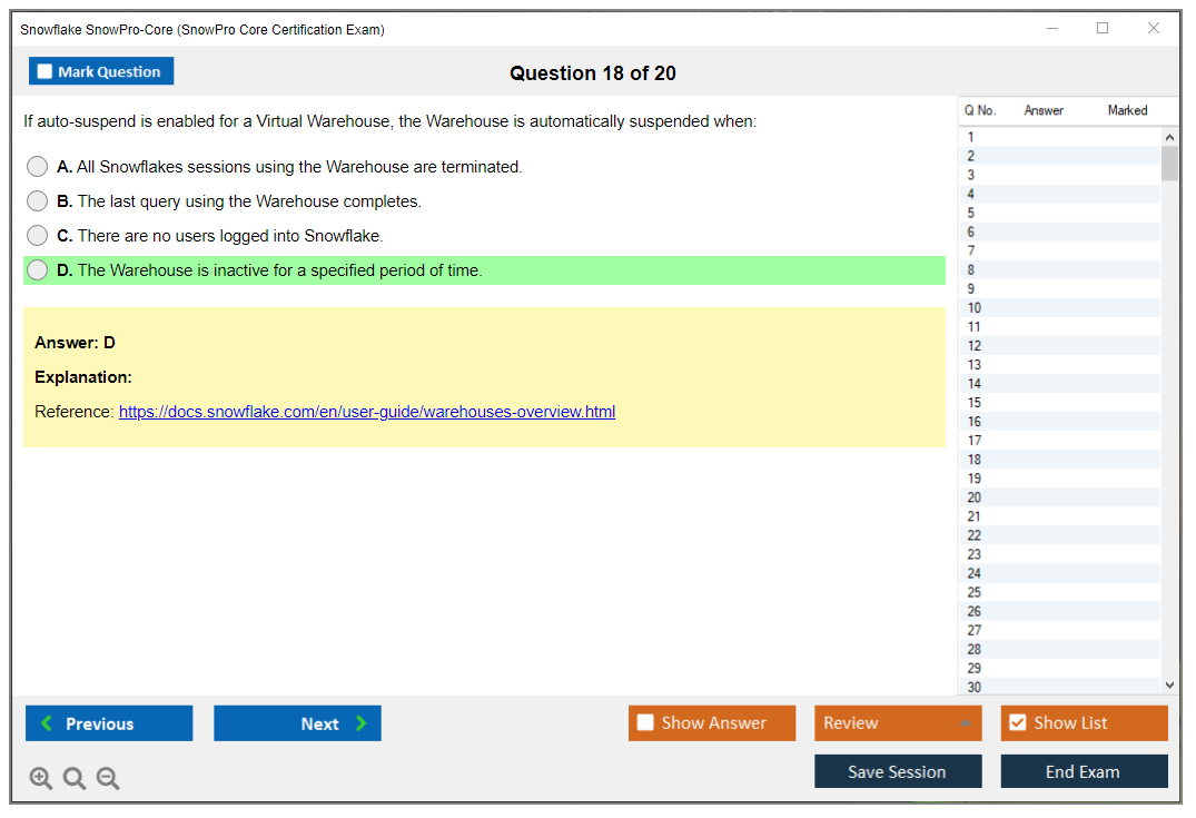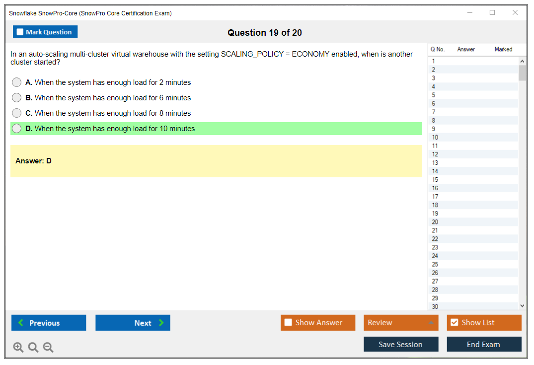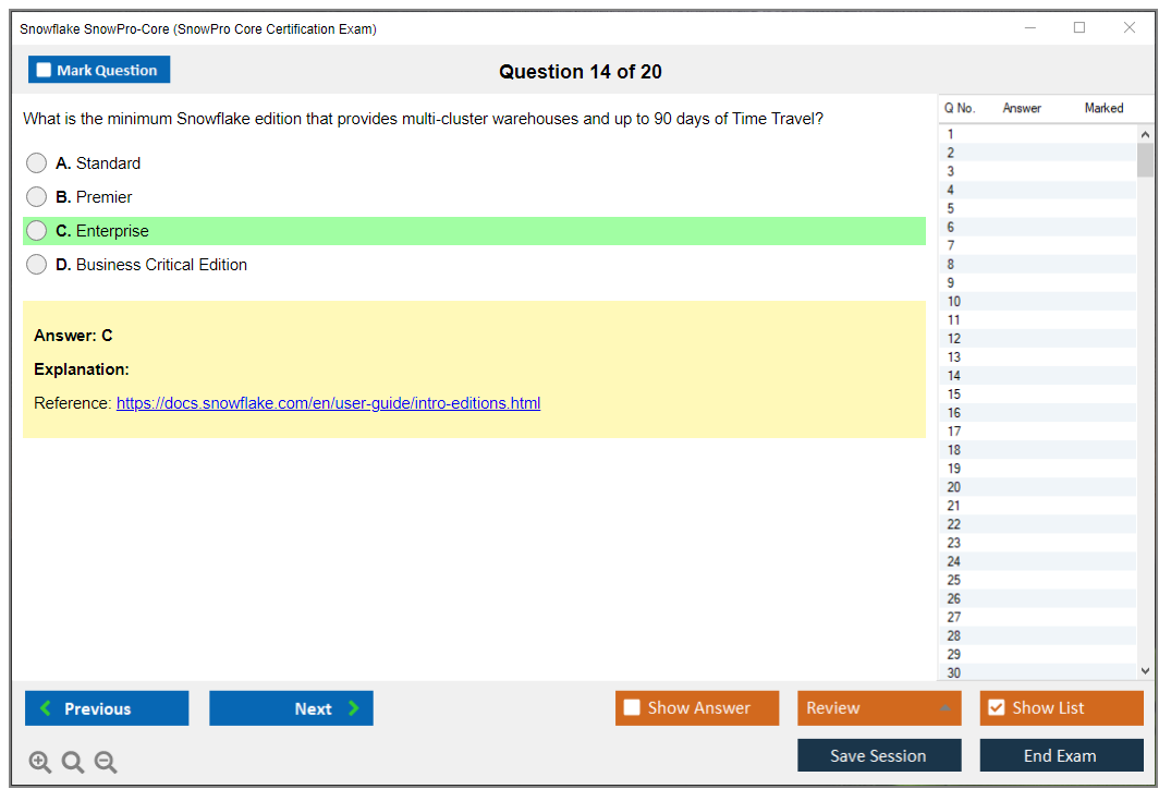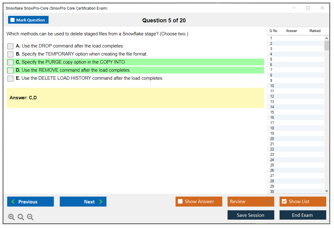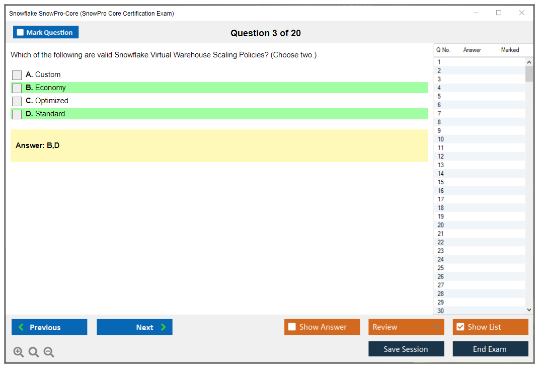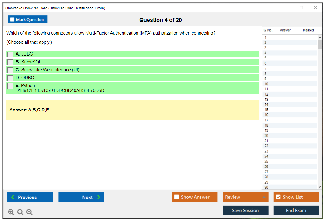 The Snowflake SnowPro-Core Exam is a certification test for individuals who want to demonstrate their expertise in using the Snowflake cloud data platform. The exam assesses knowledge of Snowflake's architecture, features, and best practices.