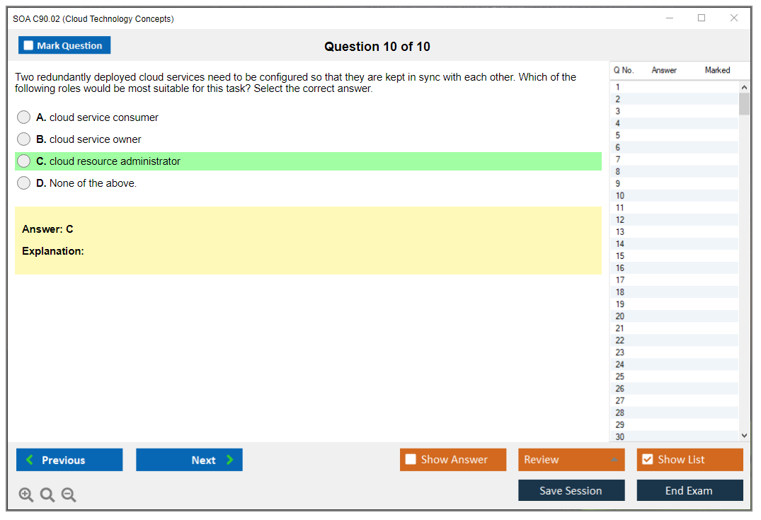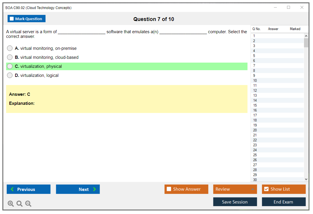 The SOA C90.02 (Cloud Technology Concepts) Exam is a certification exam that tests knowledge of fundamental cloud computing concepts, including cloud architecture, cloud delivery models, and cloud enabling technologies. It is part of the SOA Certified Professional (SOACP) program.