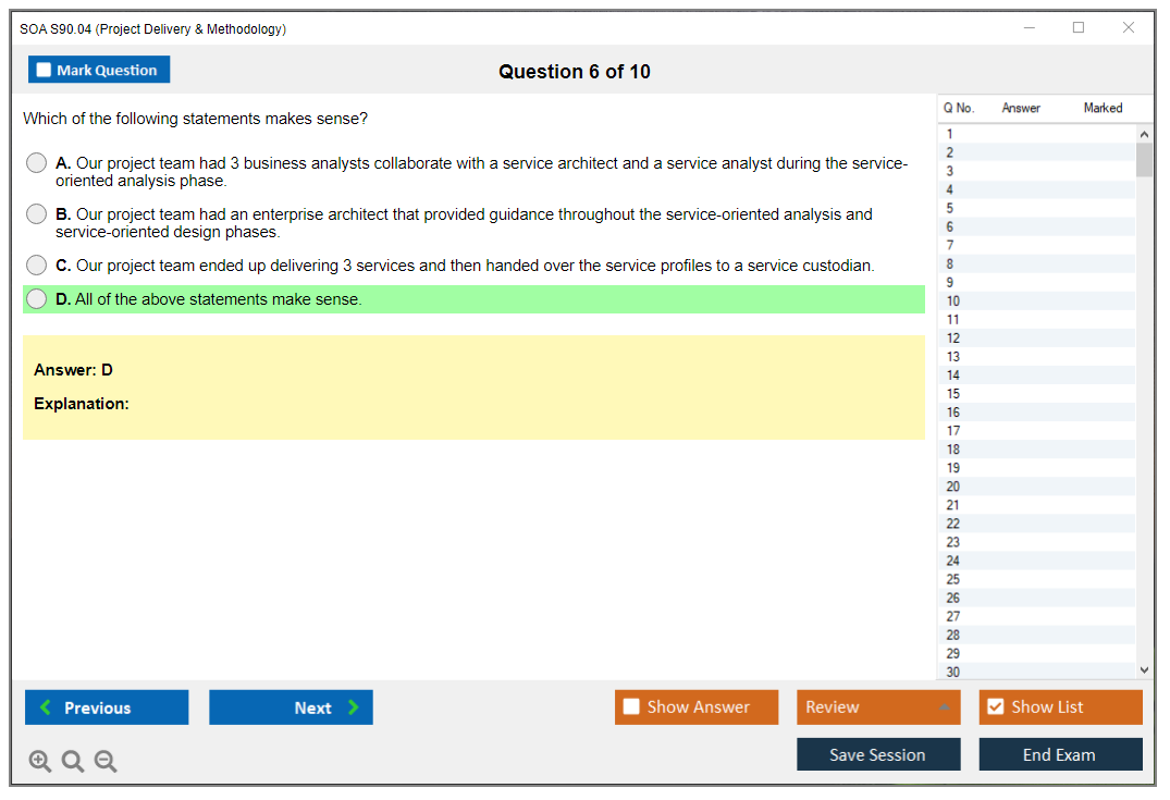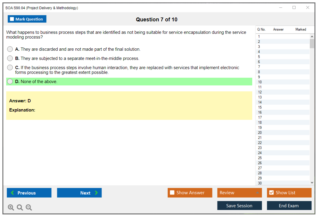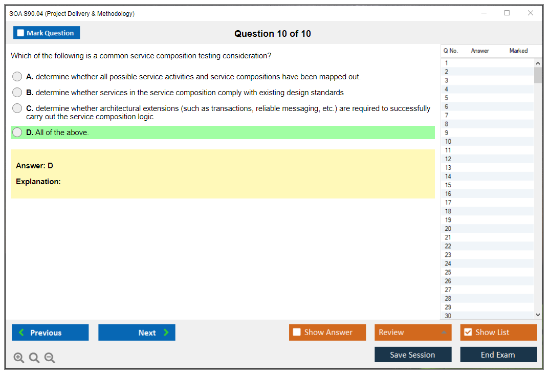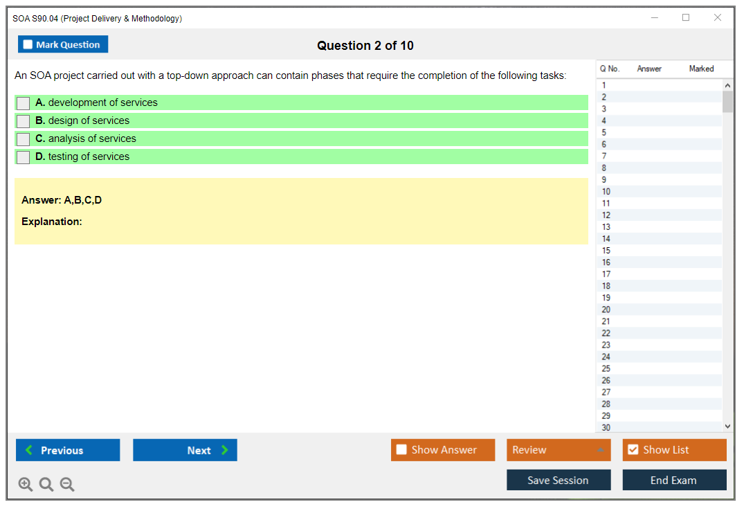 The SOA S90.04 Exam is a specialized certification exam focused on the delivery and methodology aspects of Service-Oriented Architecture (SOA) projects. It tests the candidate's understanding of SOA project management, methodologies, and best practices.