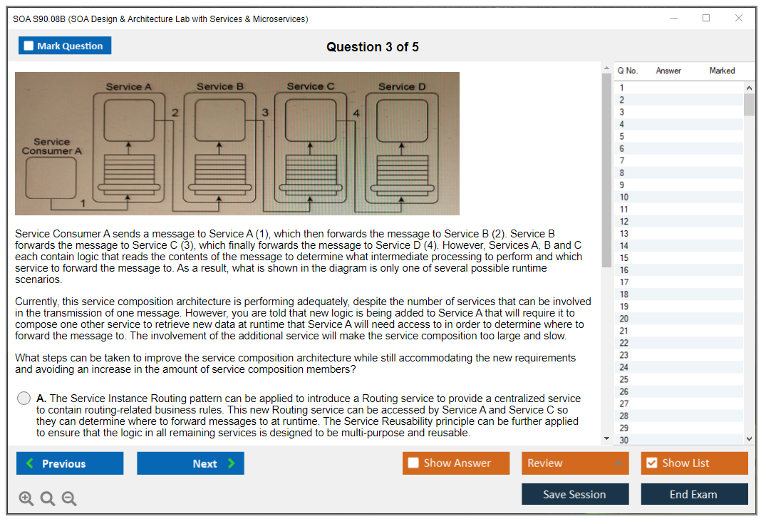 The SOA S90.08B Exam is designed to assess a candidate's proficiency in designing and architecting service-oriented solutions with a focus on services and microservices.