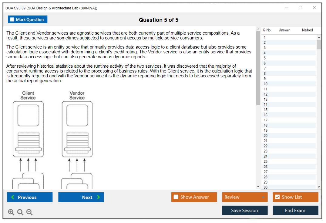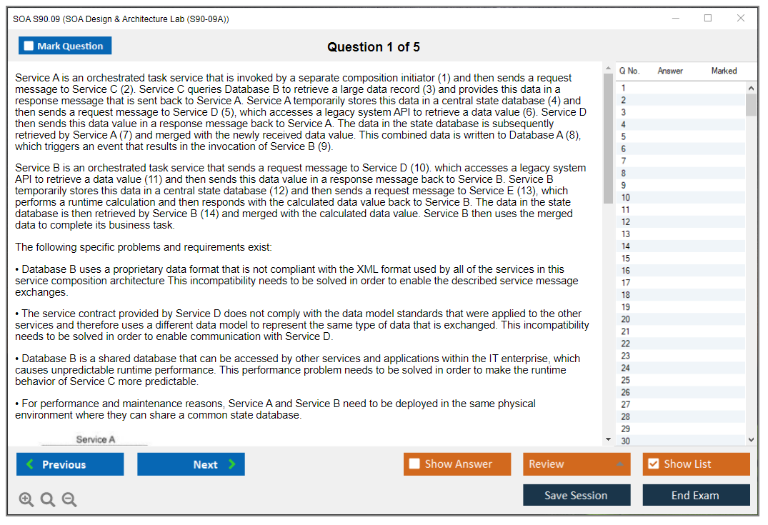 The question format of the SOA S90.09 Exam is practical and scenario-based, requiring candidates to perform tasks and solve problems related to SOA design and architecture.