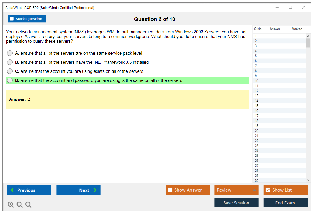 - Certification Provider: SolarWinds