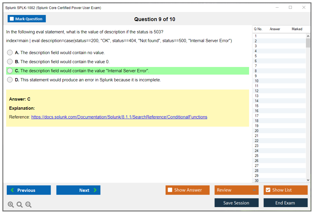 The Splunk SPLK-1002 (Splunk Core Certified Power User) Exam is designed to evaluate a candidate's knowledge and skills in using Splunk software for searching, monitoring, and analyzing machine-generated big data through a web-style interface.
