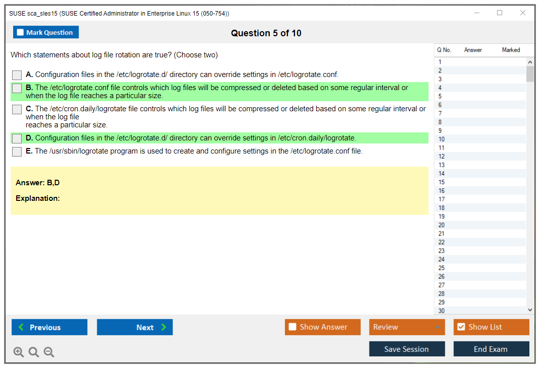 The SUSE Certified Administrator in Enterprise Linux 15 (sca_sles15) exam is designed to validate the foundational skills and knowledge required to administer SUSE Linux Enterprise Server 15. This certification demonstrates proficiency in managing, maintaining, and troubleshooting SUSE Linux Enterprise Server environments.