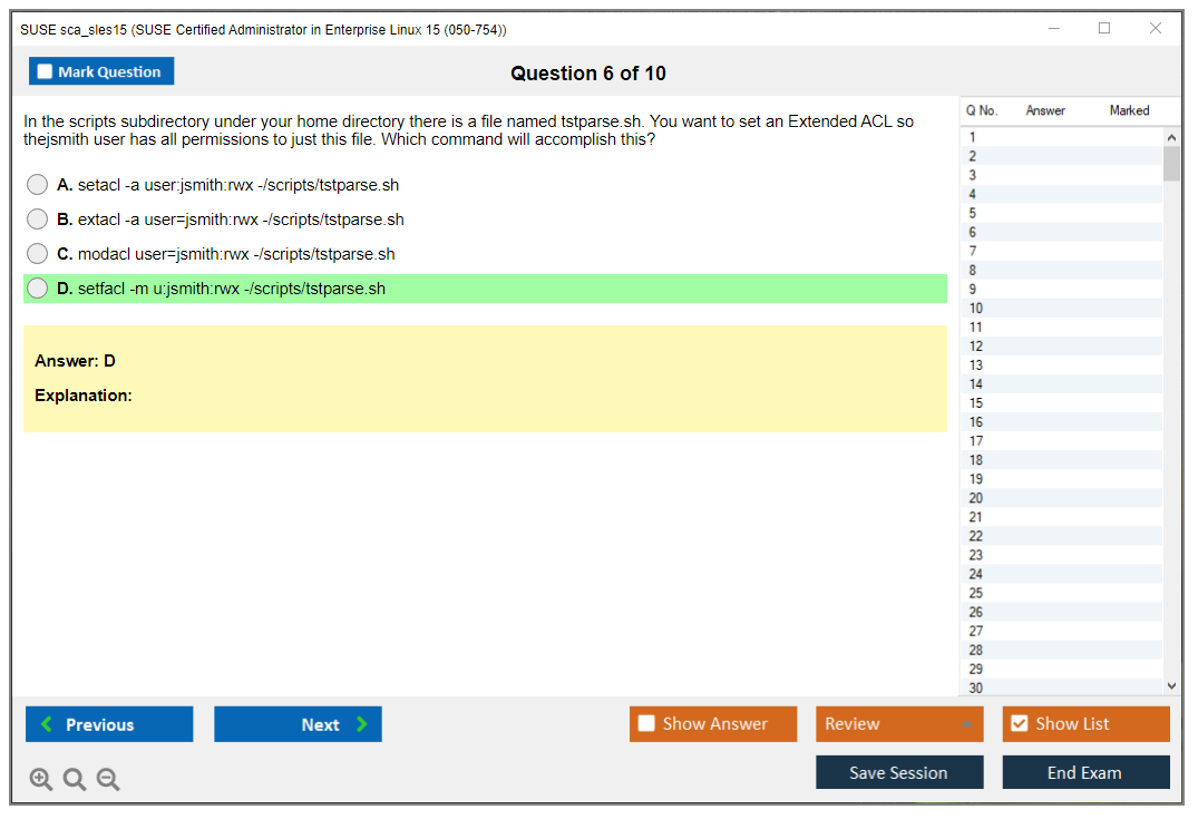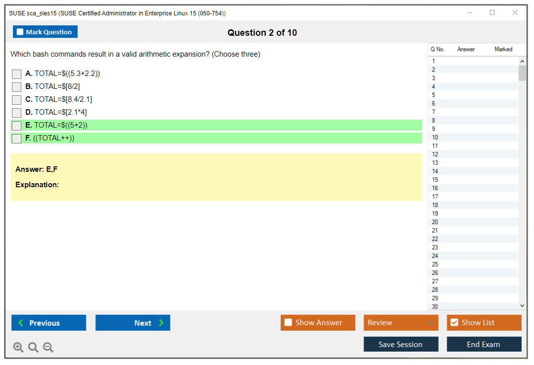 The question format of the SUSE sca_sles15 exam includes multiple-choice questions, multiple-response questions, and fill-in-the-blank questions.