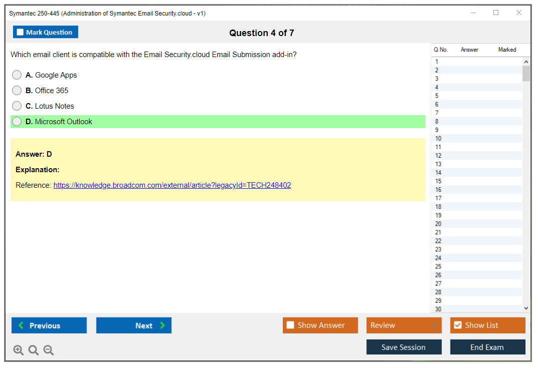 The Symantec 250-445 exam, also known as the Administration of Symantec Email Security.cloud - v1, is designed to validate the skills and knowledge necessary to manage and administer Symantec's Email Security.cloud service.