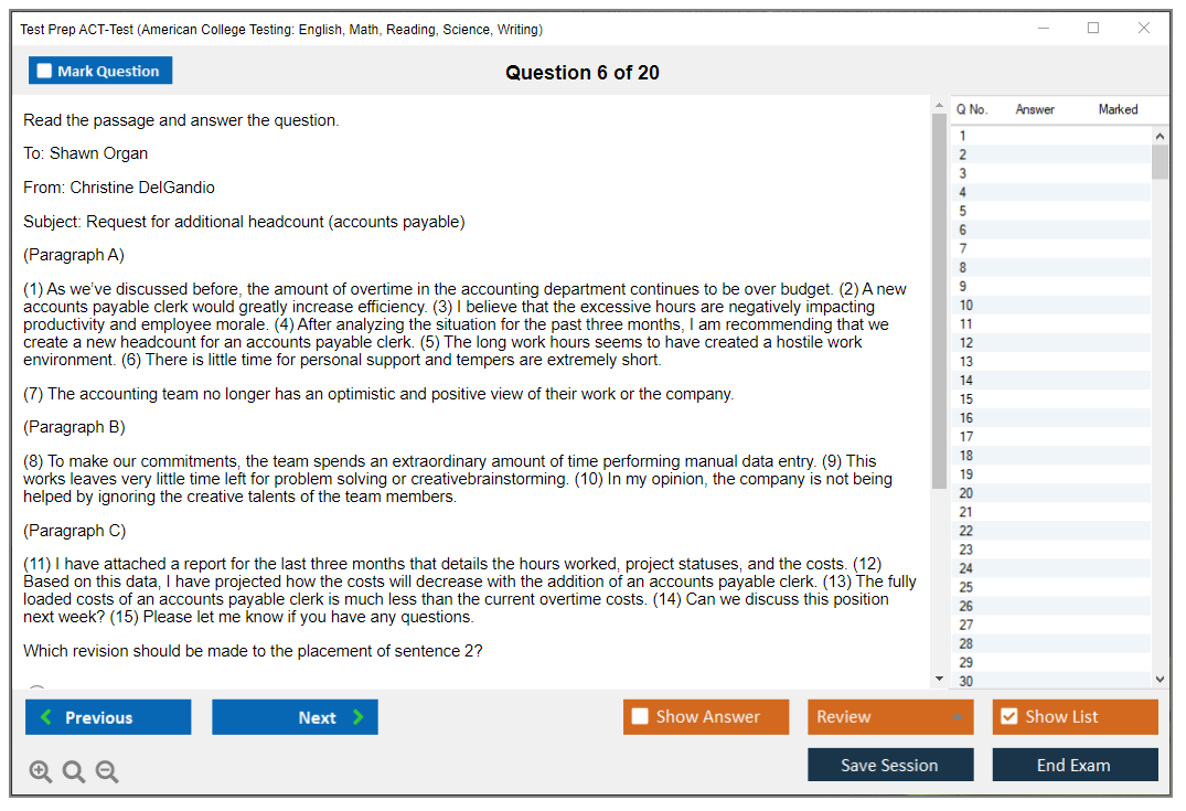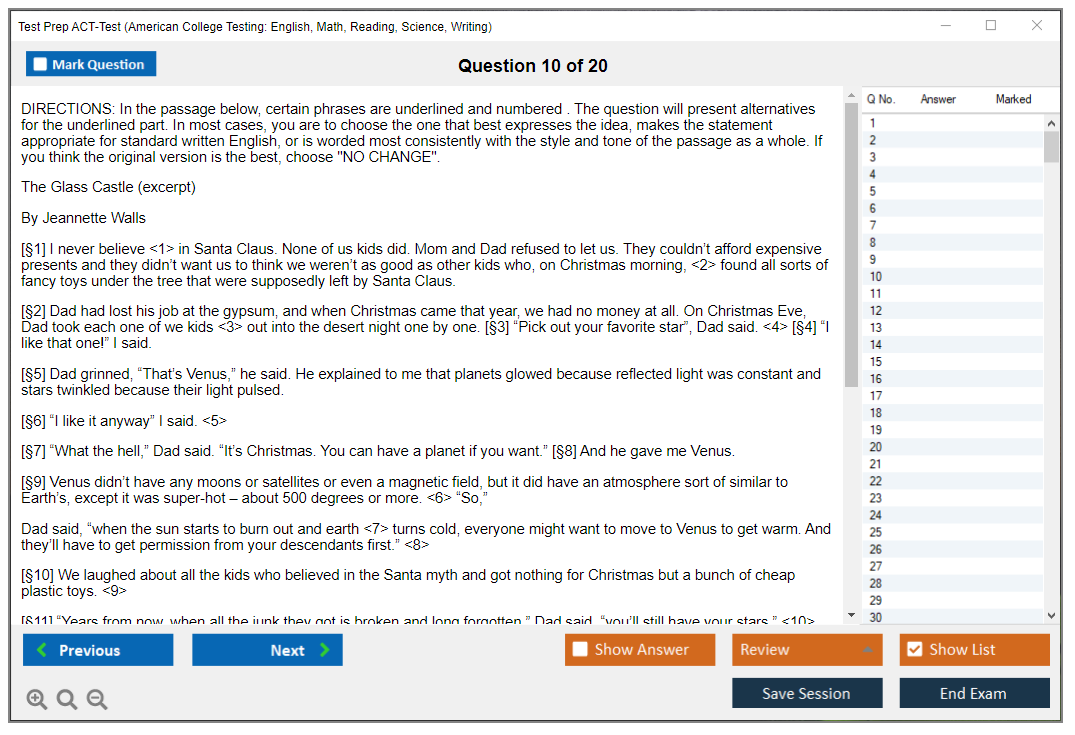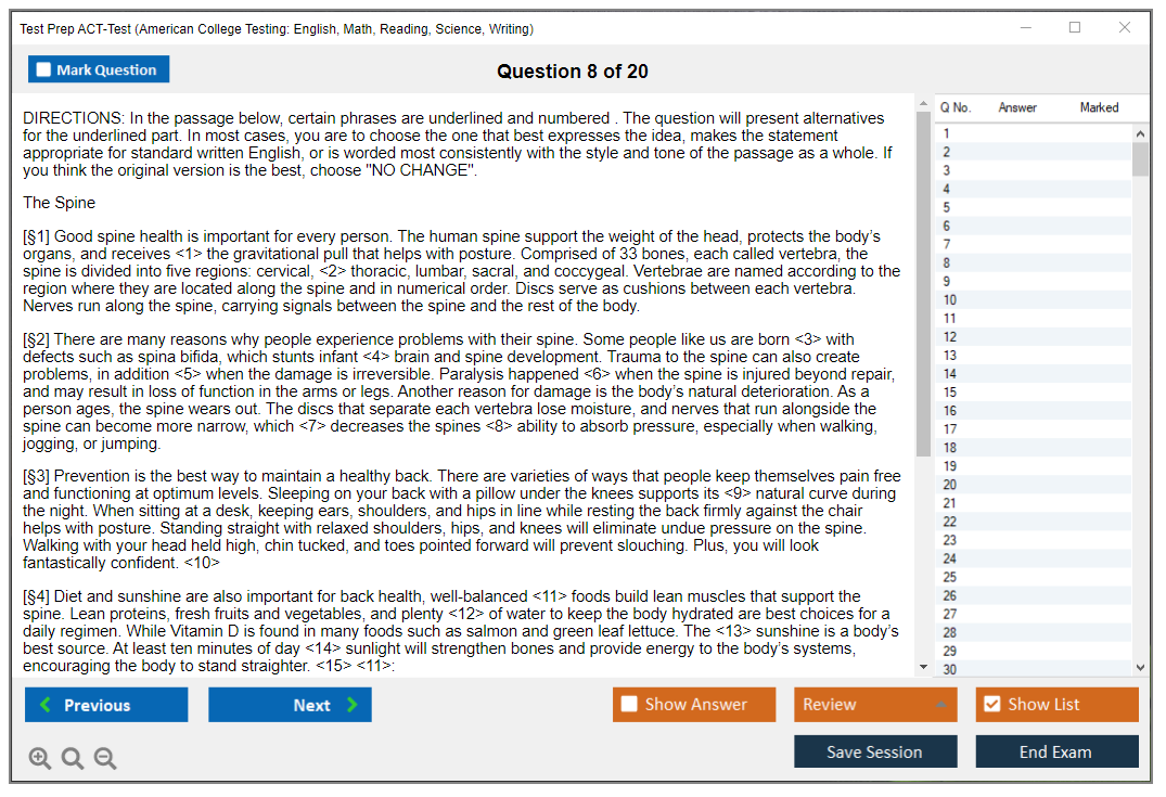 What are the Sample Questions of Test Prep ACT-Test Exam?