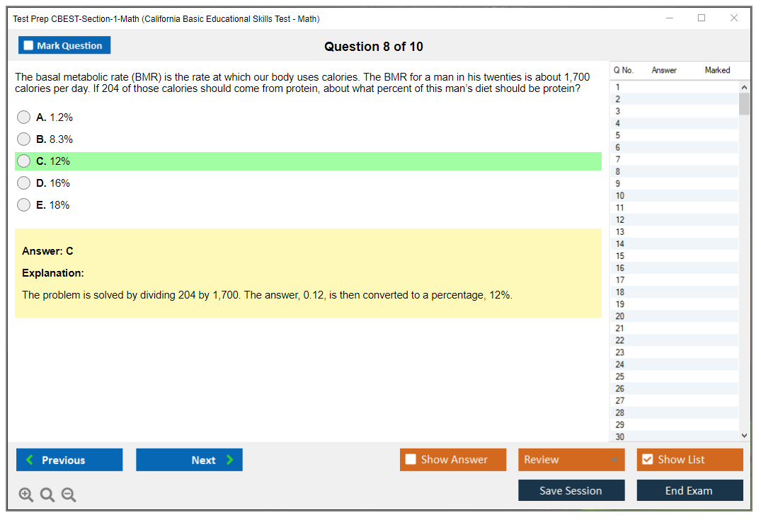 What is the Difficulty Level of Test Prep CBEST-Section-1-Math Exam?
