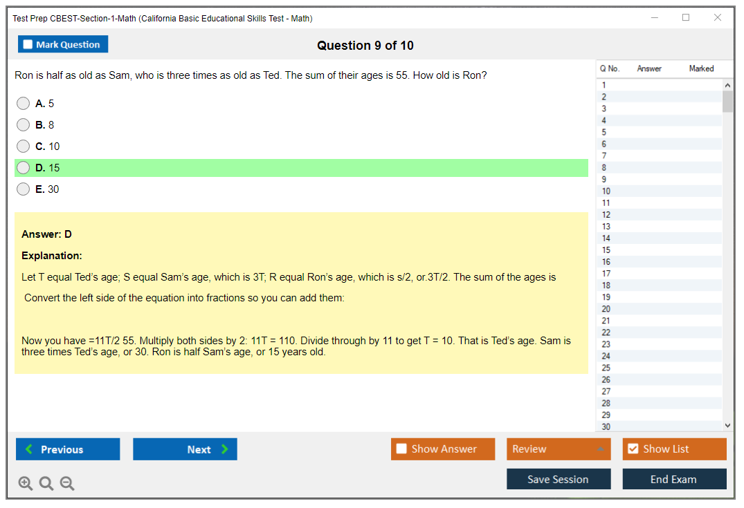 What are the Number of Questions Asked in Test Prep CBEST-Section-1-Math Exam?