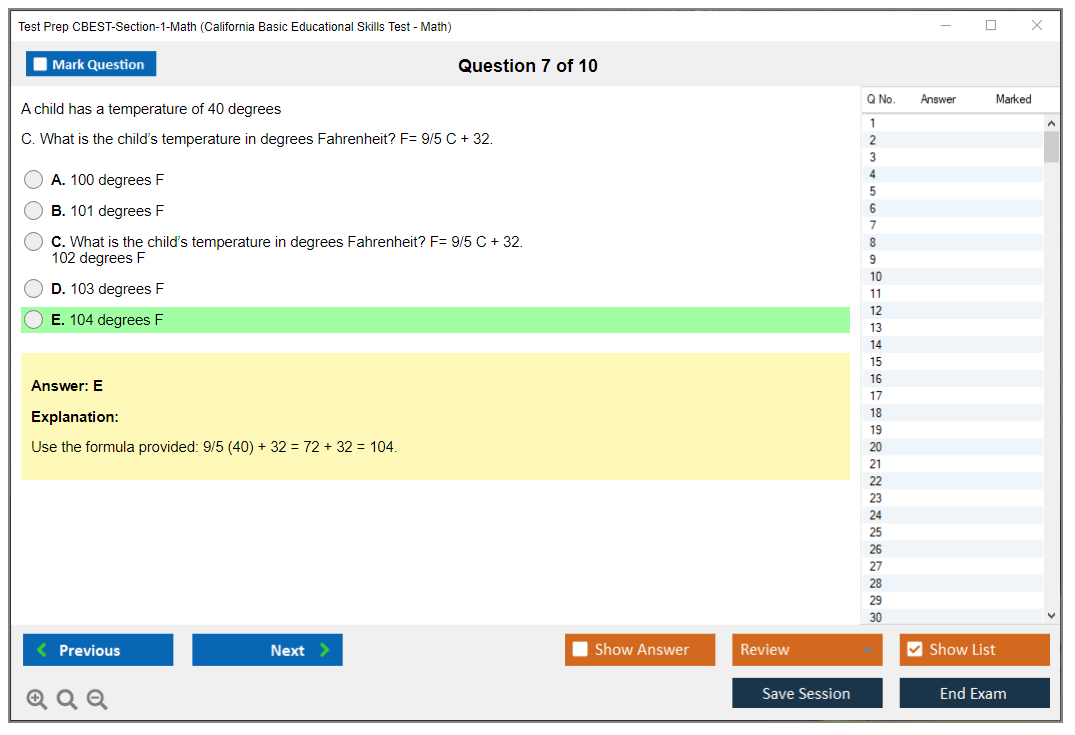 What is the Question Format of Test Prep CBEST-Section-1-Math Exam?