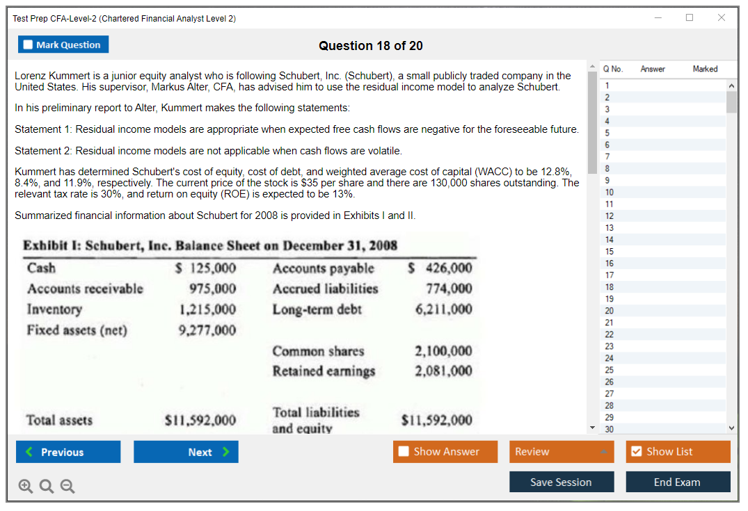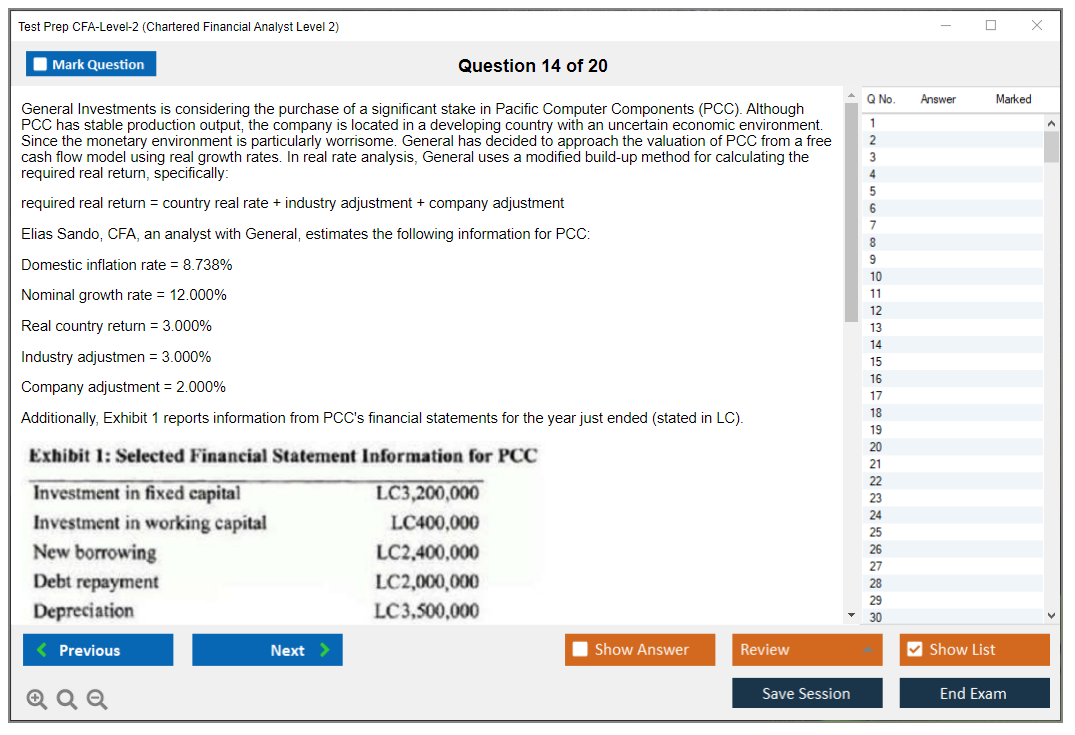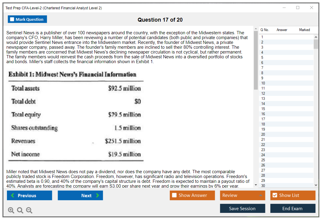 What are the Sample Questions of Test Prep CFA-Level-2 Exam?