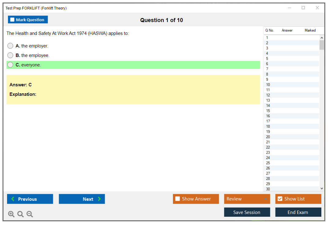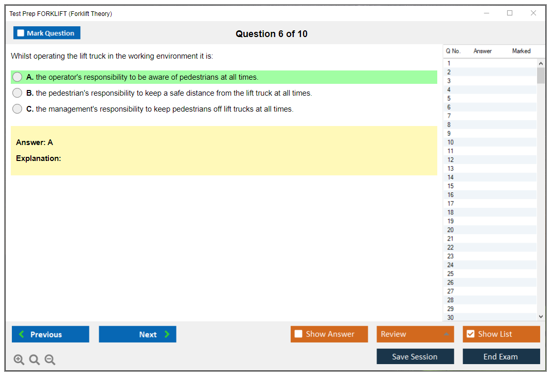 What is the Question Format of Test Prep FORKLIFT Exam?