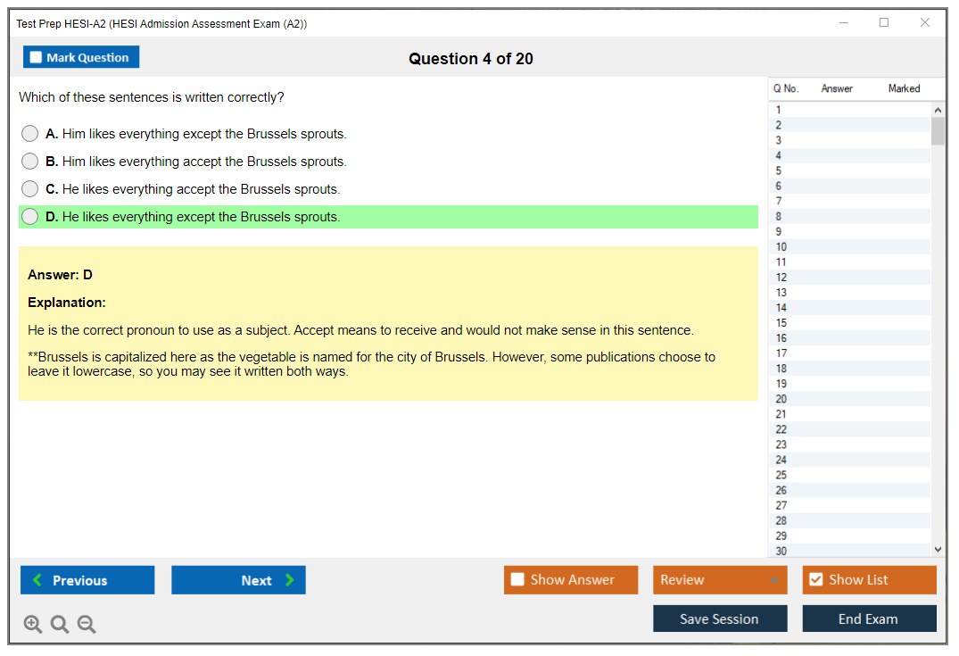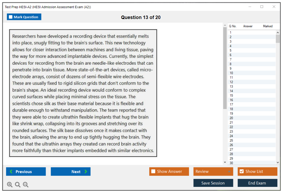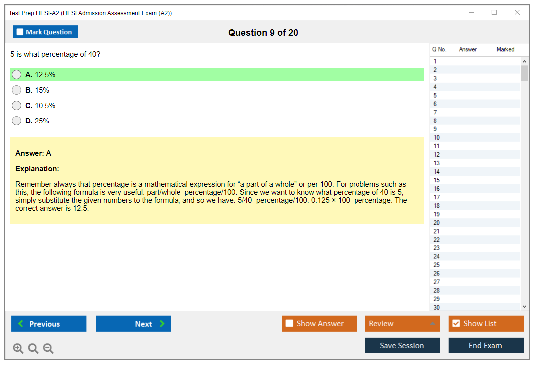 What is the Question Format of Test Prep HESI-A2 Exam?
