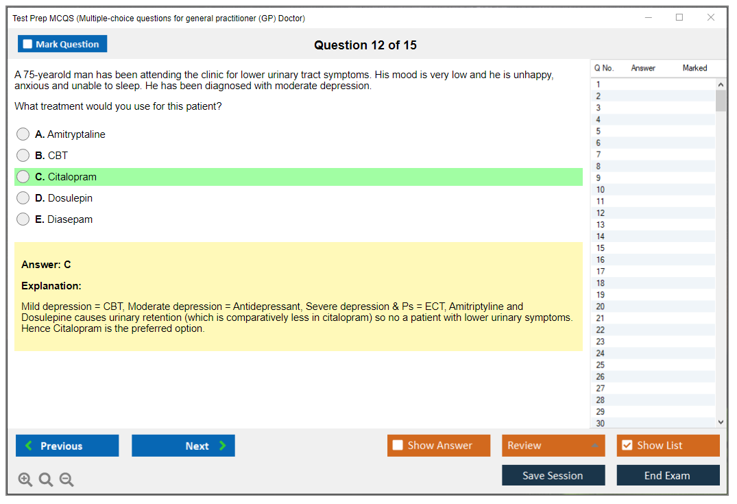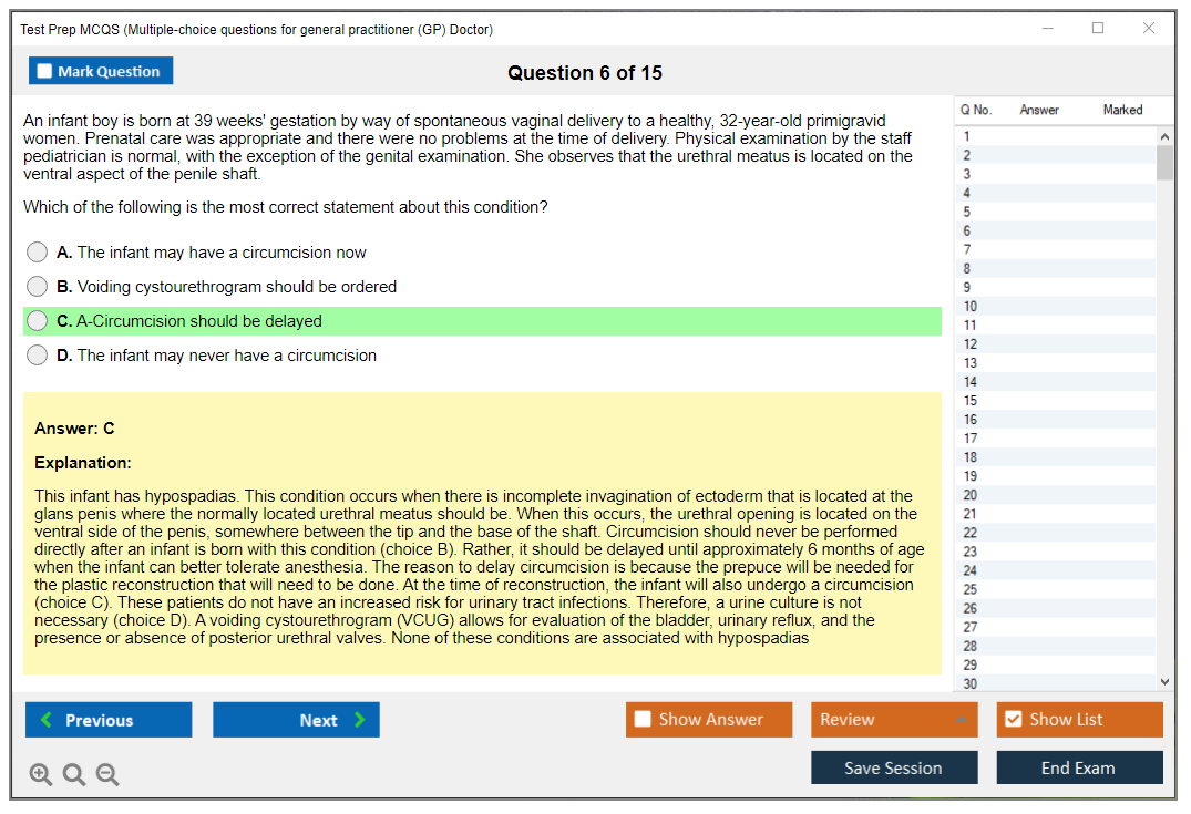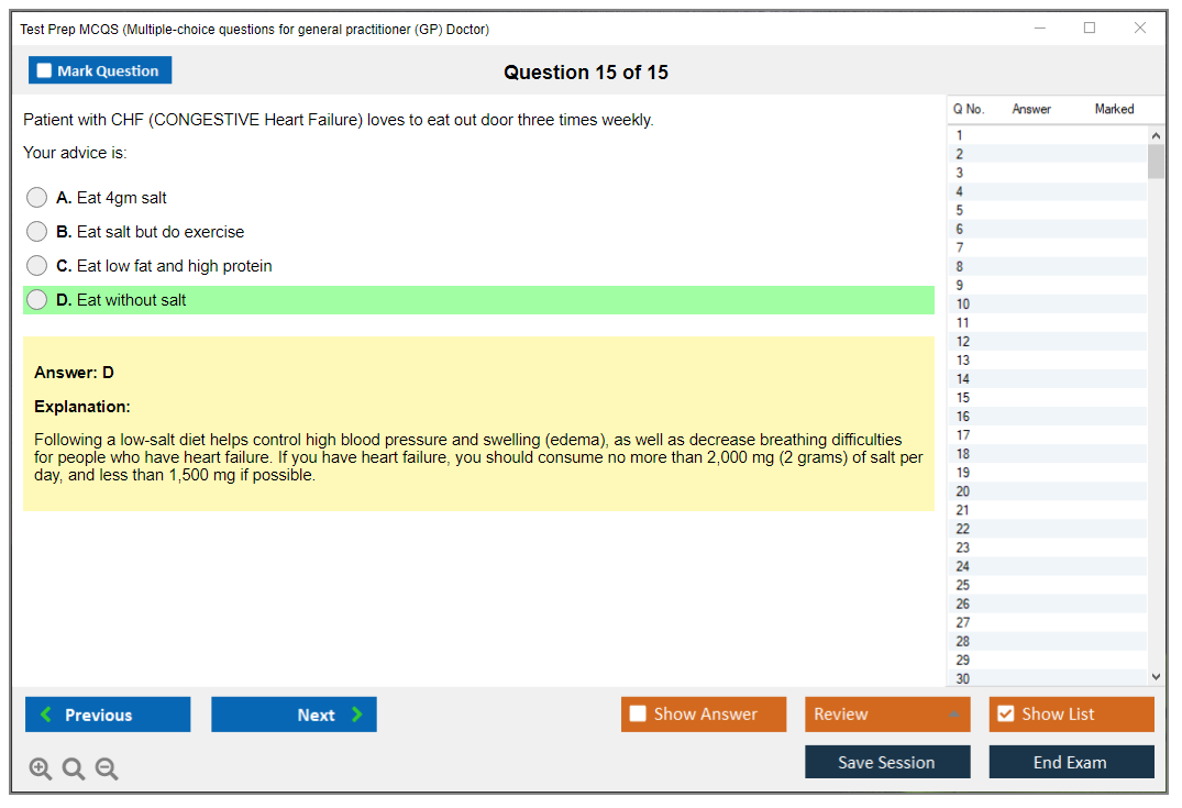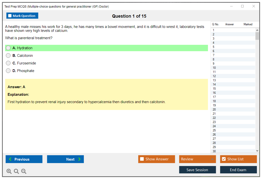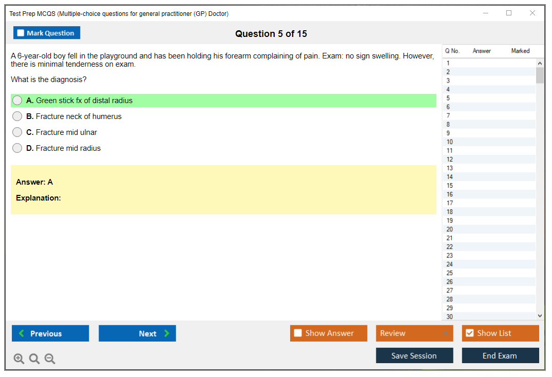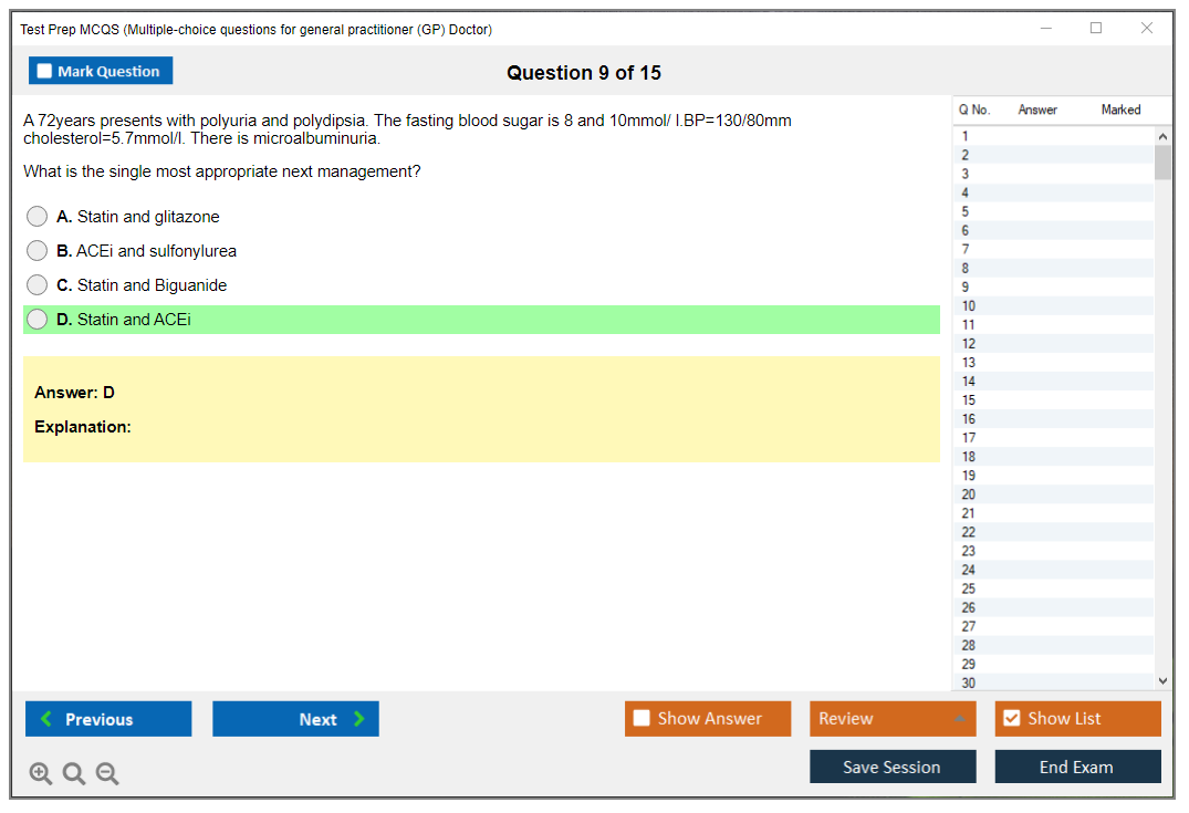 The Test Prep MCQS (Multiple-choice questions for general practitioner (GP) Doctor) Exam is designed to assess the knowledge and skills of general practitioners in various medical disciplines. It helps ensure that GPs meet the required standards for patient care and medical practice.