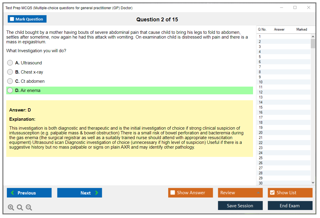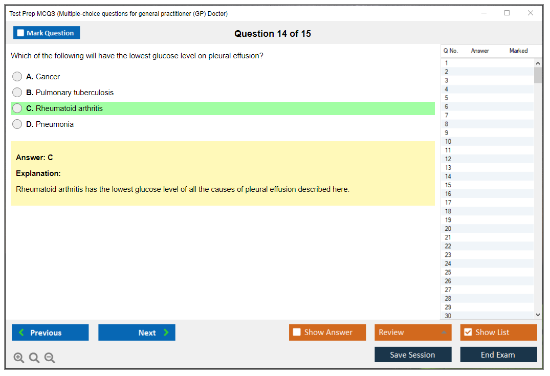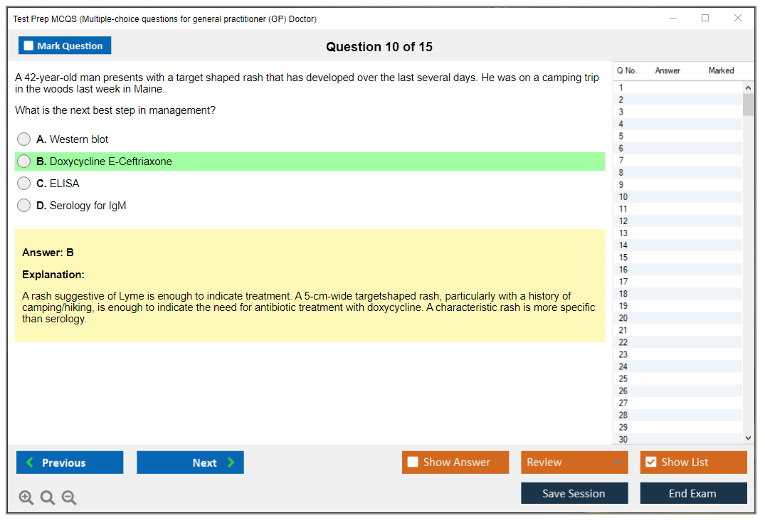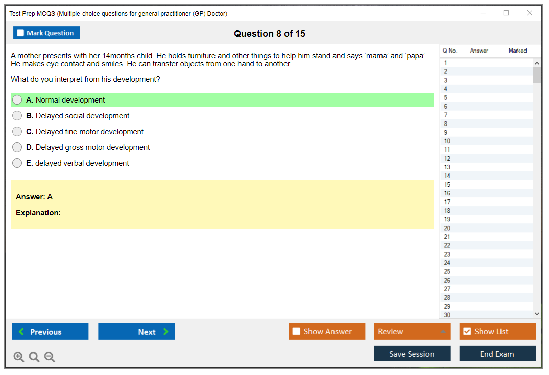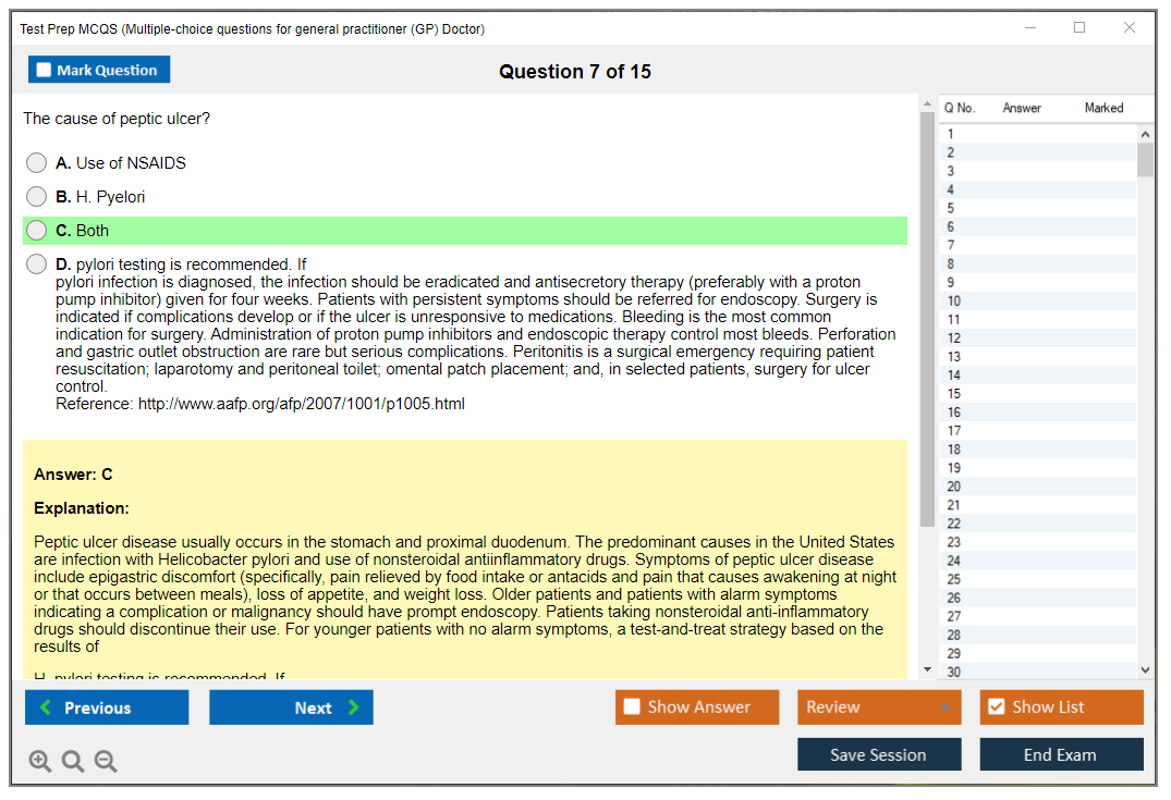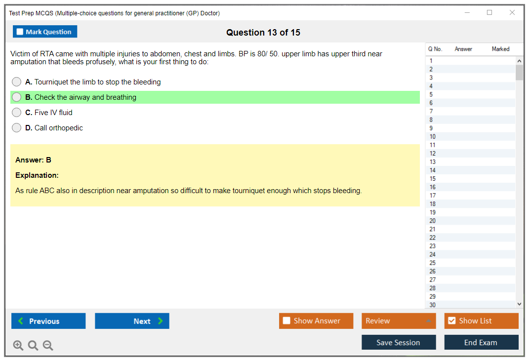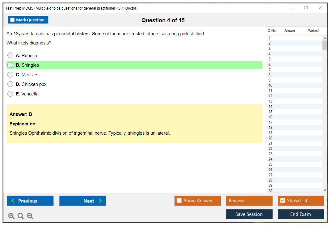 The Test Prep MCQS (Multiple-choice questions for general practitioner (GP) Doctor) Exam is designed to assess the knowledge and skills of general practitioners in various medical disciplines. It helps ensure that GPs meet the required standards for patient care and medical practice.