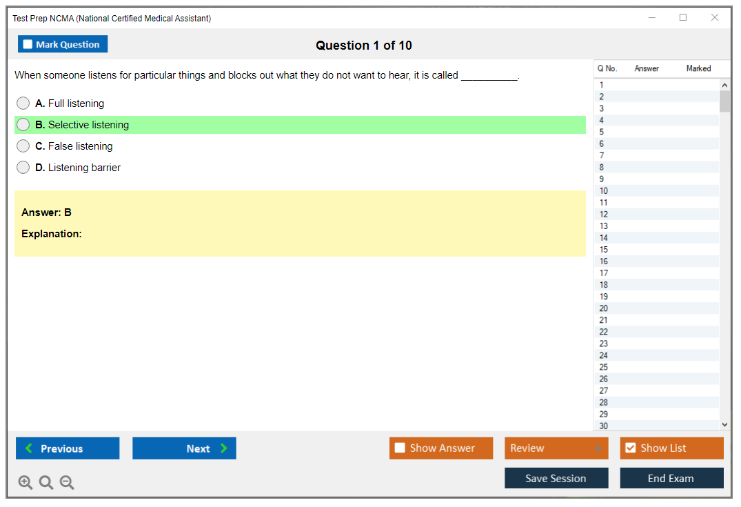 The question format of the Test Prep NCMA Exam includes multiple-choice questions.