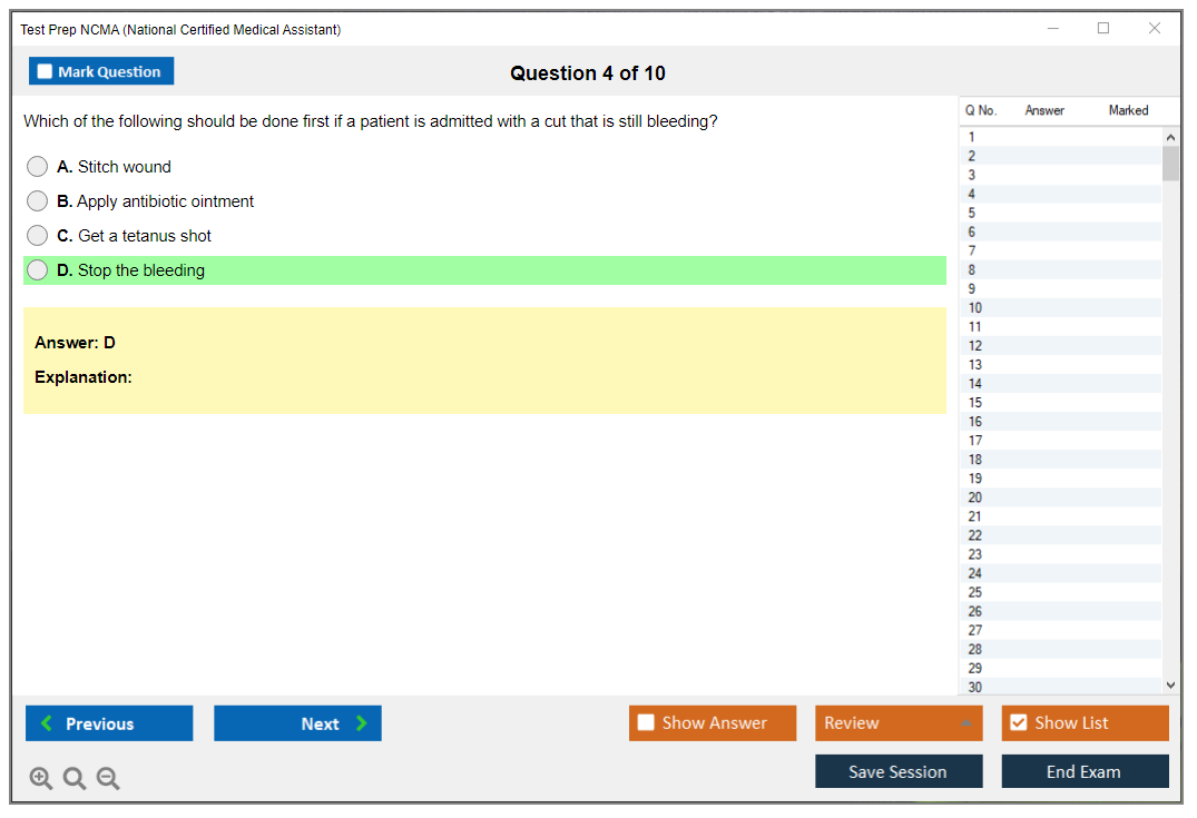 Sample questions for the Test Prep NCMA Exam can typically be found on the NCCT website or in official NCMA study guides and practice tests.