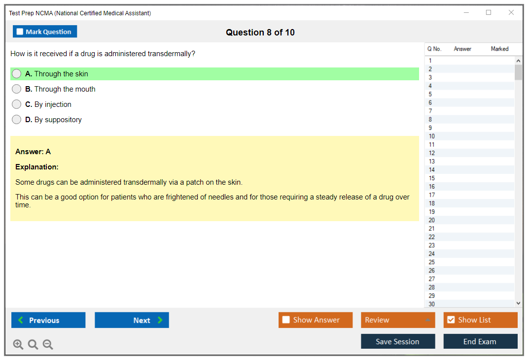 You can take the Test Prep NCMA Exam at an NCCT-authorized testing center or via an online proctored exam.