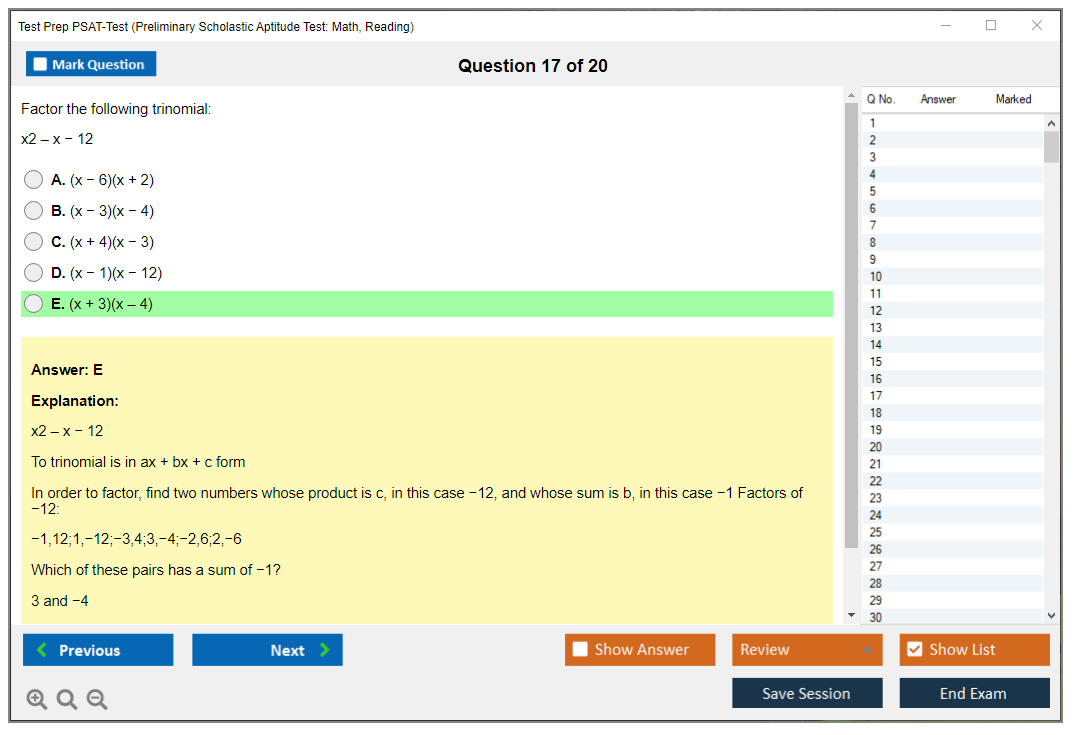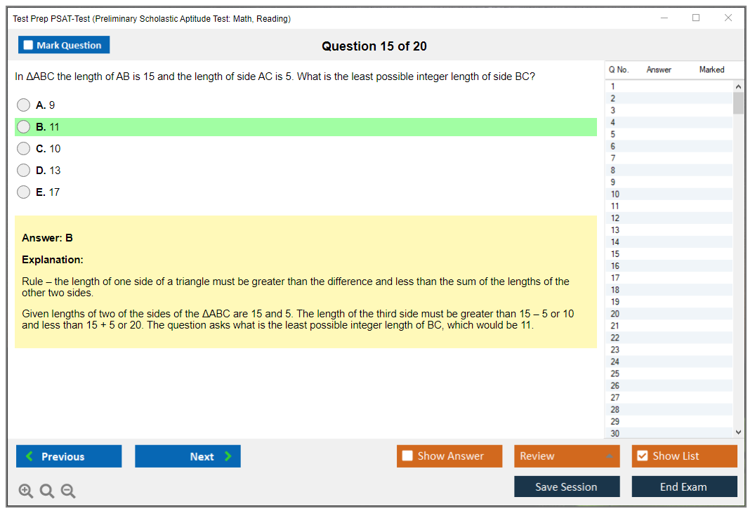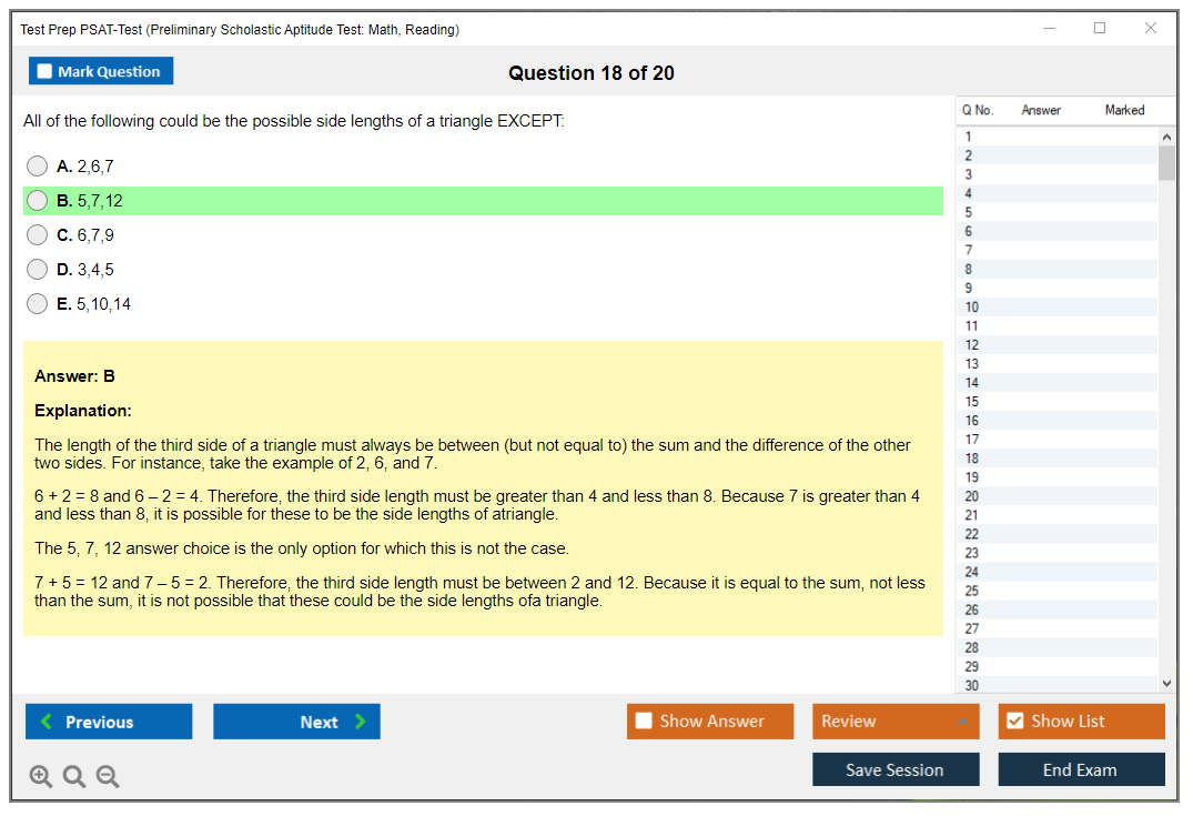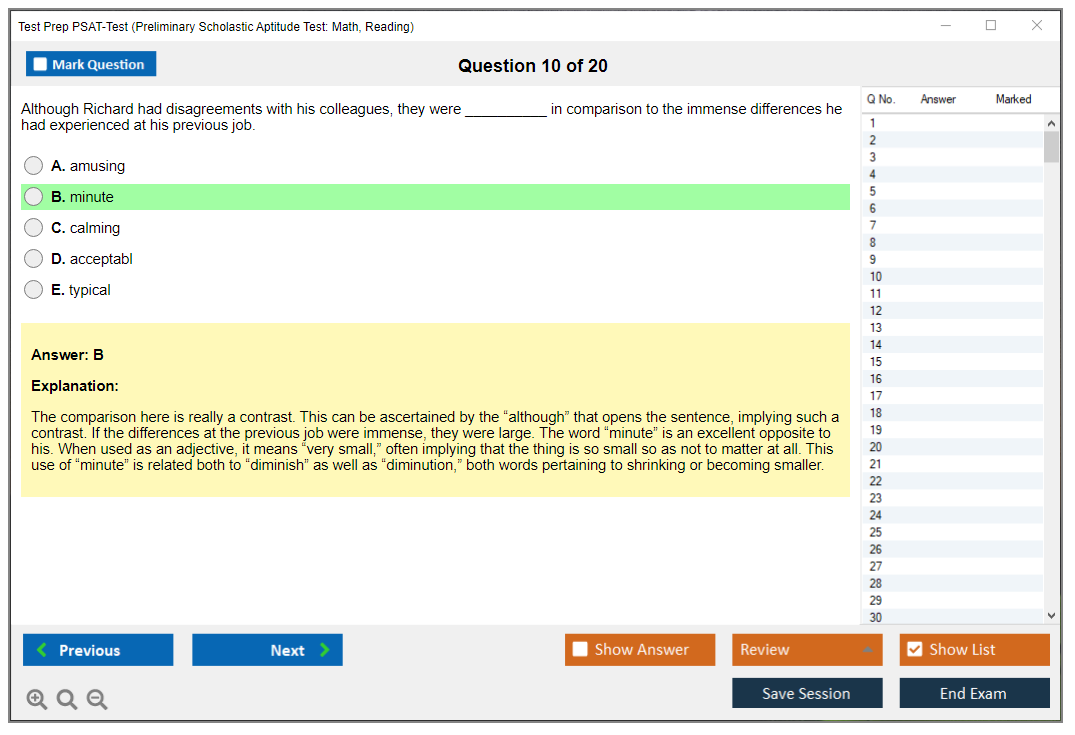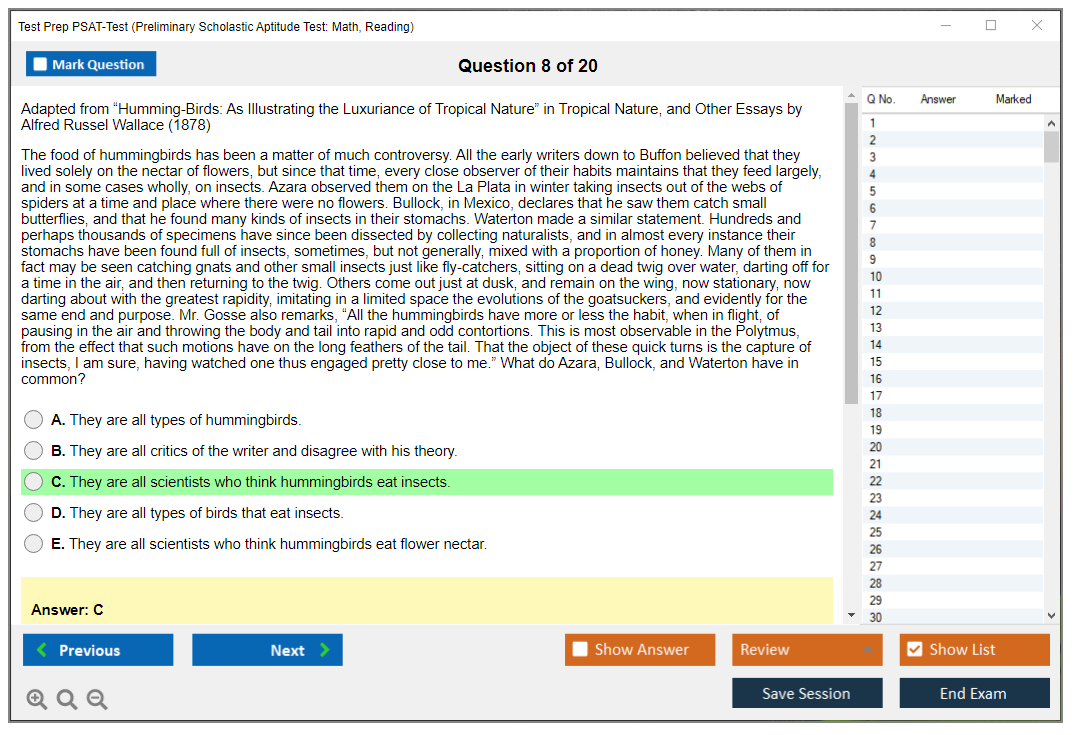 What are the Sample Questions of Test Prep PSAT-Test Exam?